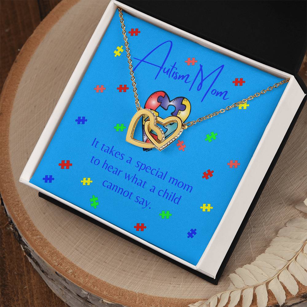What A Child Cannot Say 18K Rose Gold Interlocking Hearts Necklace Jewelry Beautiful Gift for Autism