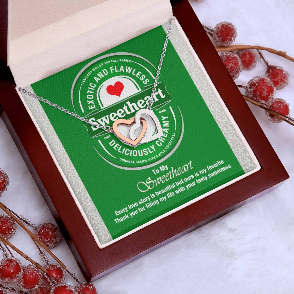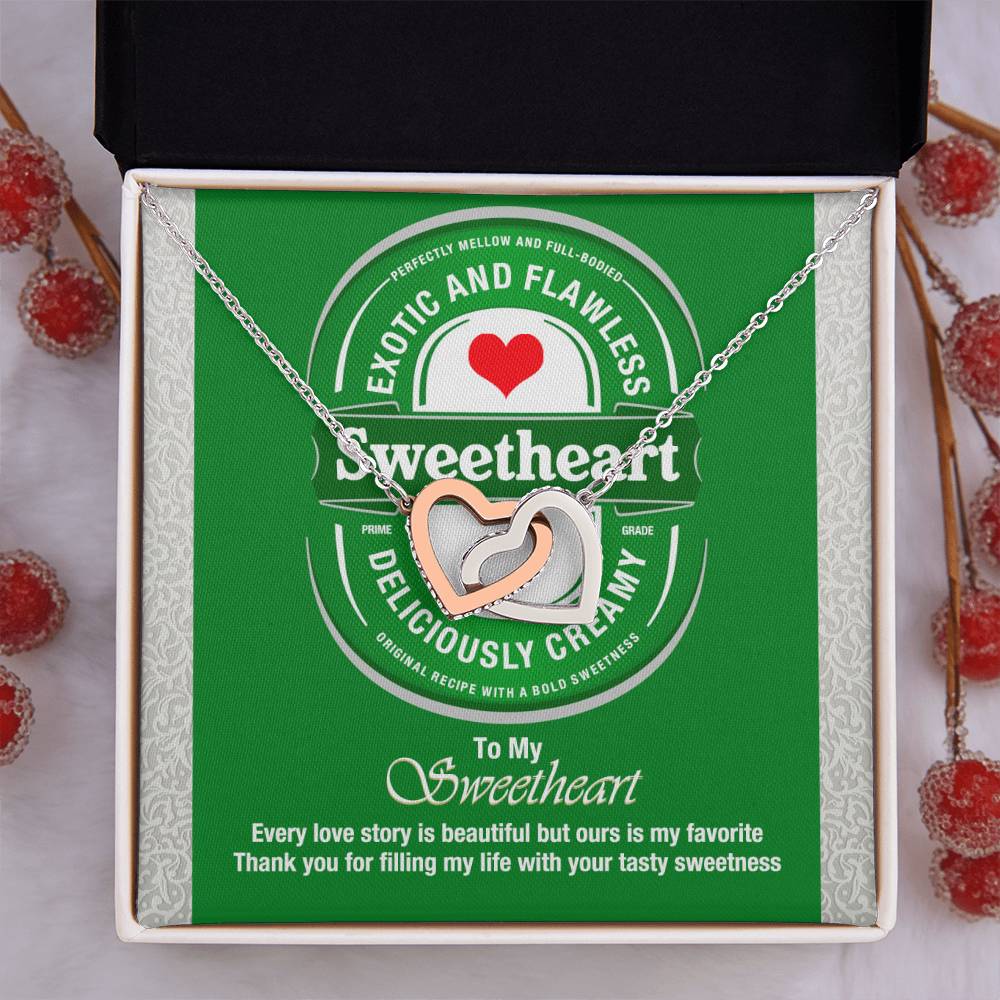 Deliciously Creamy Sweetheart 18K Rose Gold Interlocking Hearts Necklace Jewelry Perfect Gift for Beer Lover’s Wife Anniversary