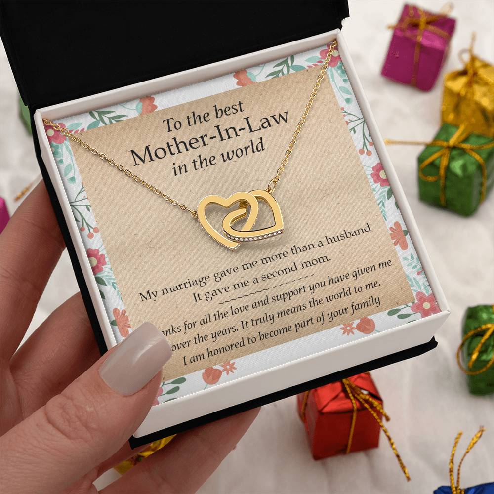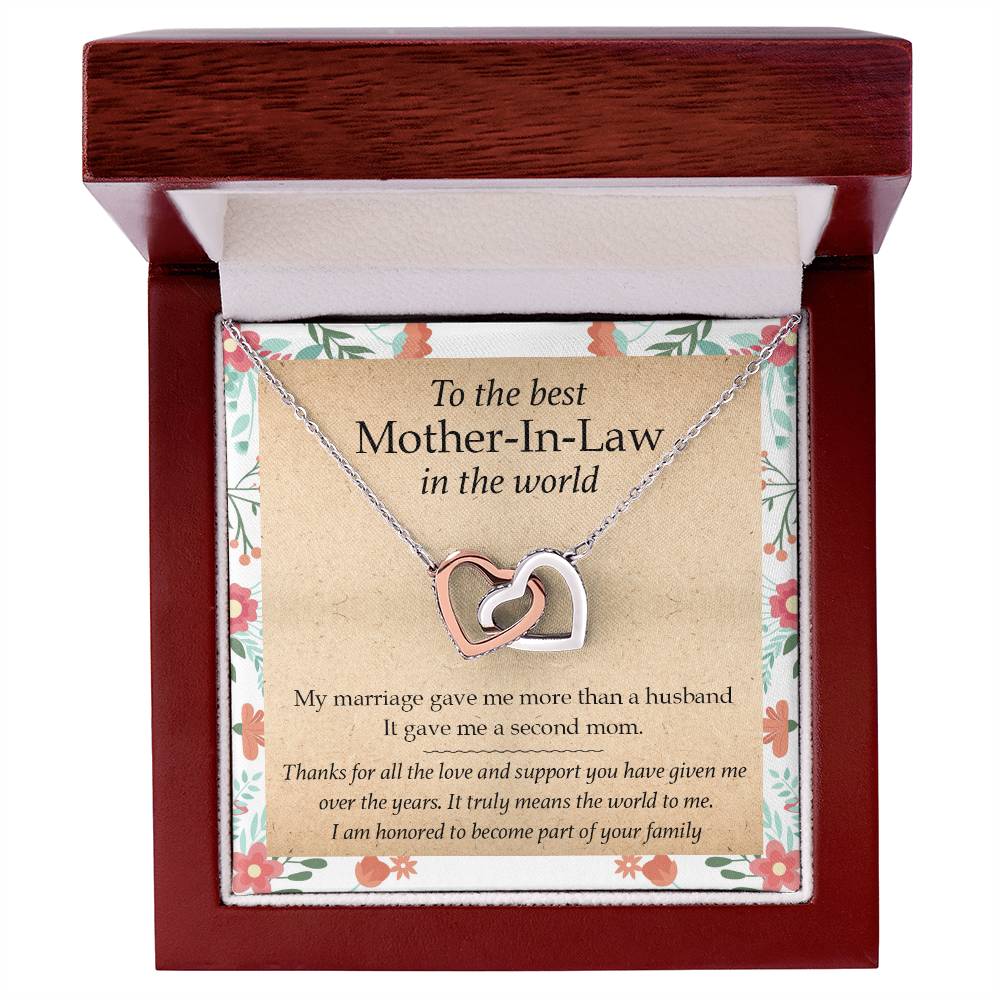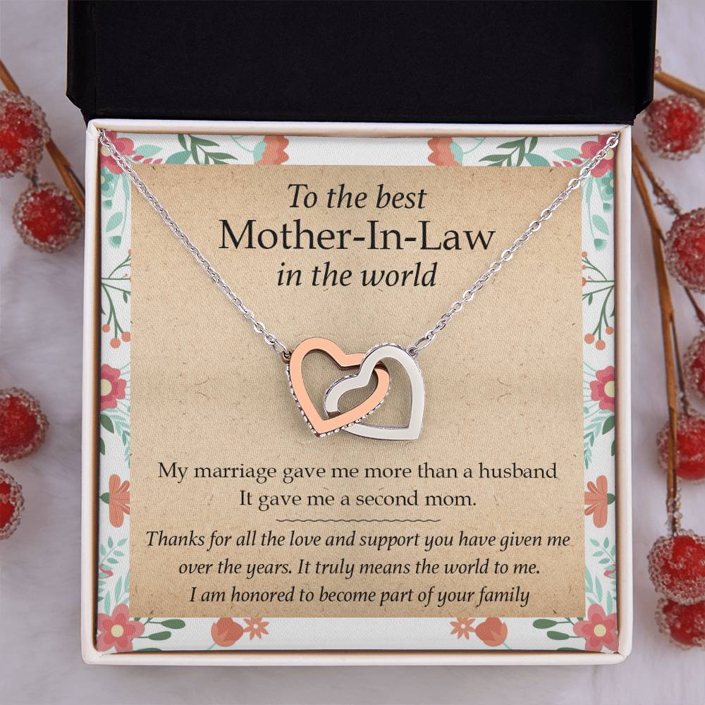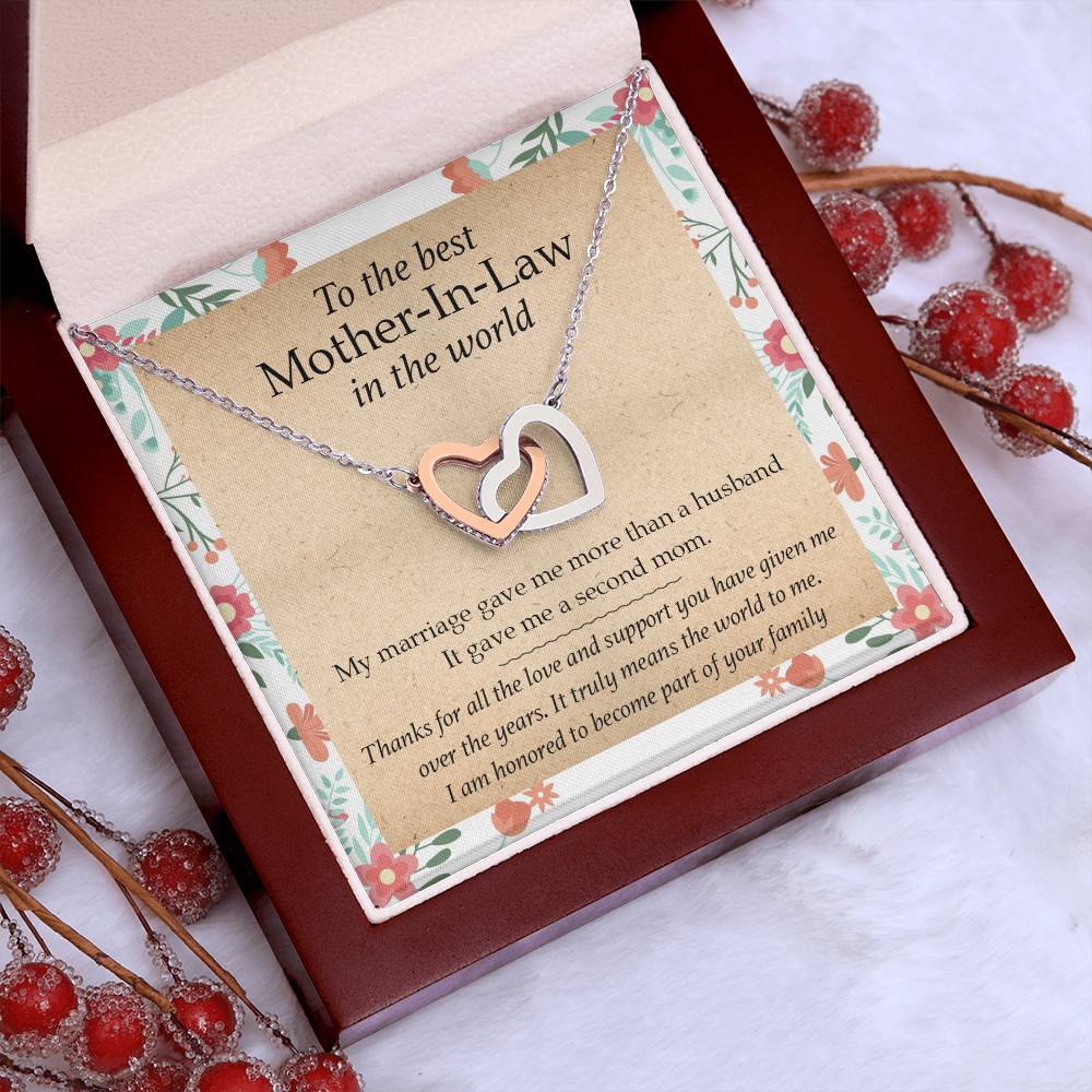 Honored To Become Part Of Your Family 18K Rose Gold Interlocking Hearts Necklace Jewelry Special Gift for Mother-In-Law Birthday