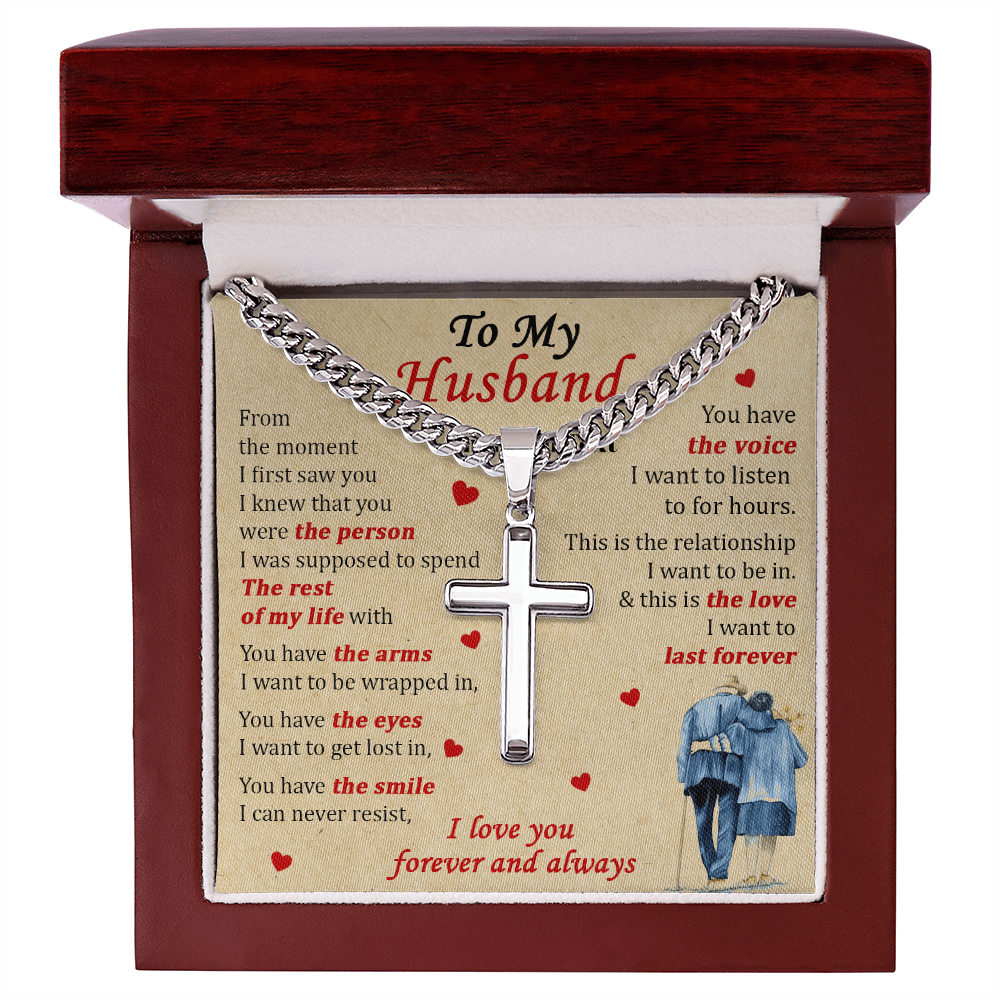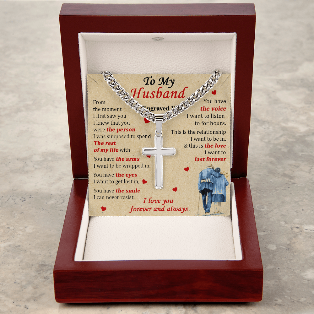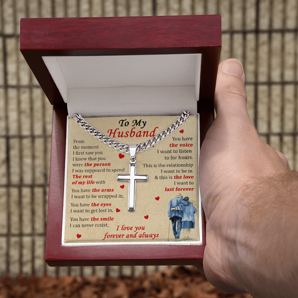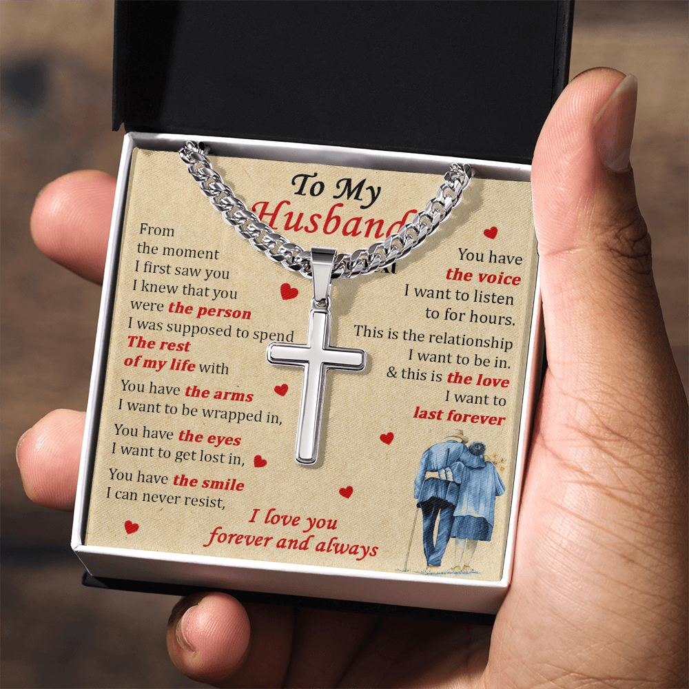 To My Husband The Person Rest of My Life Love Forever Always 14K Gold Artisan Cross Necklace Jewelry Romantic Gift for Husband Anniversary