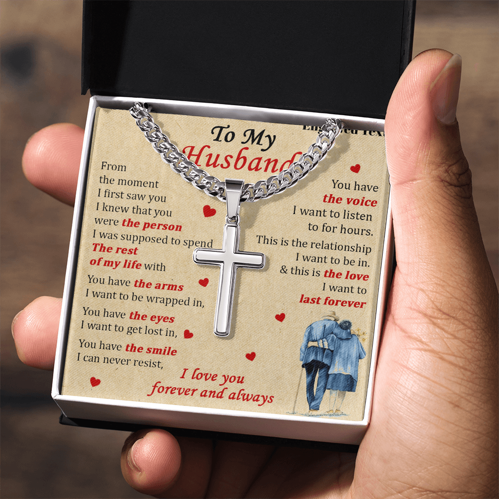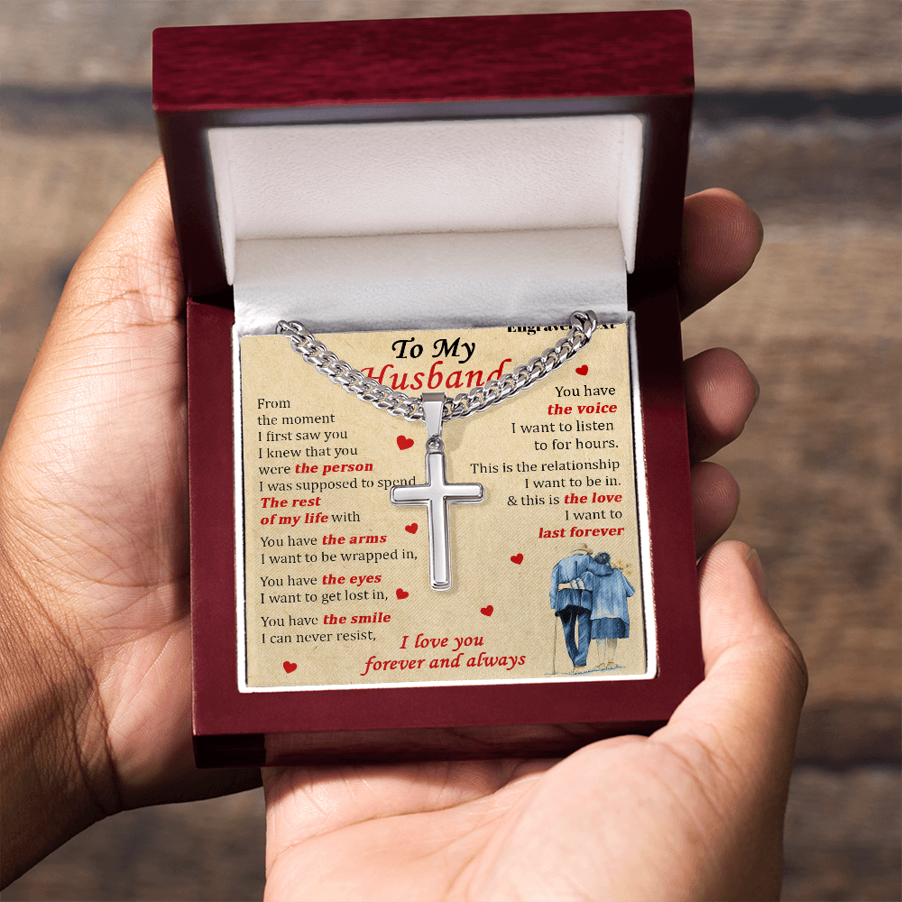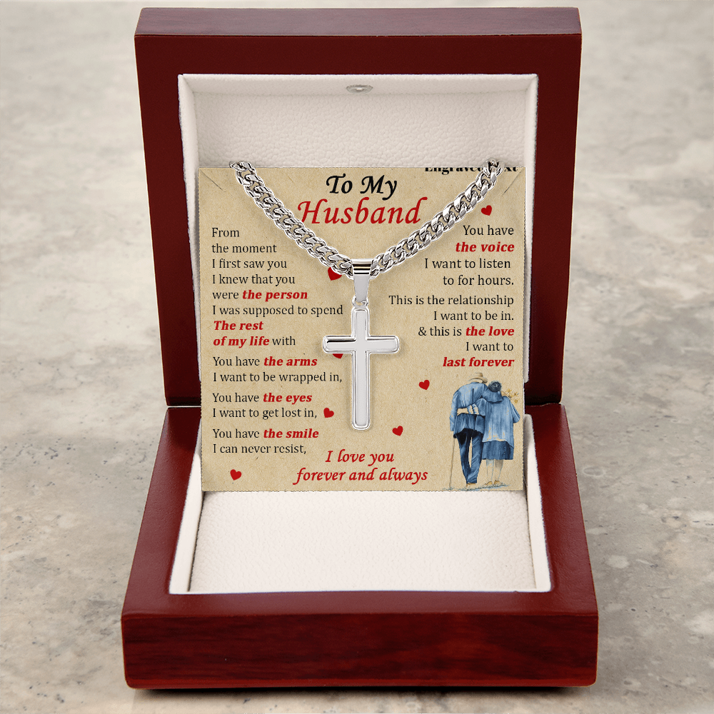 To My Husband The Person Rest of My Life Love Forever Always Link Chain Artisan Cross Necklace Jewelry Romantic Gift for Husband Anniversary