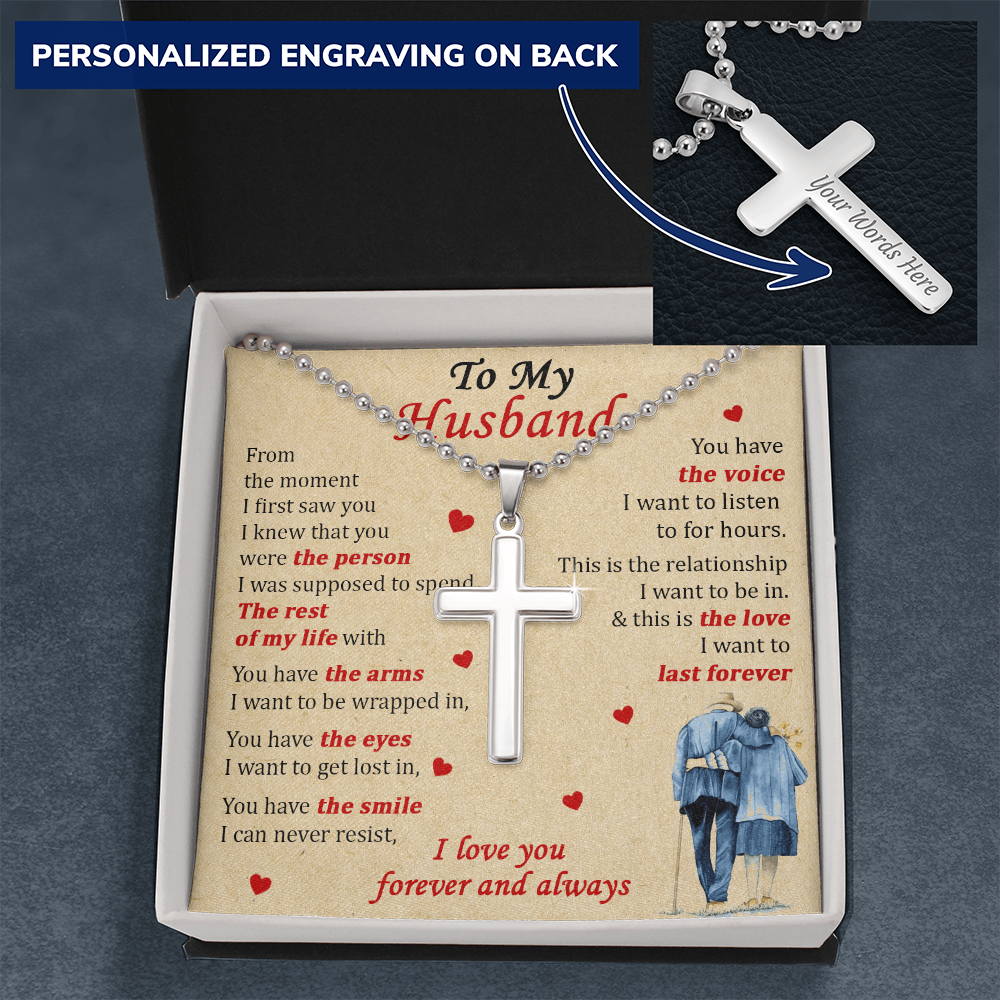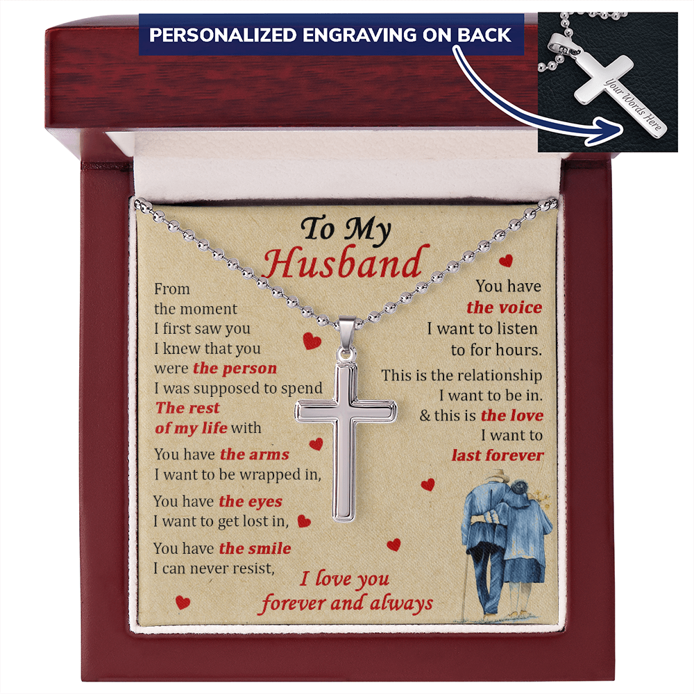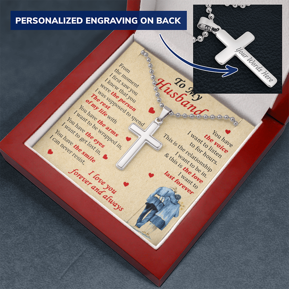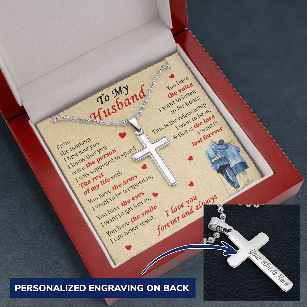 To My Husband The Person Rest of My Life Love Forever Always Personalized Engraved Cross Necklace Jewelry Romantic Gift for Husband Anniversary