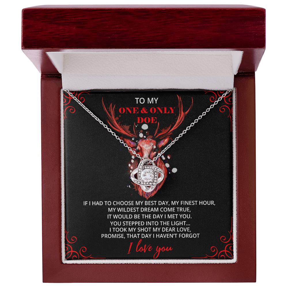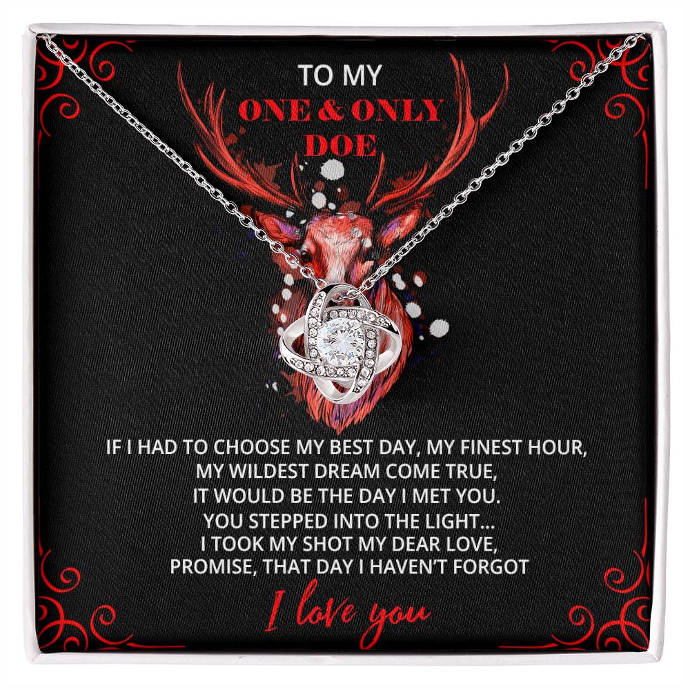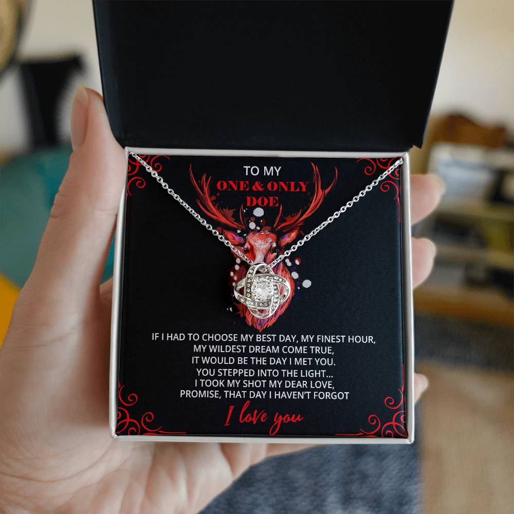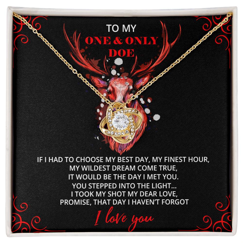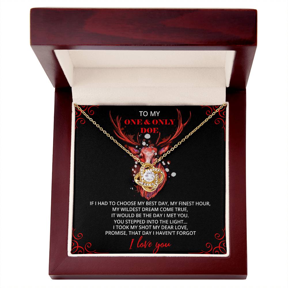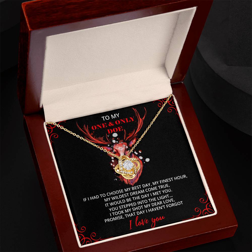 To My One Only Doe Best Day Finest Hour Wildest Dream Stepped Into Light Took My Shot 14K Gold Love Knot Necklace Jewelry Romantic Gift for Girlfriend Anniversary