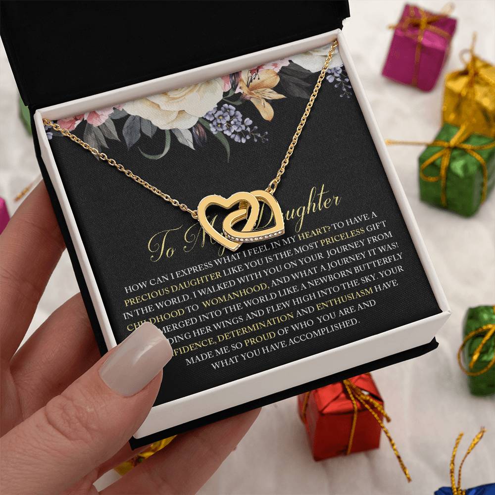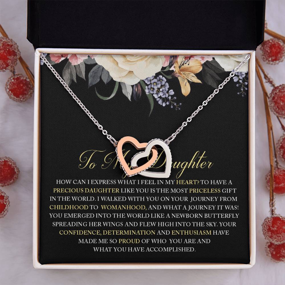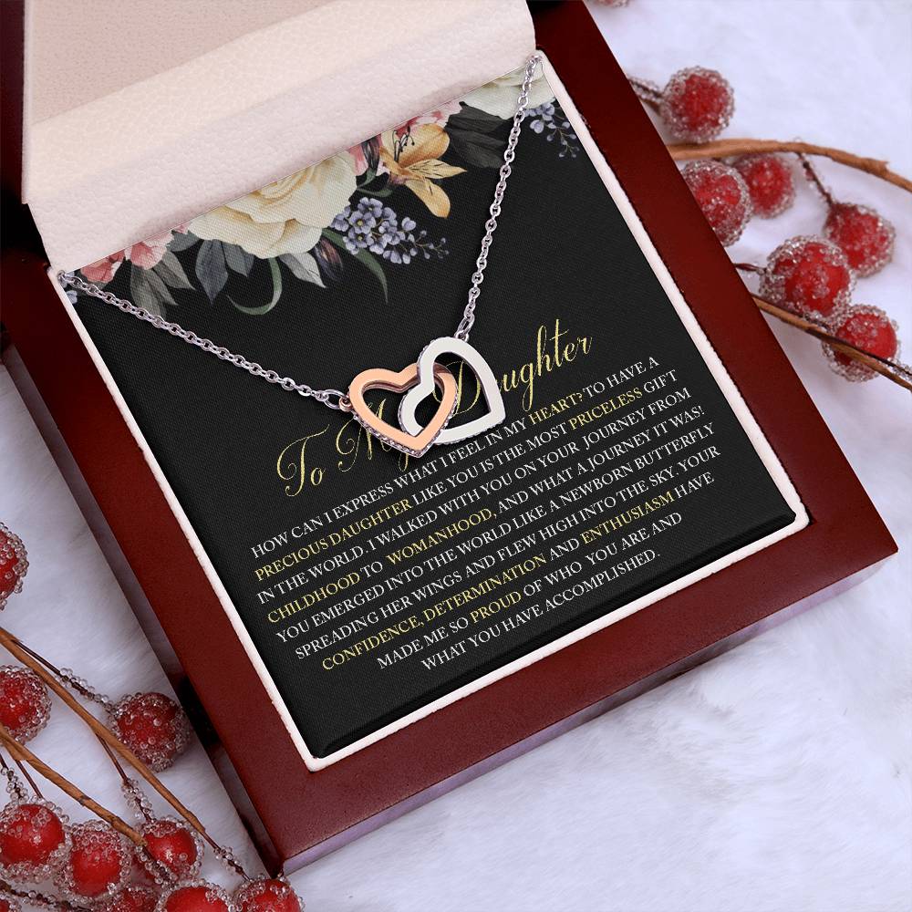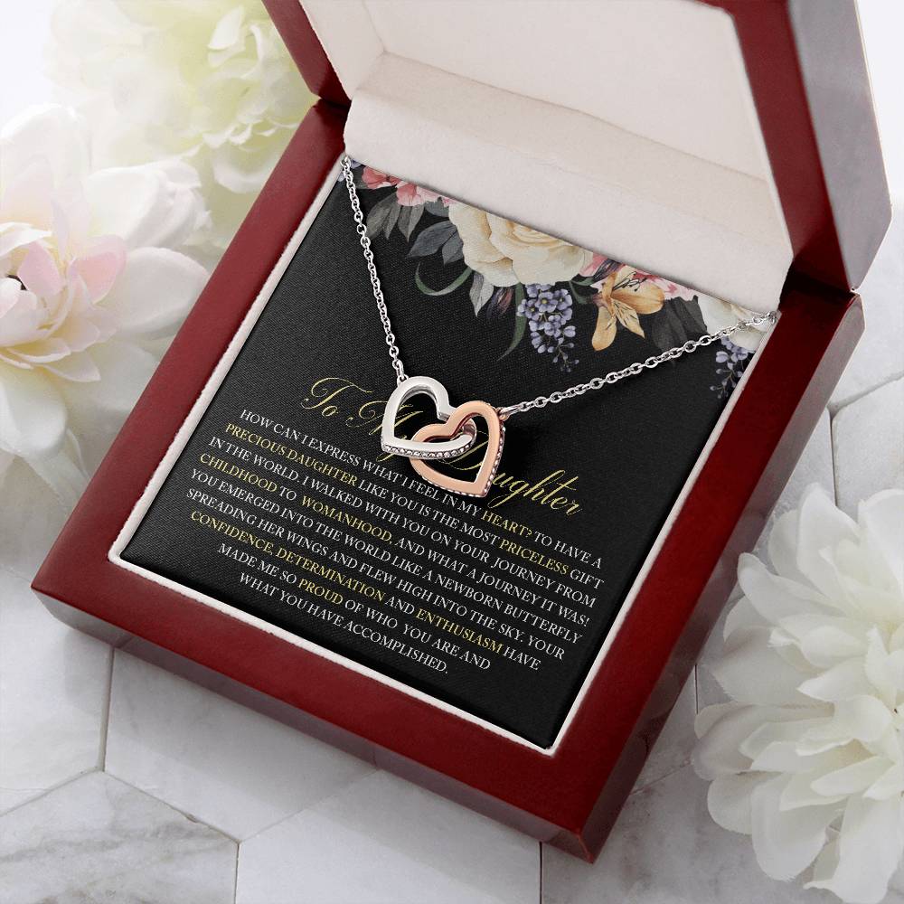 Walked With You On Your Journey From Childhood To Womanhood 18K Rose Gold Interlocking Hearts Necklace Jewelry Beautiful Gift for Daughter Birthday