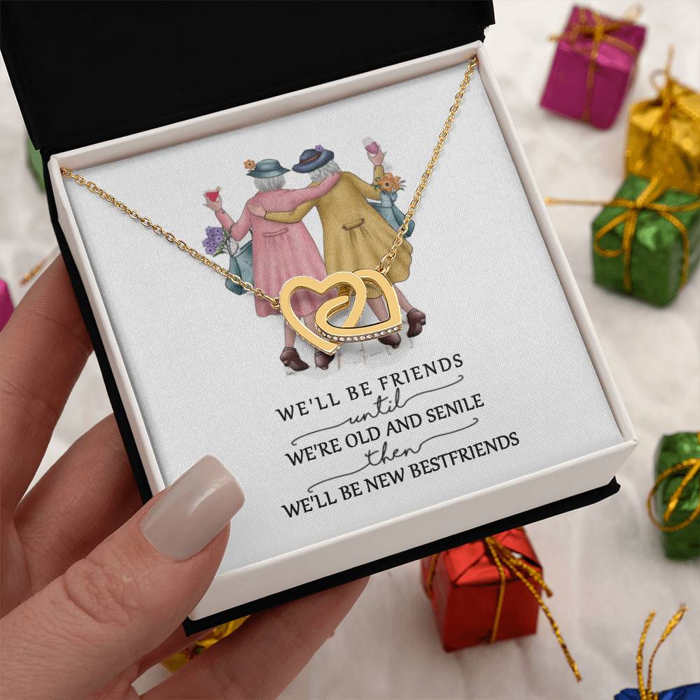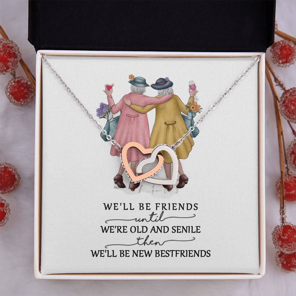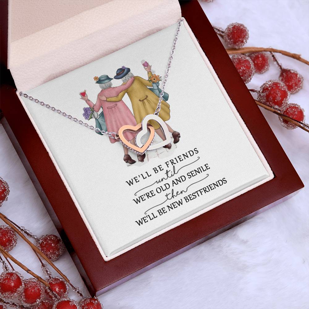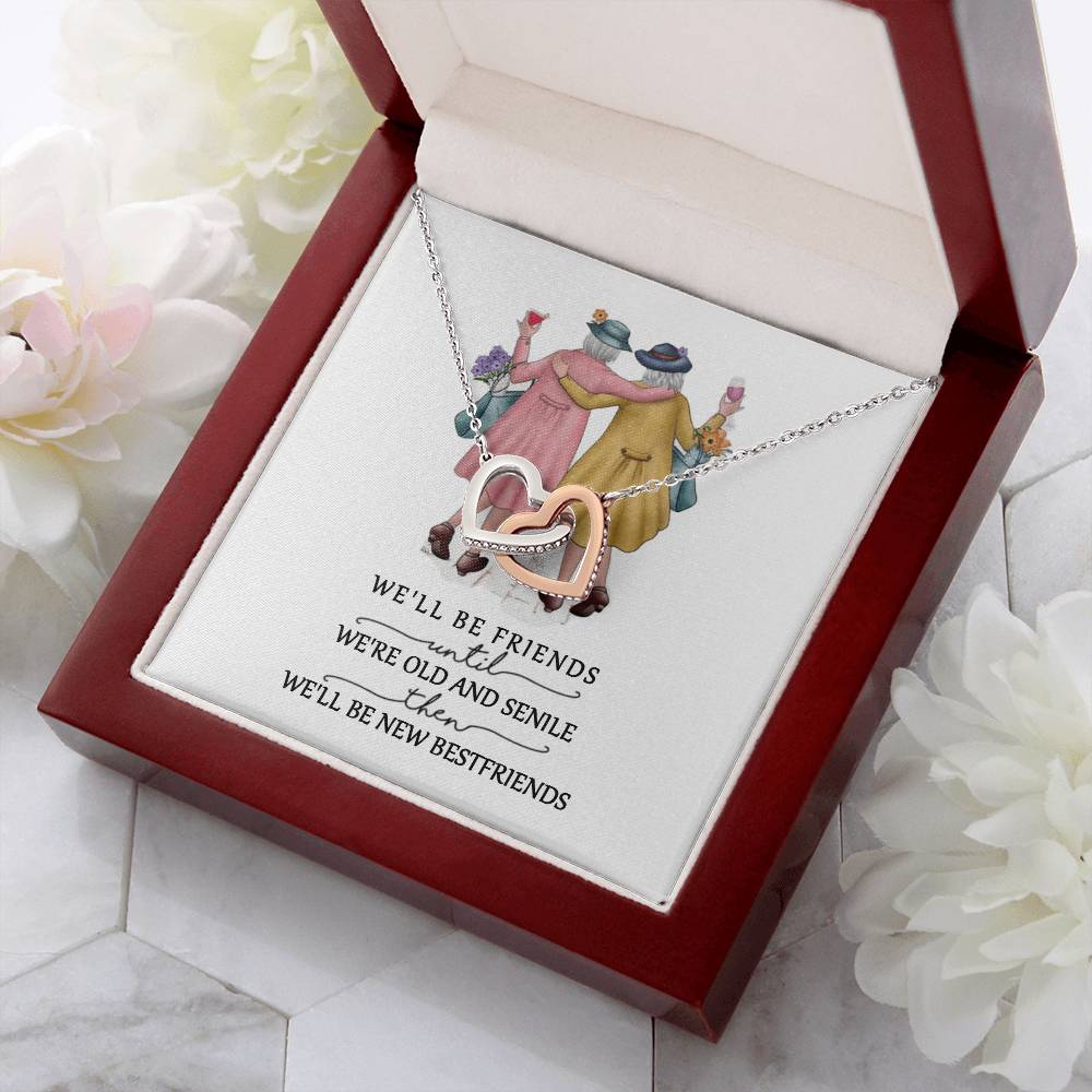 We’re Old And Senile Then We’ll Be New Best Friends 18K Rose Gold Interlocking Hearts Necklace Jewelry Special Friendship Gift