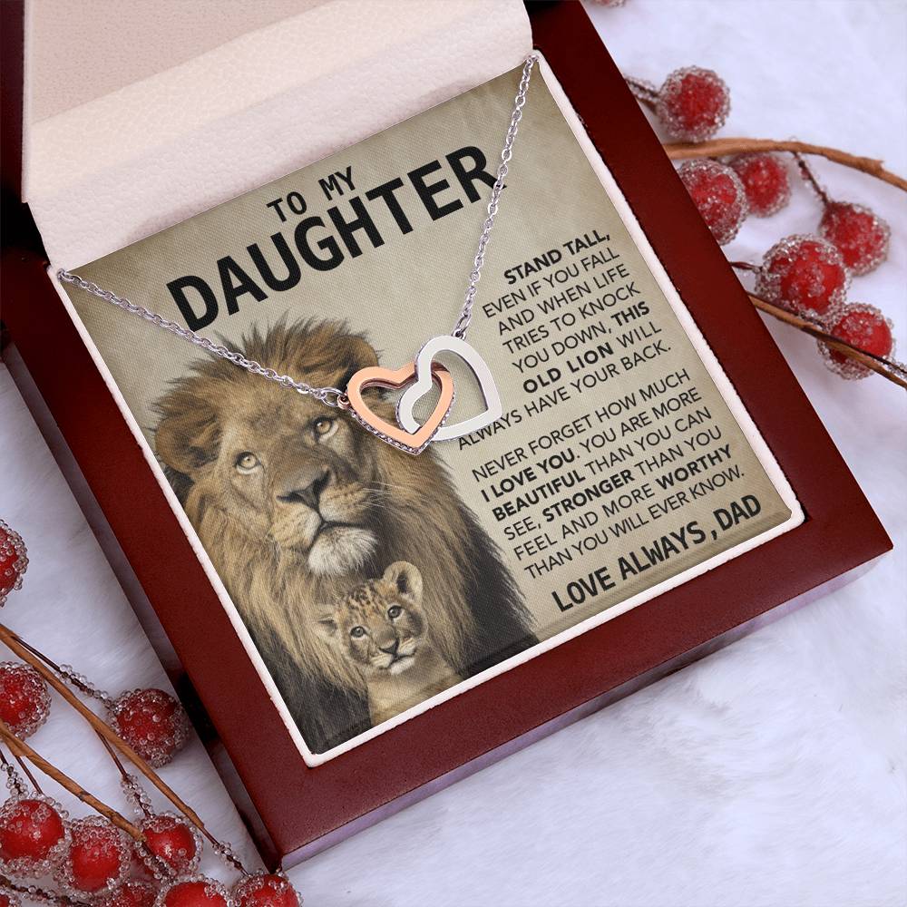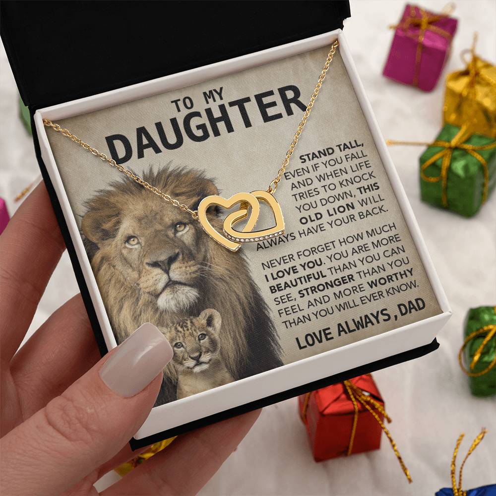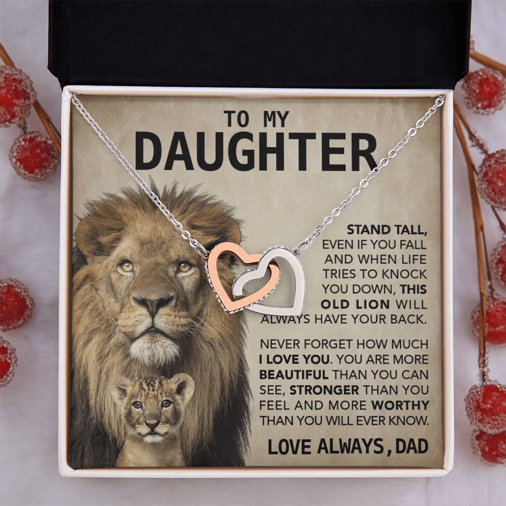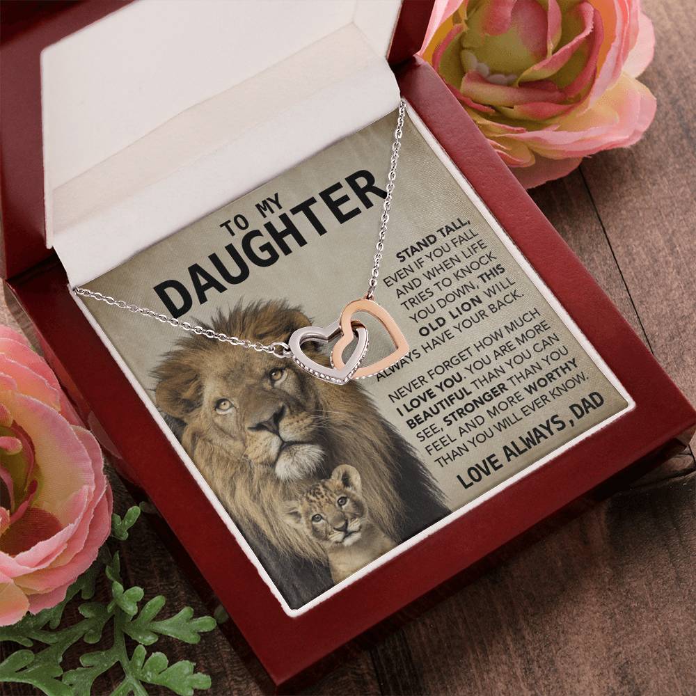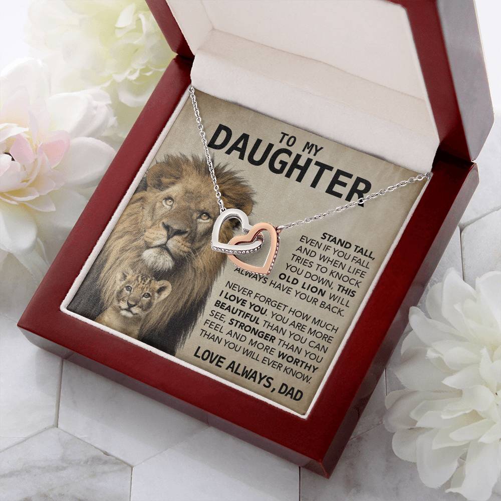 When Life Tries To Knock You Down 18K Rose Gold Interlocking Hearts Necklace Jewelry Special Gift for Daughter Birthday from Dad