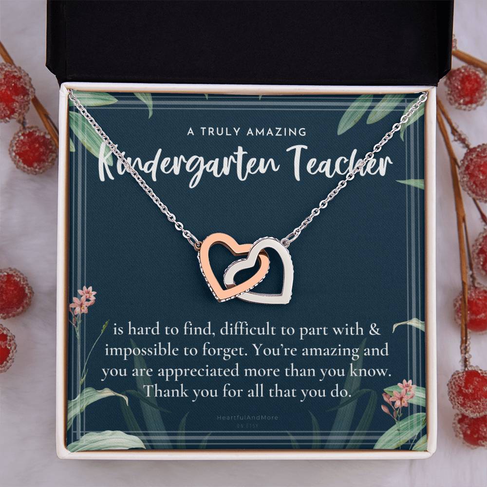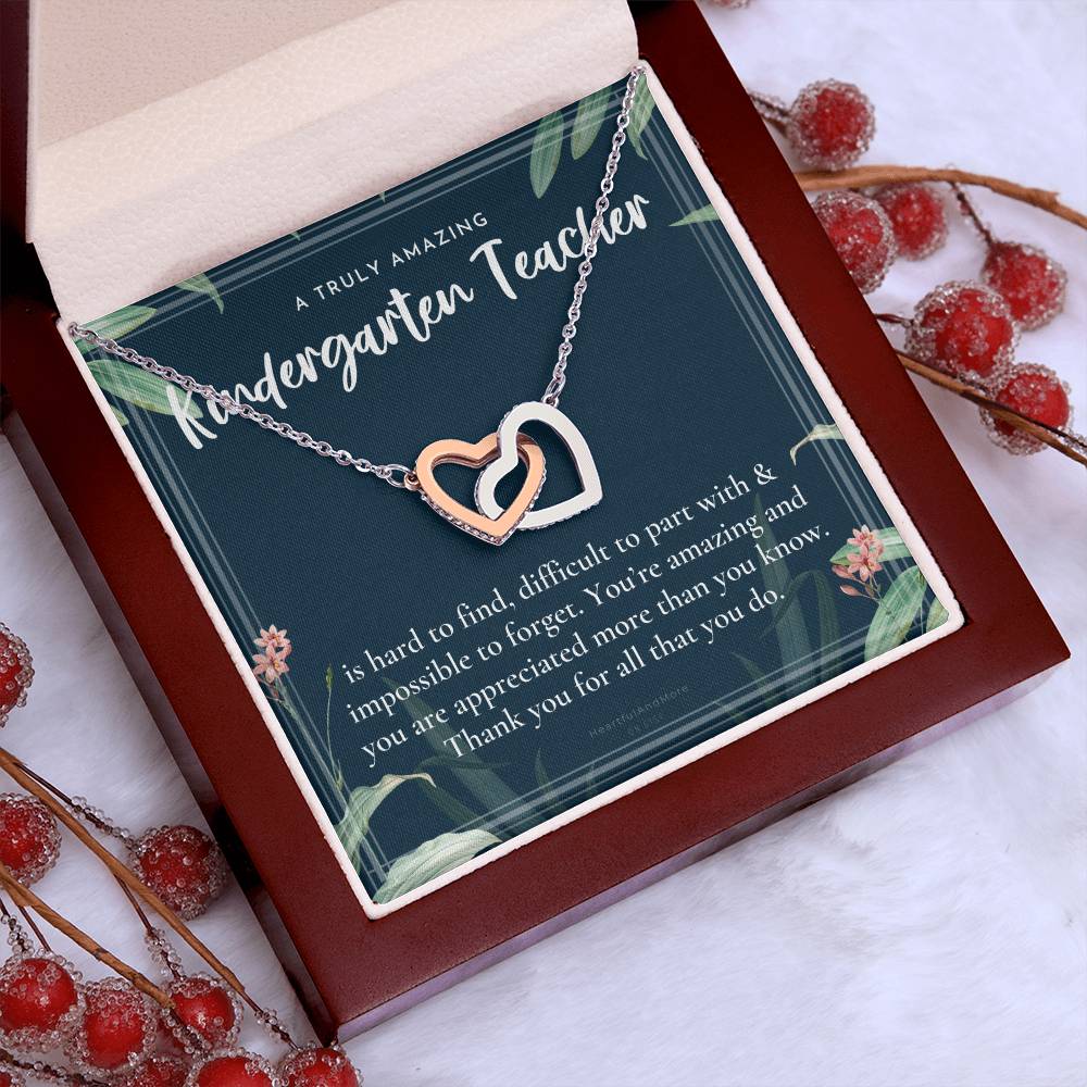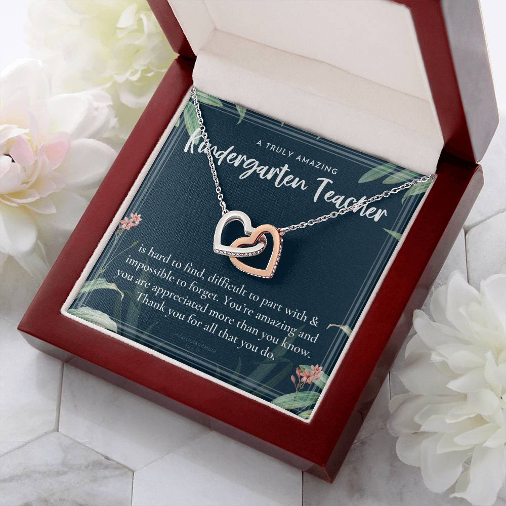You Are a Rare and Wonderful Teacher 18K Rose Gold Interlocking Hearts Necklace Jewelry Heartfelt Gift for Kindergarten Teacher
