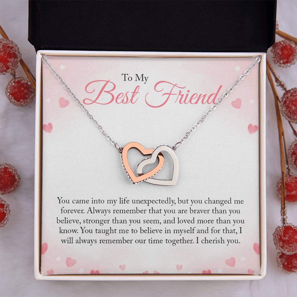 You Changed Me Forever 18K Rose Gold Interlocking Hearts Necklace Jewelry – Beautiful Best Friend Gift