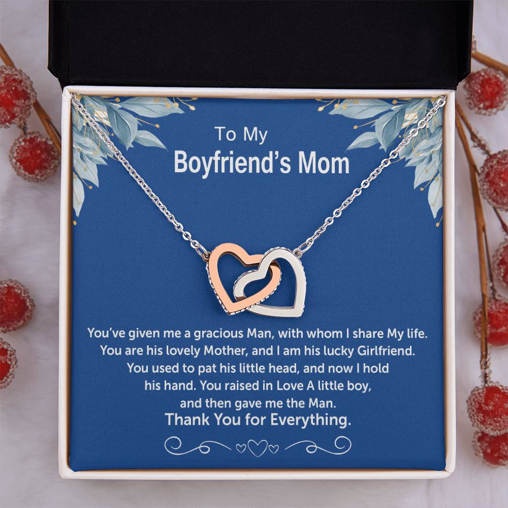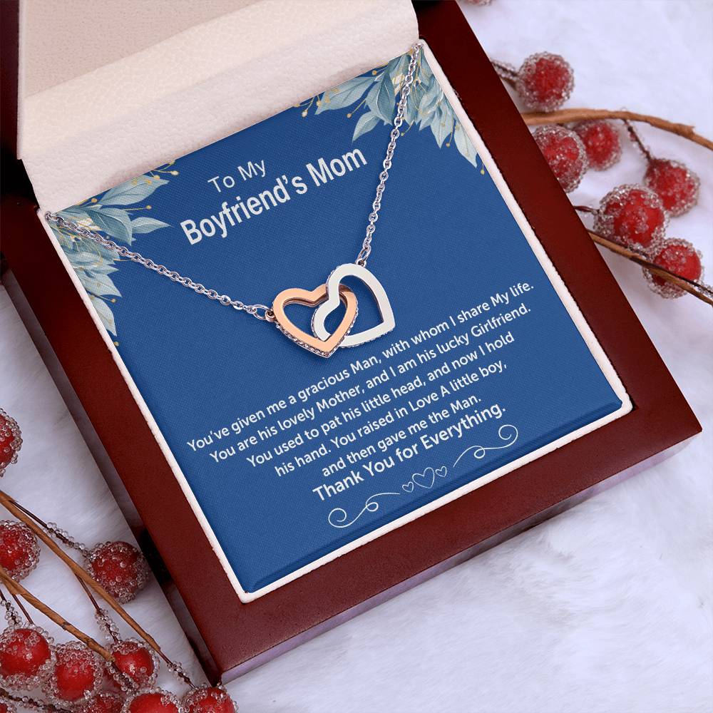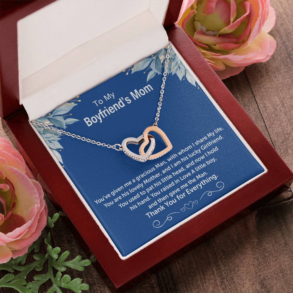 You Raised In Love A Little Boy And Gave Me The Man 18K Rose Gold Interlocking Hearts Necklace Jewelry – Special Thank You Gift for Boyfriend’s Mom from Girlfriend