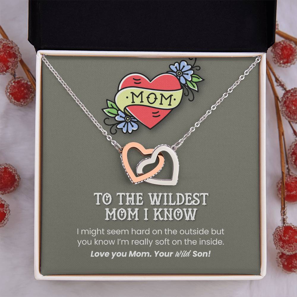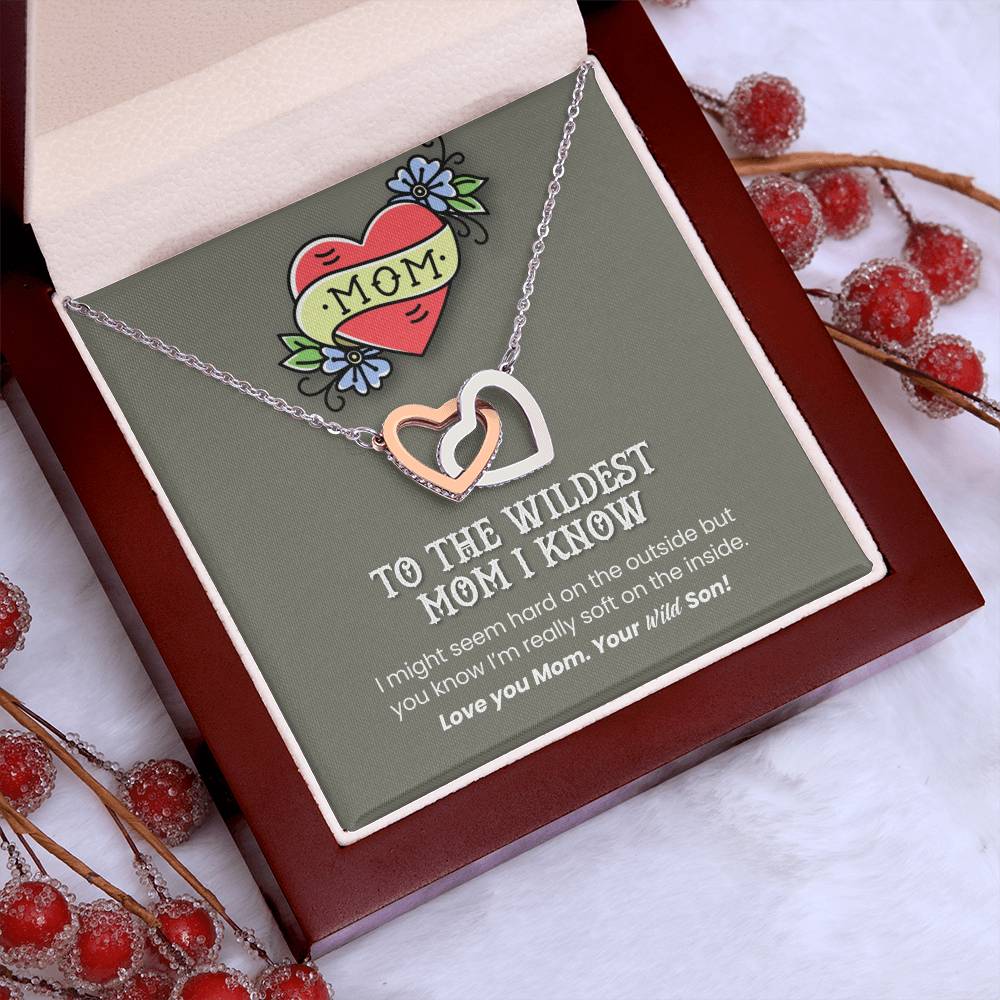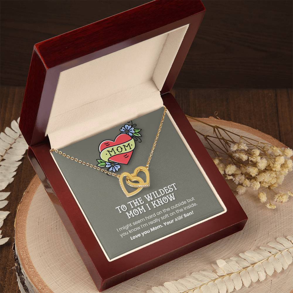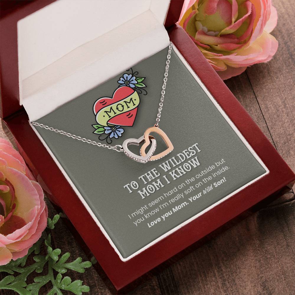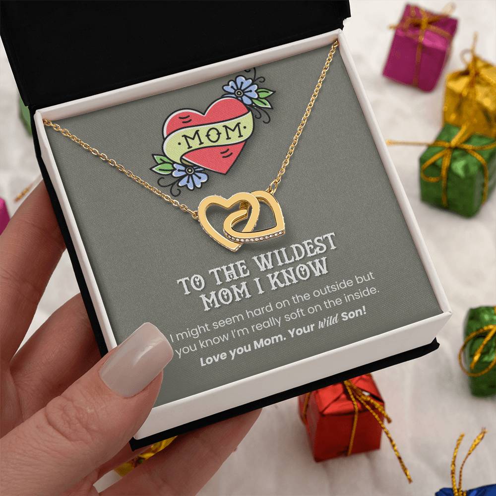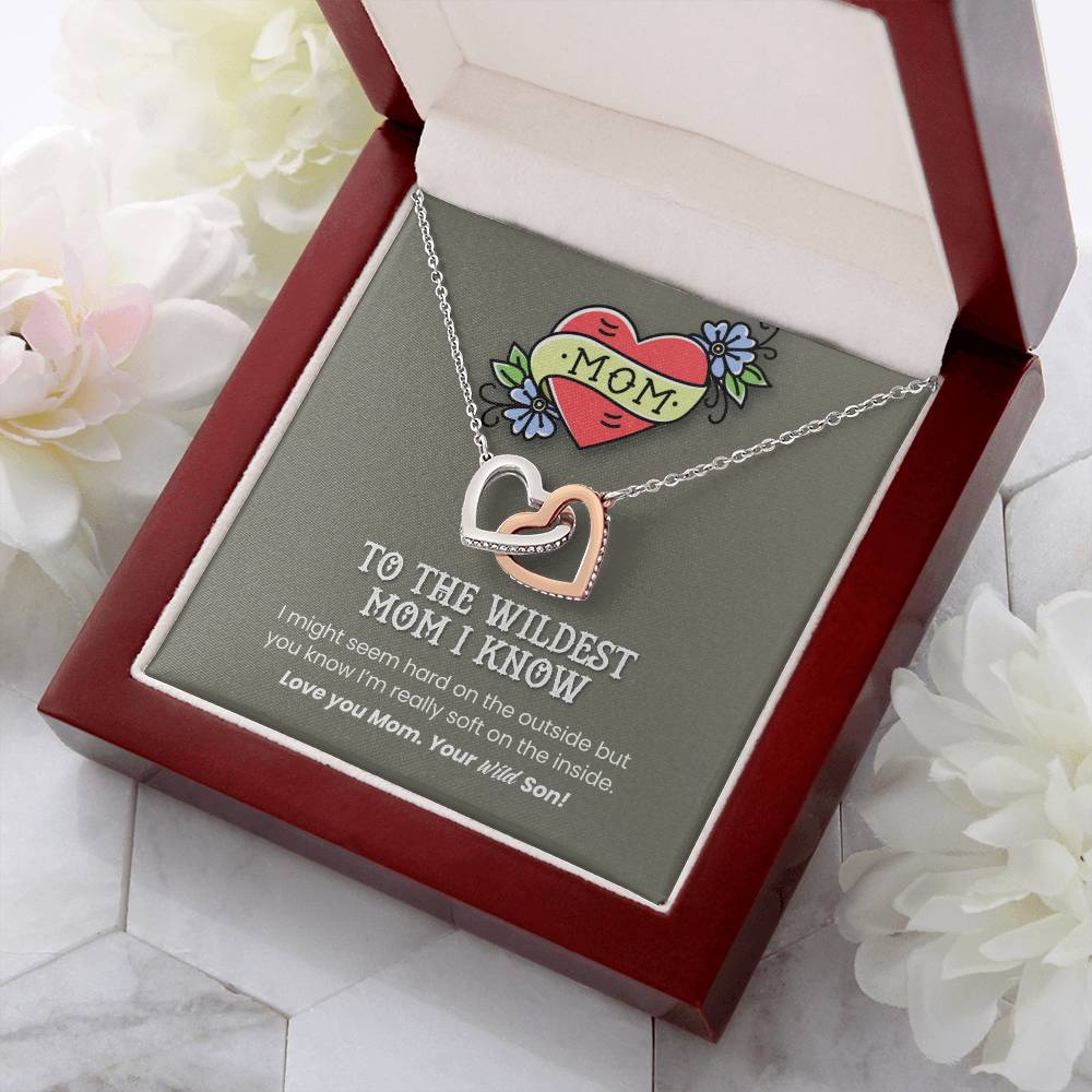Your Wild Son Forever In Your Heart 18K Rose Gold Interlocking Hearts Necklace Jewelry Playful Mom Gift from Son