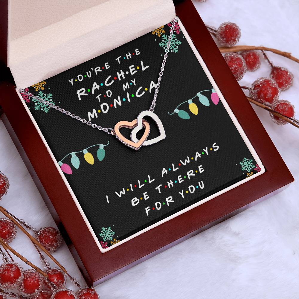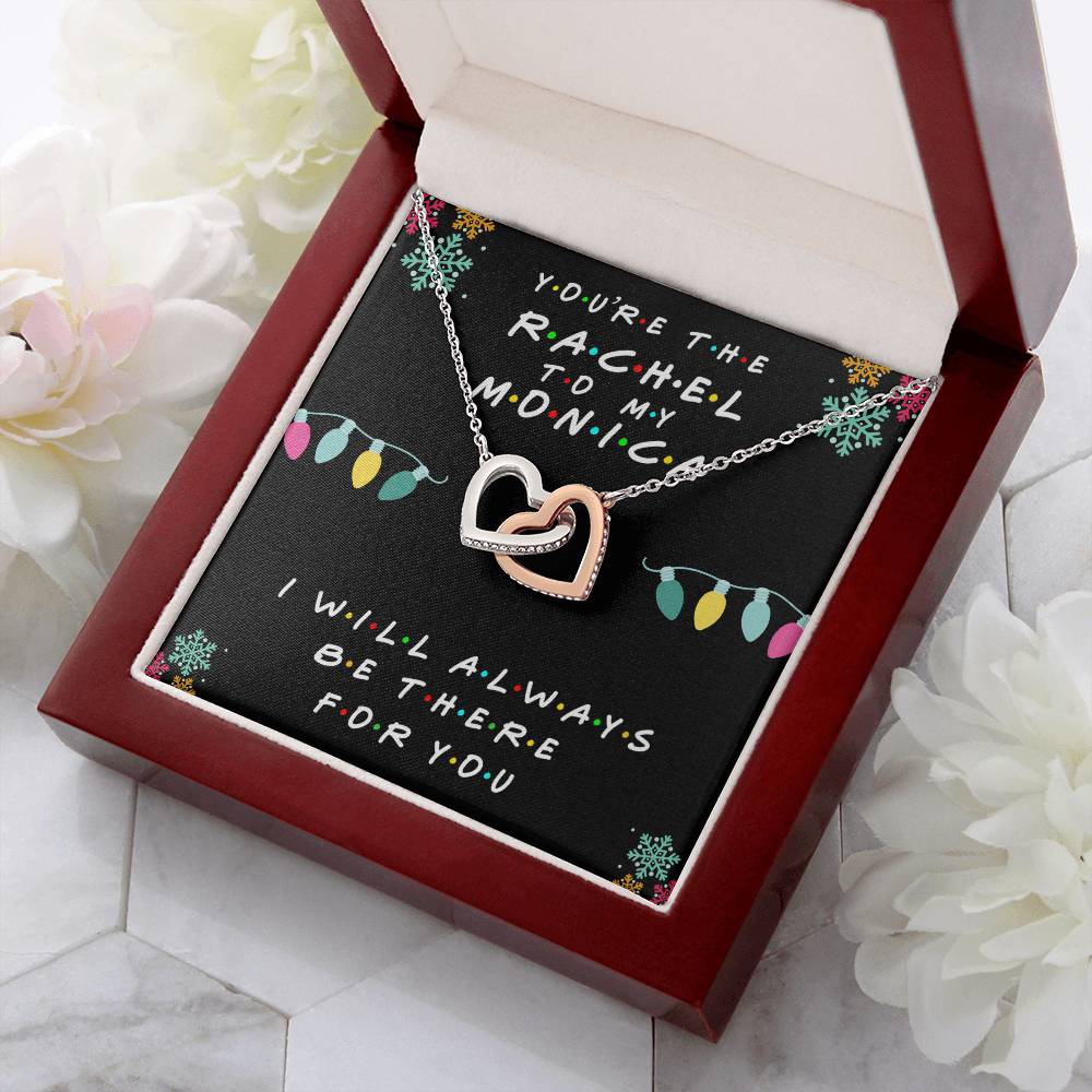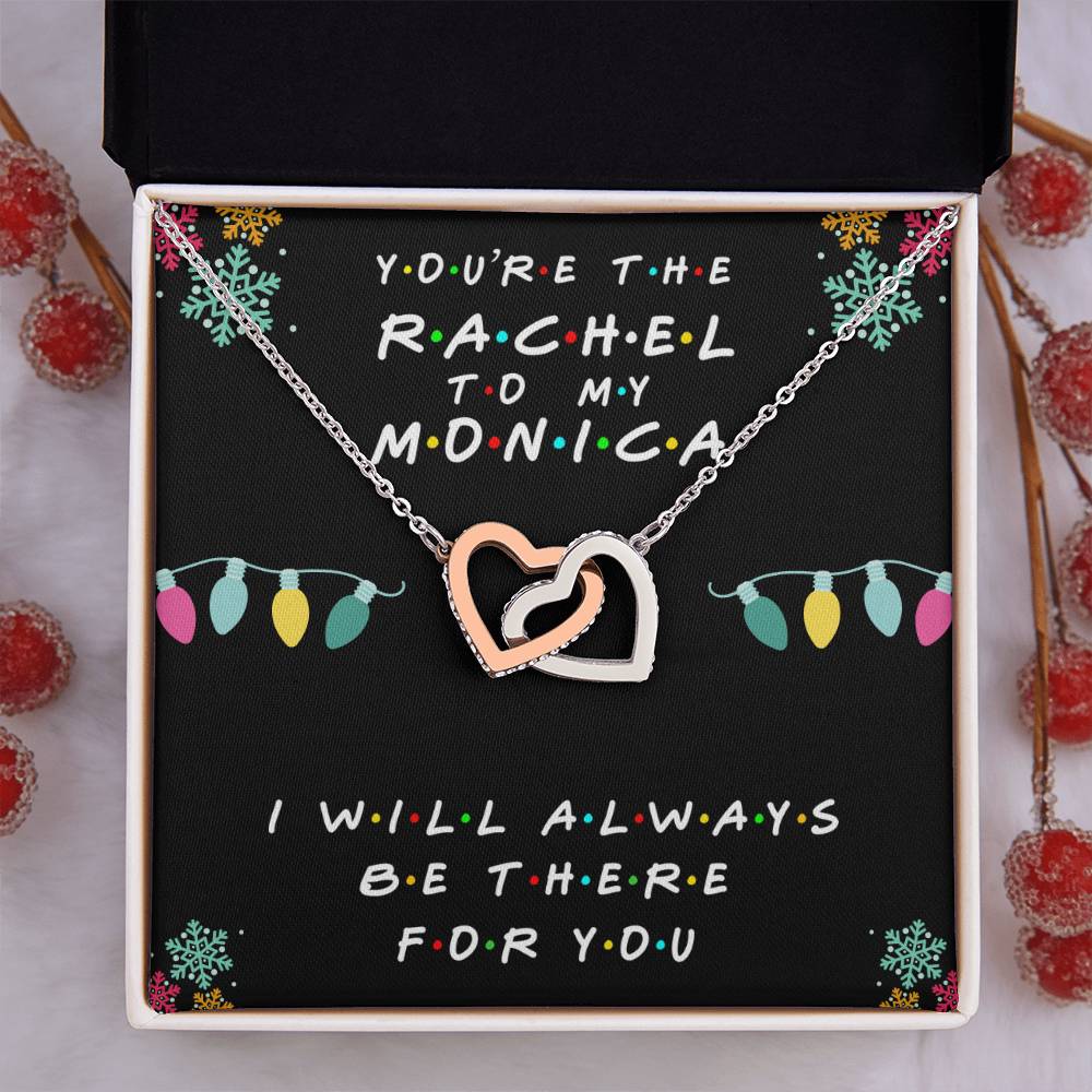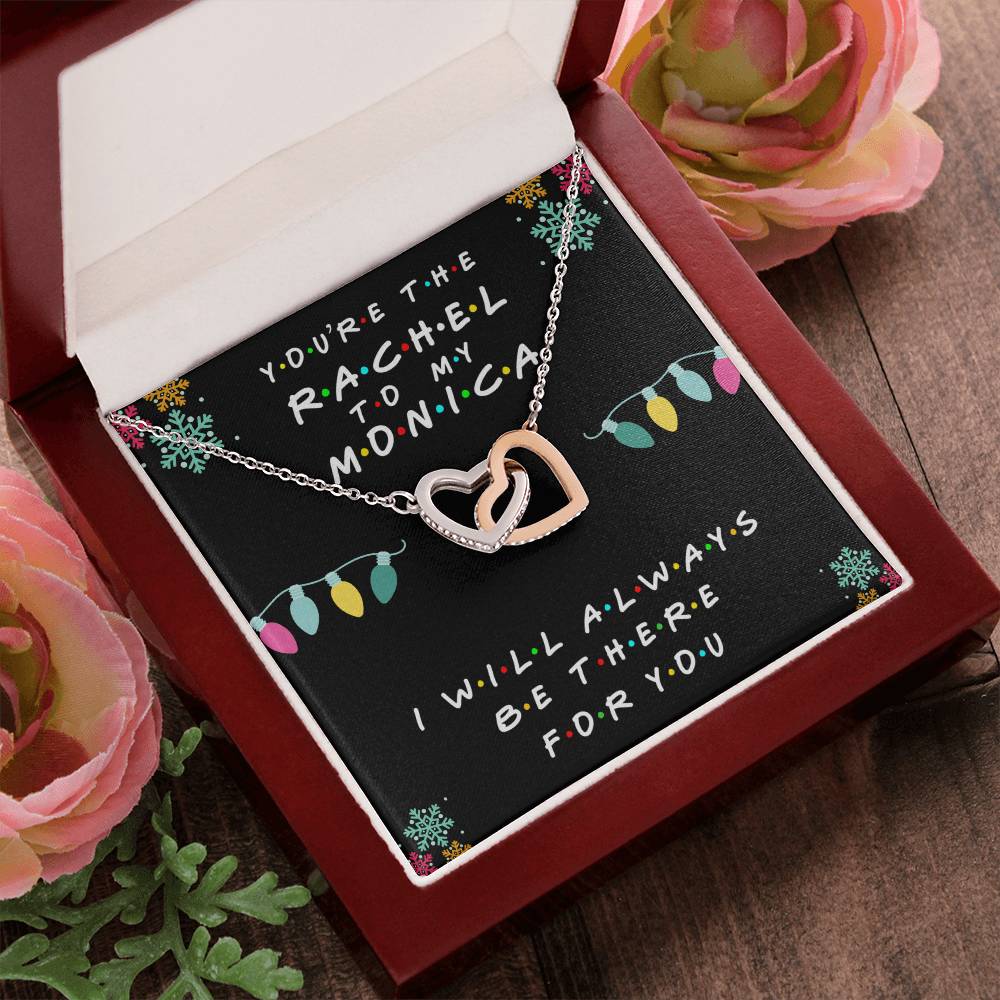 You’re The Rachel To My Monica 18K Rose Gold Interlocking Hearts Necklace Jewelry – Beautiful Birthday Gift for Best Friend