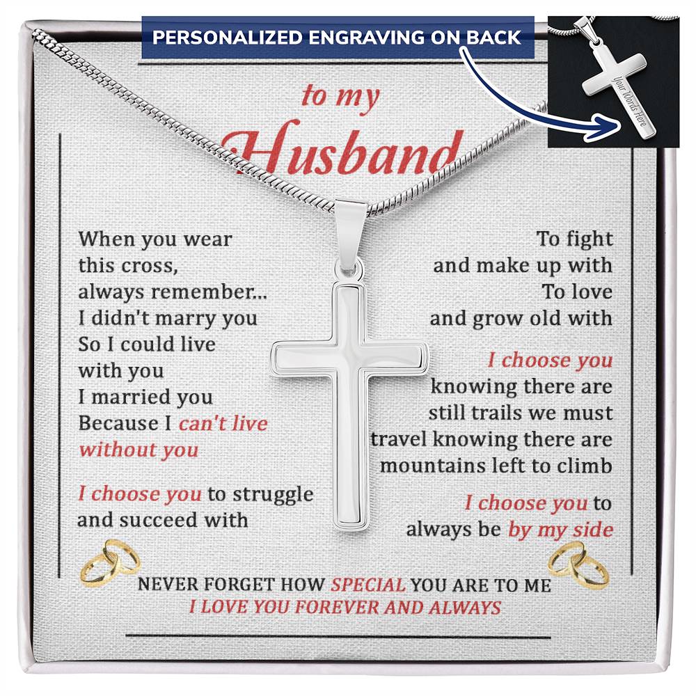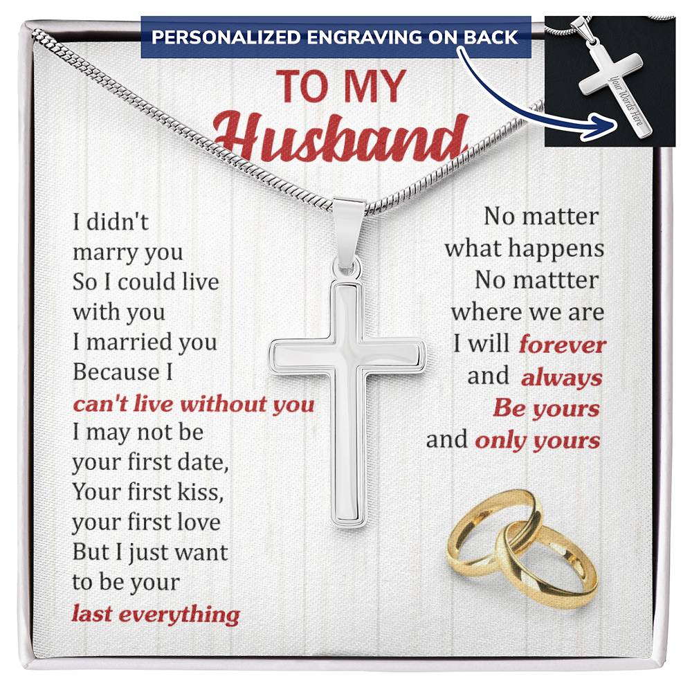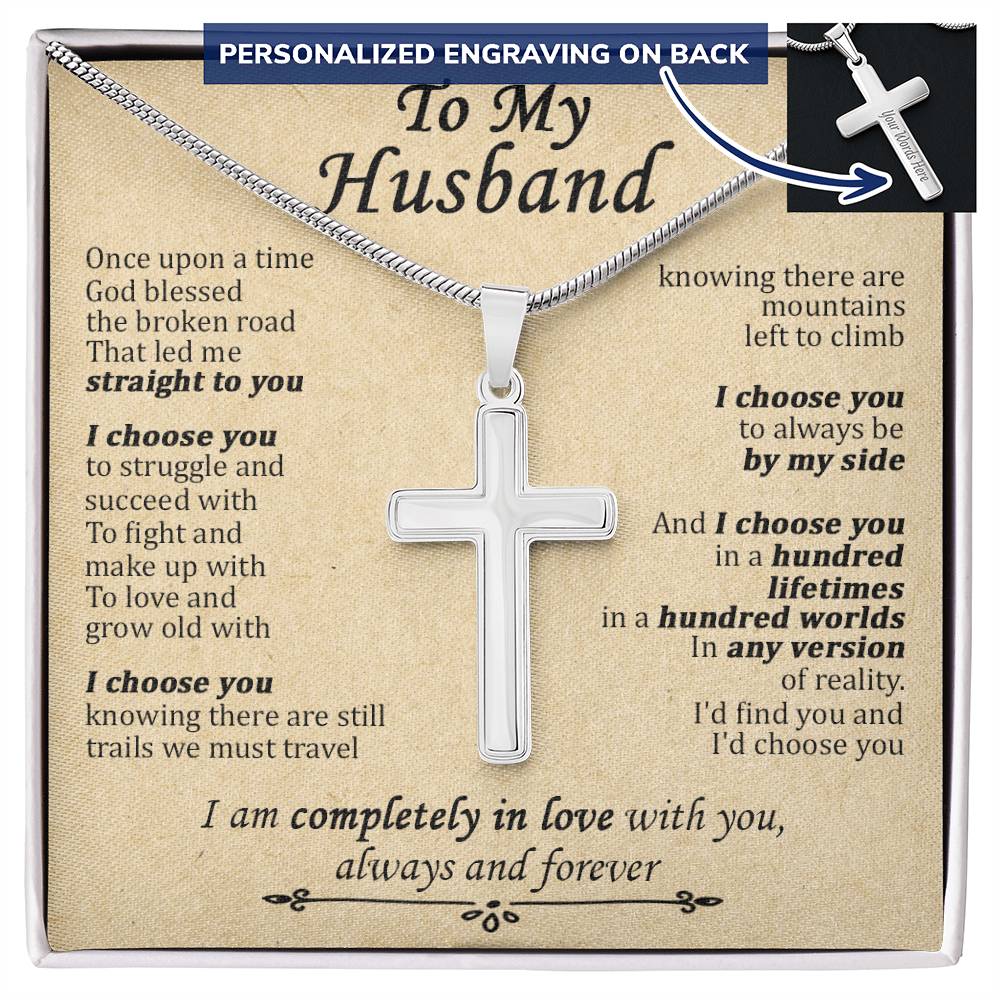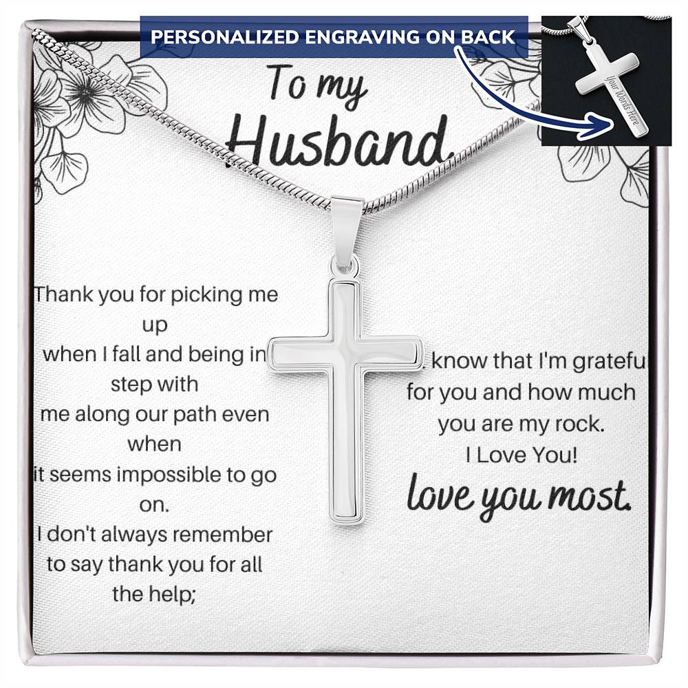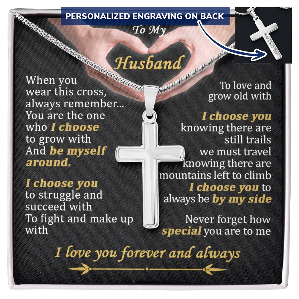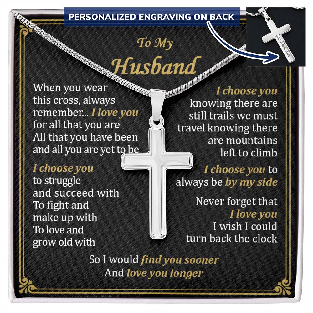 Personalized By My Side Stainless Steel Cross Necklace Engraved Perfect Anniversary Gift for Husband