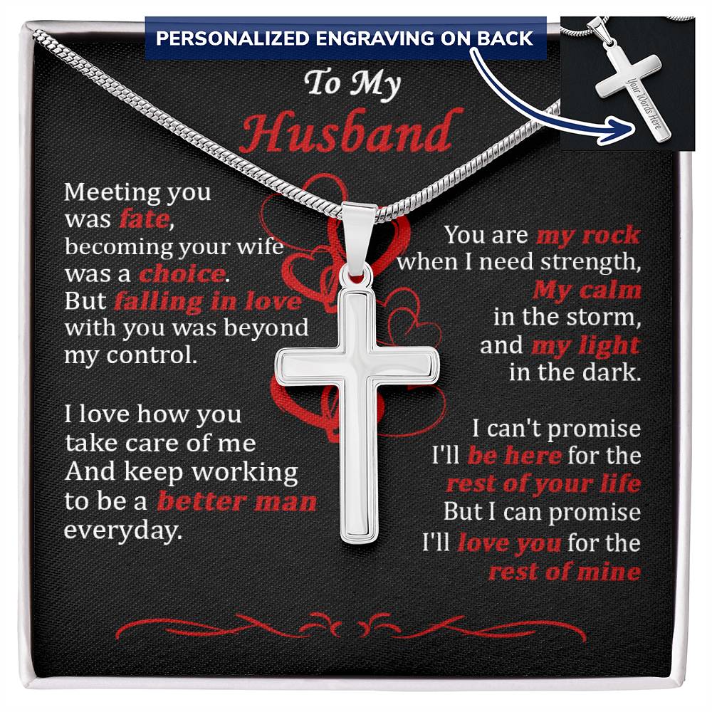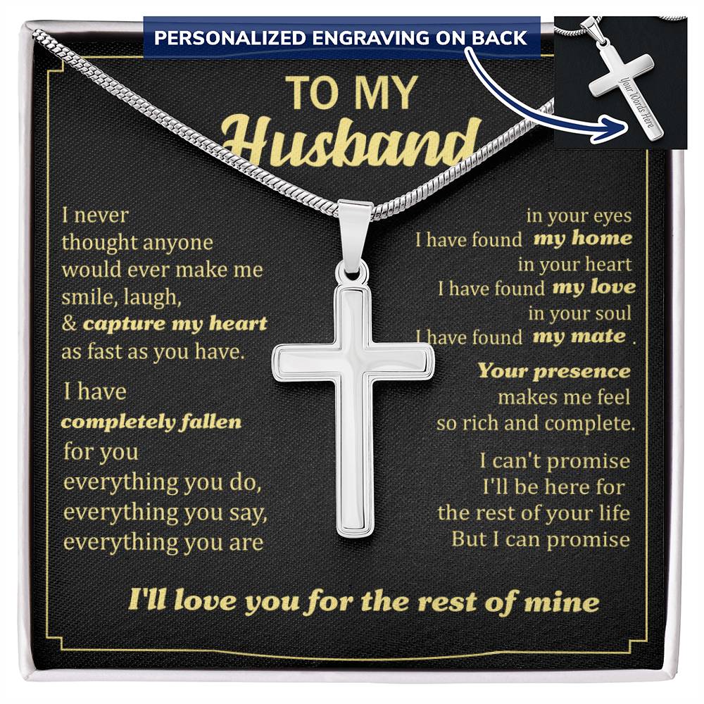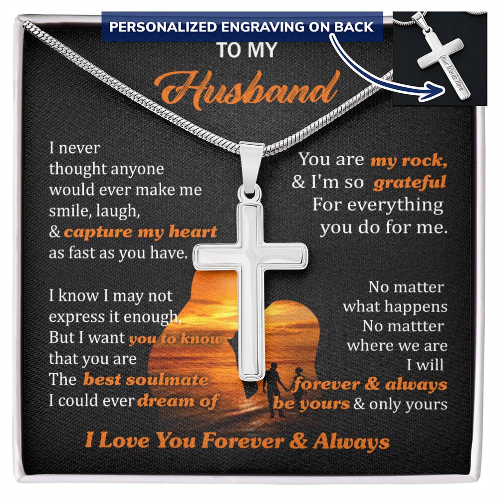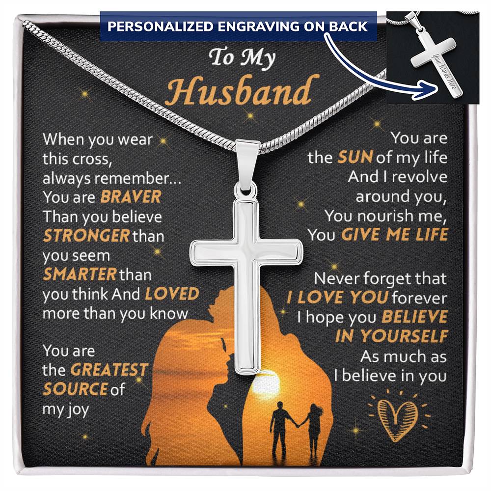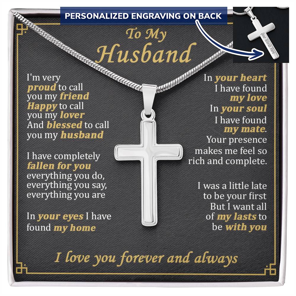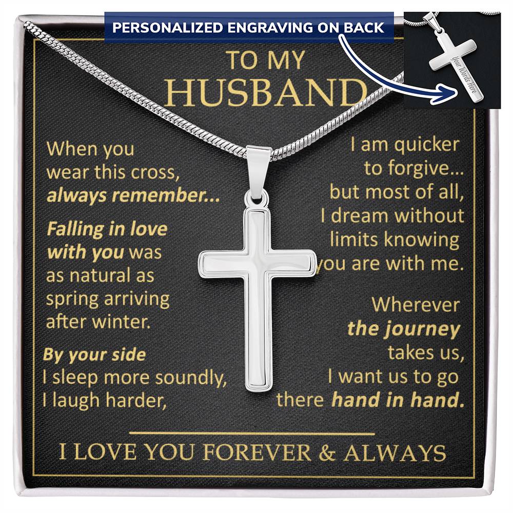 Personalized By My Side Stainless Steel Cross Necklace Engraved Perfect Anniversary Gift for Husband