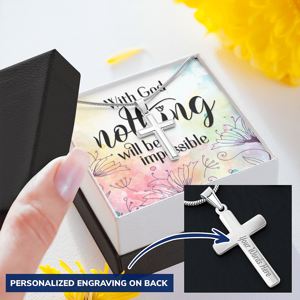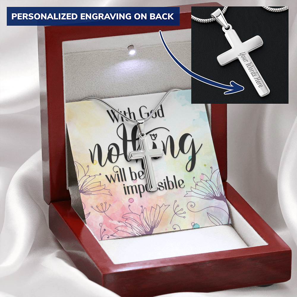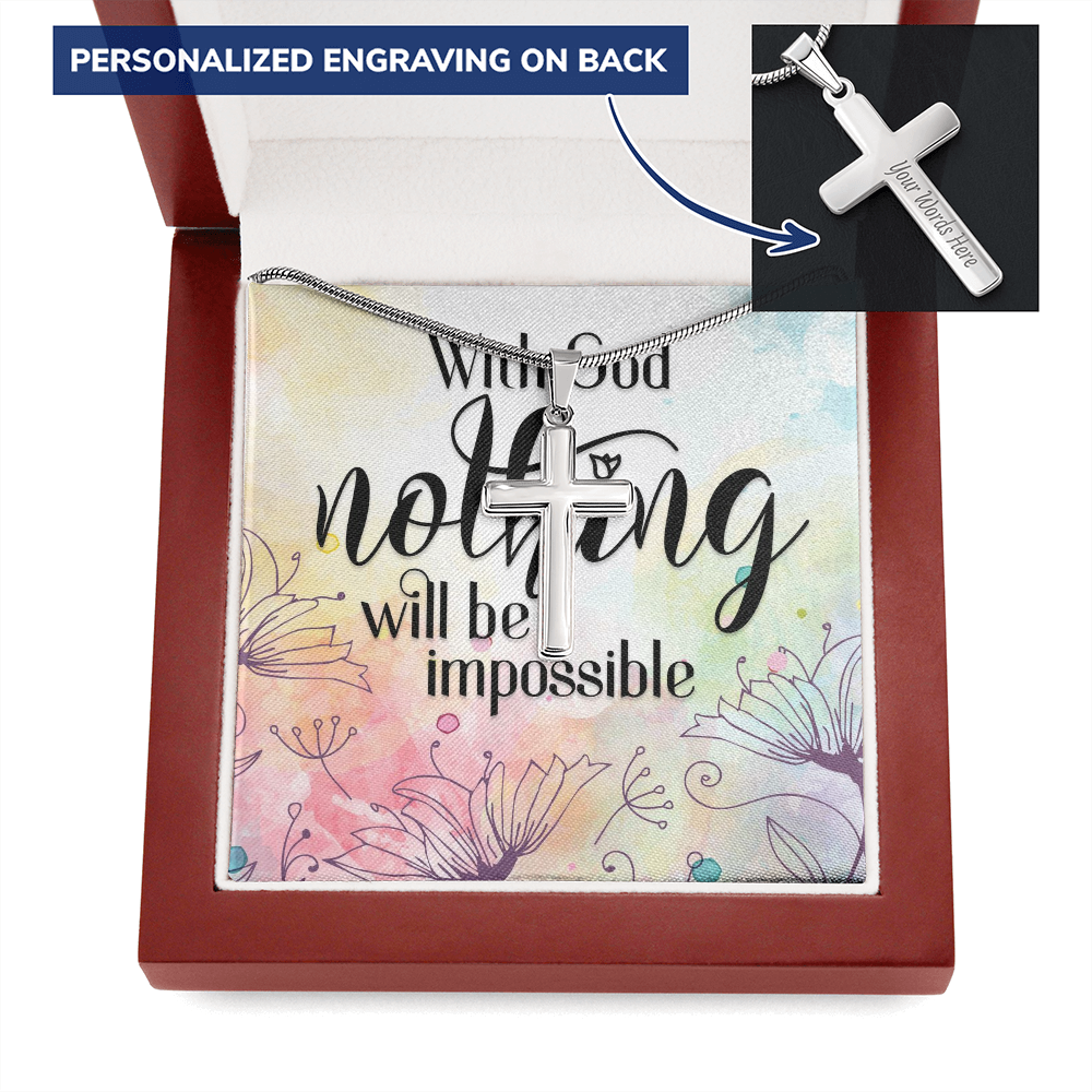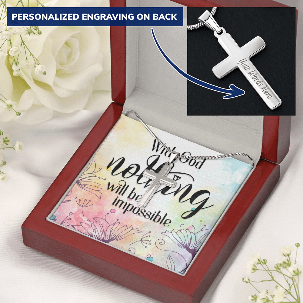 With God Nothing Will Be Impossible Personalized Cross Necklace