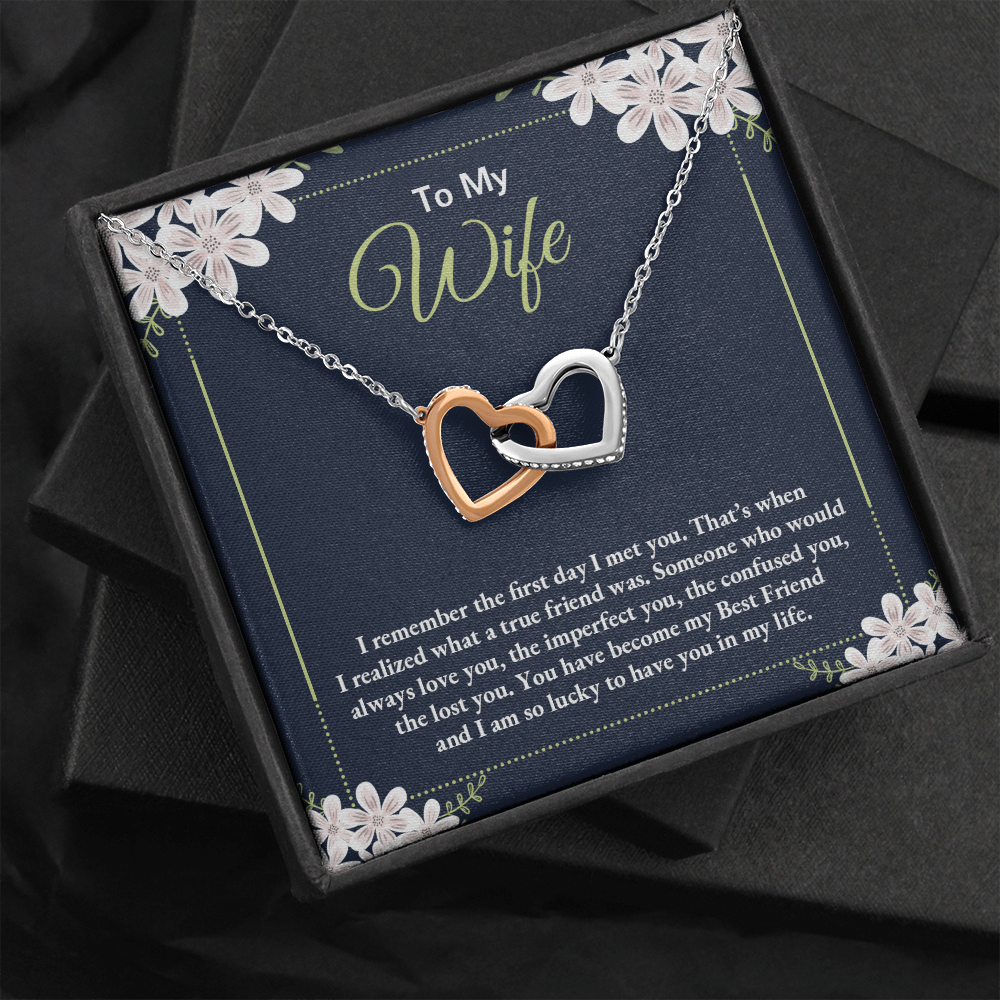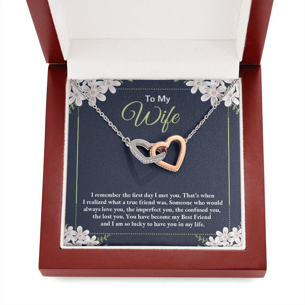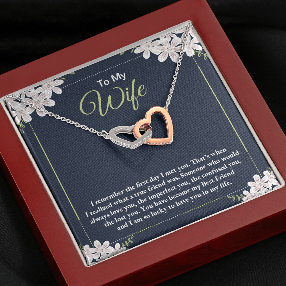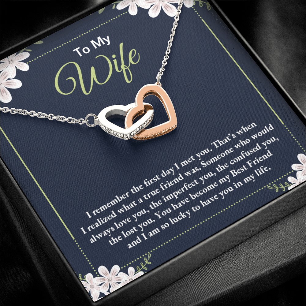 To My Wife - I Am So Lucky To Have You In My Life - Interlocking Hearts Necklace