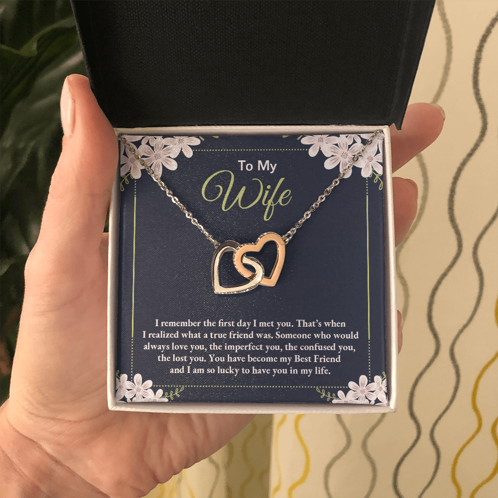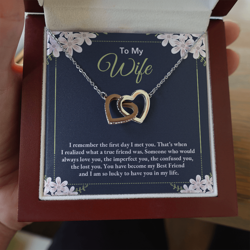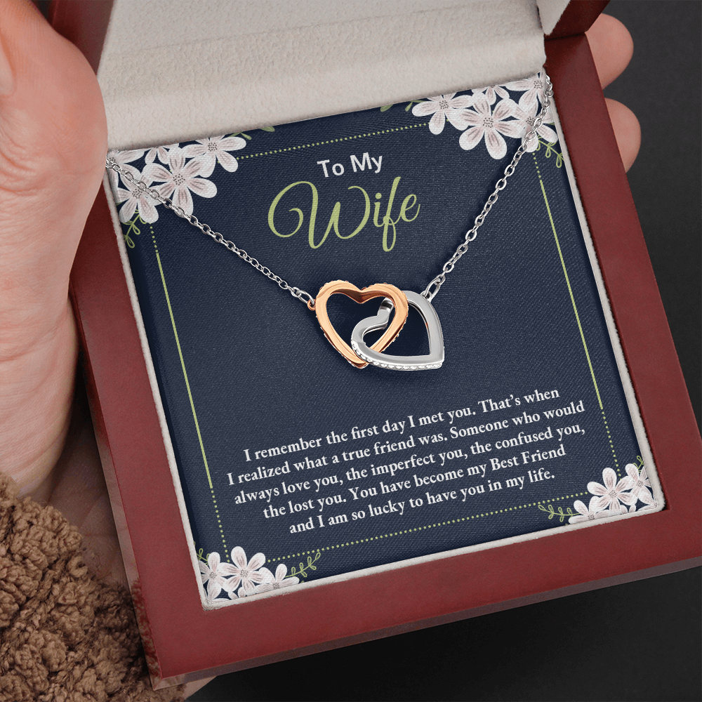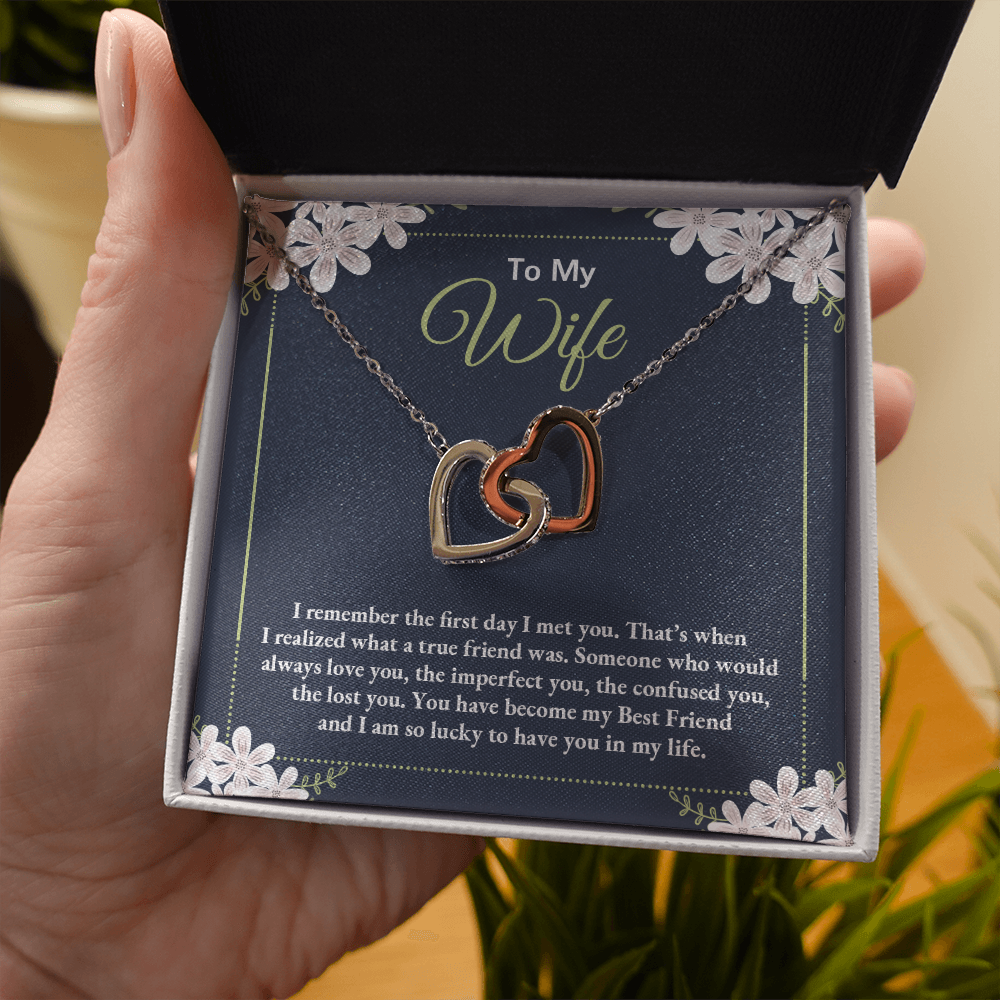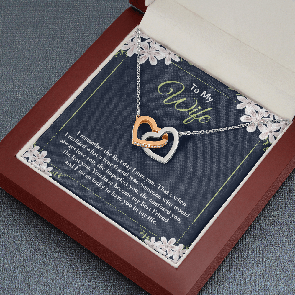 To My Wife - I Am So Lucky To Have You In My Life - Interlocking Hearts Necklace