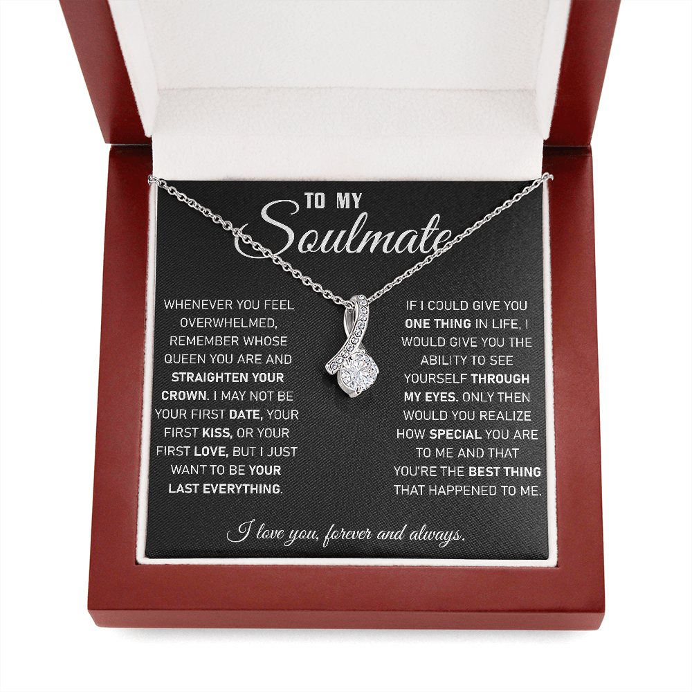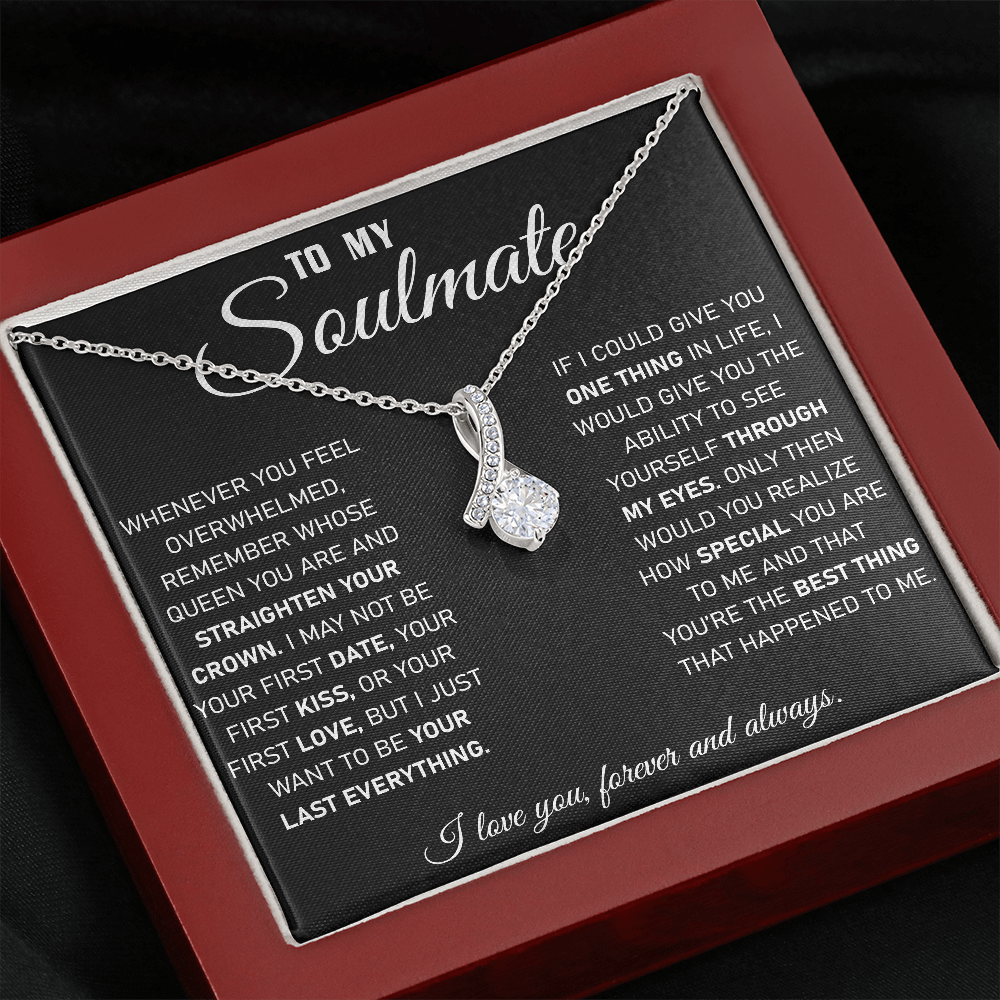 This beautiful sparkly pendant is truly is an alluring gift for yourself or a loved one. The ribbon design is embellished with dainty cubic zirconia, leading your eye down to the 7mm round cut Cubic Zirconia. Crafted with 14k White Gold over Stainless Steel, this necklace dresses up any occasion. The adjustable oblate cable chain allows the necklace to be worn at 18" to 22" in length. Product Dimensions: Height: 0.8" (20mm) x Width: 0.4" (10mm) 7mm cubic zirconia 18"-22" adjustable oblate cable chain with lobster clasp.