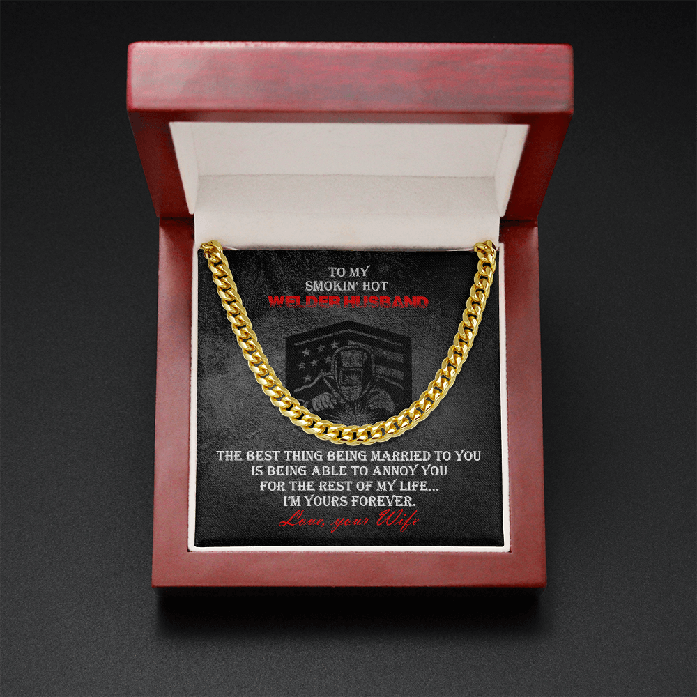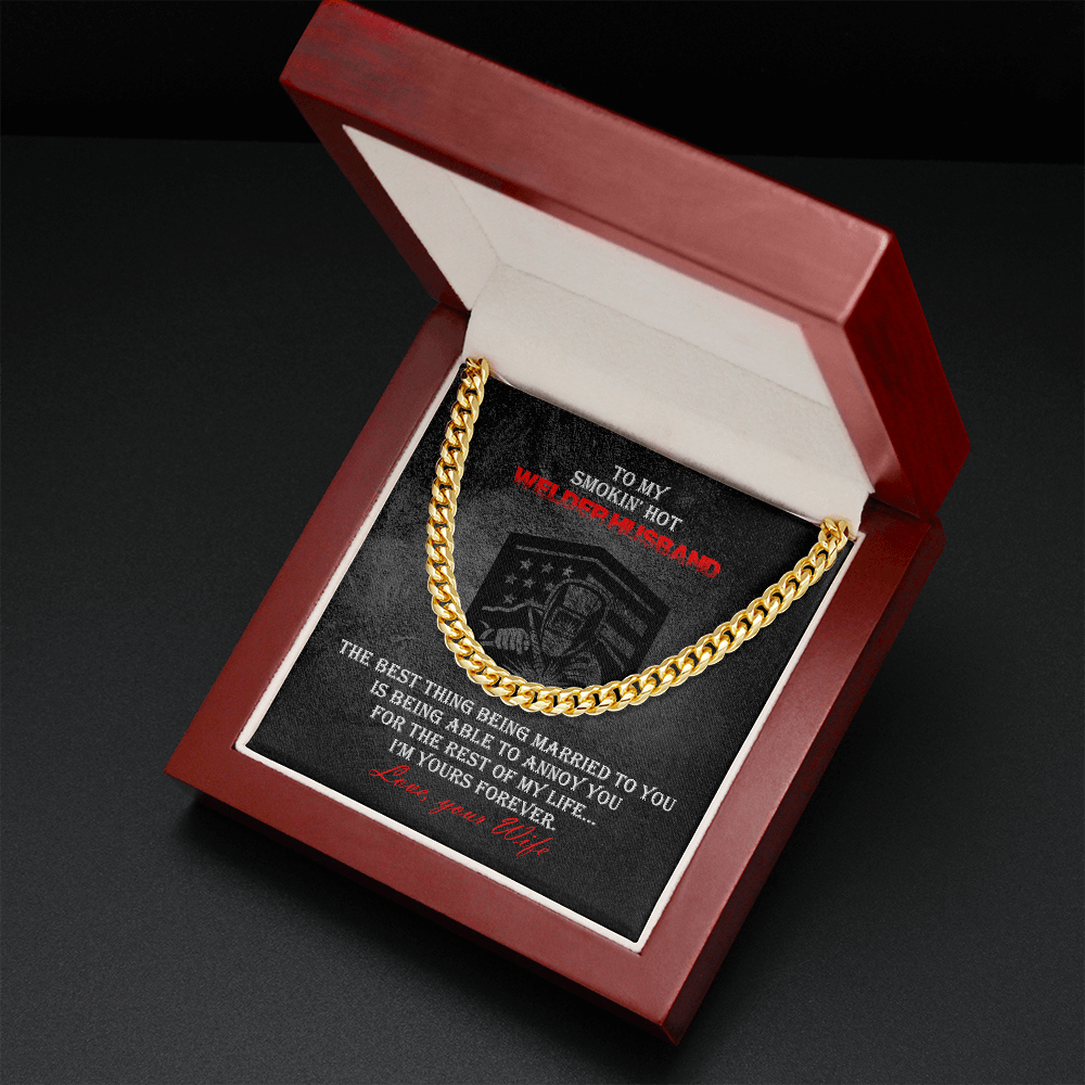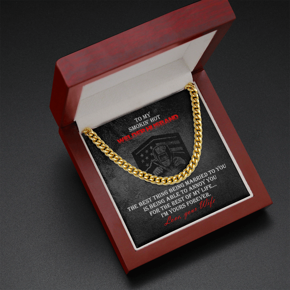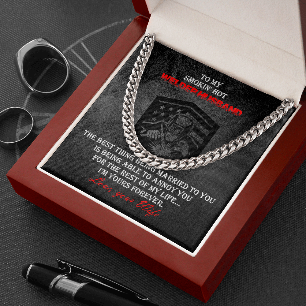Give your welder husband a timeless stainless steel necklace that shows off his strength and style! You can be sure this wonderfully weighted necklace will be a favorite piece he will wear day after day. This striking welder cuban link chain necklace requires little or no maintenance to keep it looking new because stainless steel jewelry will not fade, rust, or tarnish.