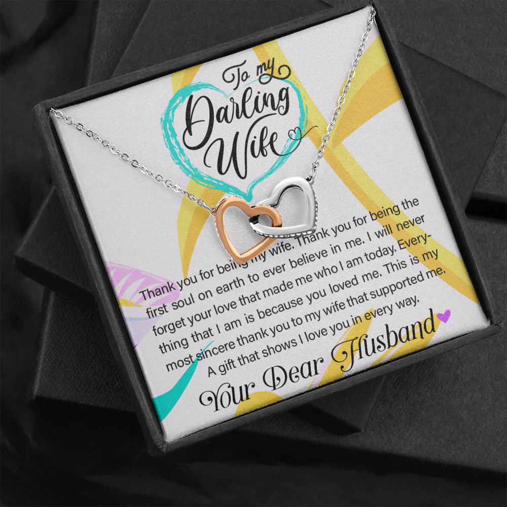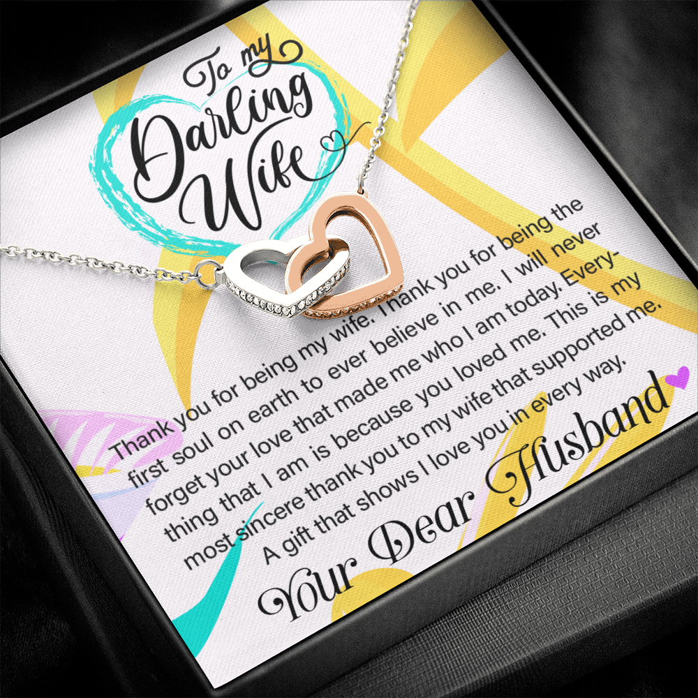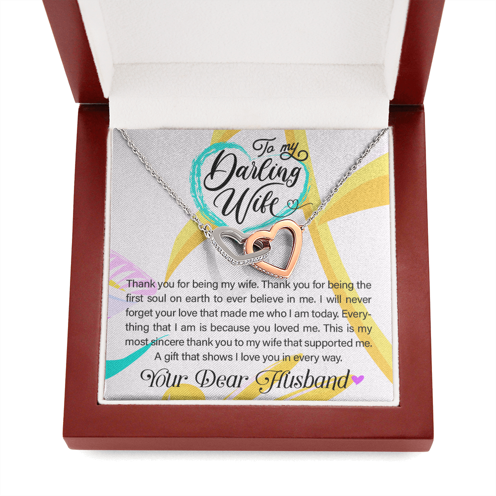 Two hearts embellished with Cubic Zirconia stones, interlocked together as a symbol of never-ending love. Made with high quality polished surgical steel. Cable chain measures 18 inches with a 4 inch extension, and fastens with a lobster clasp.