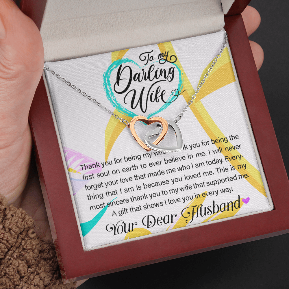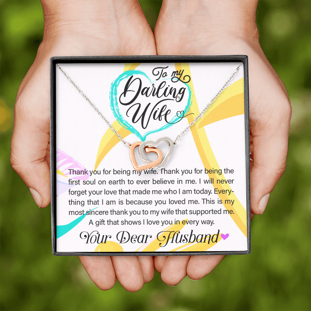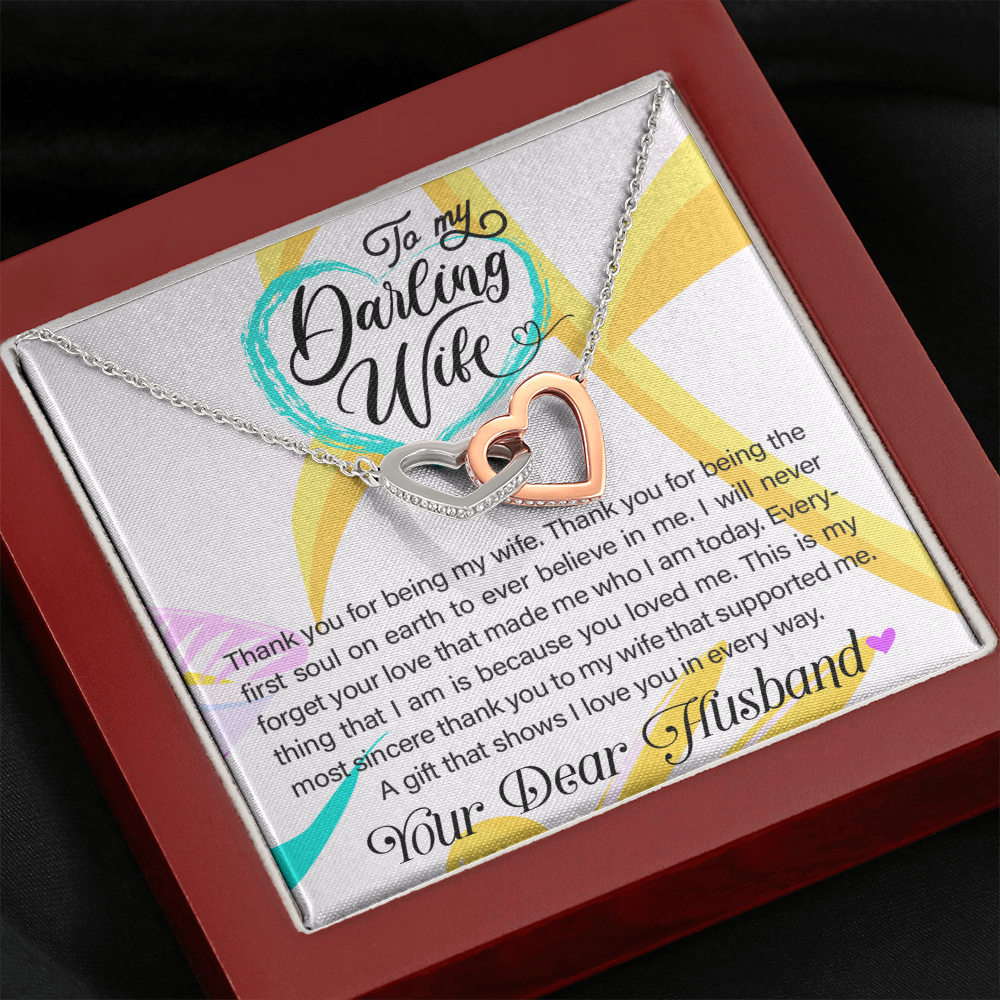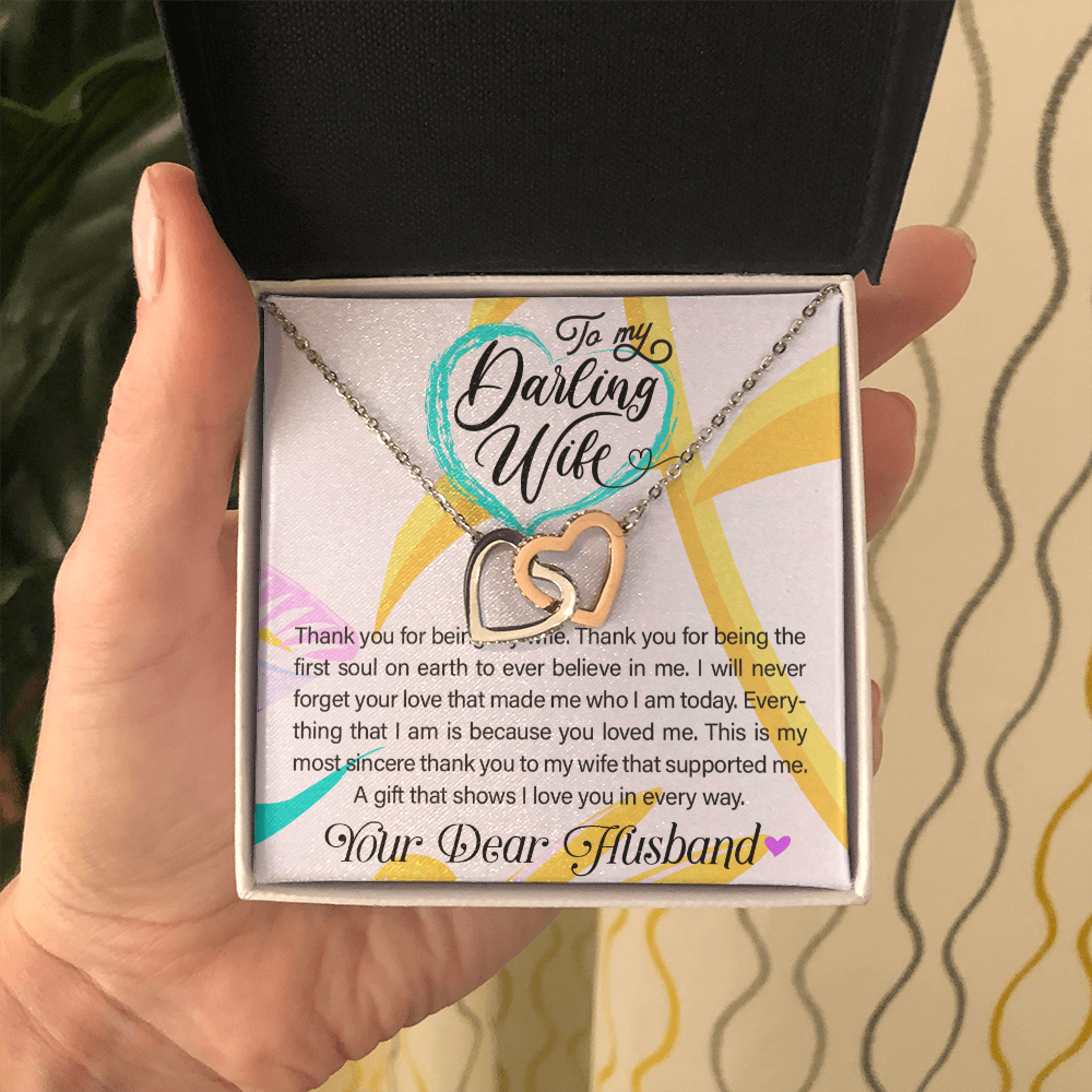 Two hearts embellished with Cubic Zirconia stones, interlocked together as a symbol of never-ending love. Made with high quality polished surgical steel. Cable chain measures 18 inches with a 4 inch extension, and fastens with a lobster clasp.