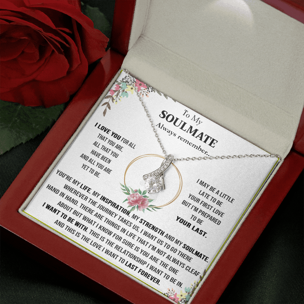 This beautiful sparkly pendant is truly is an alluring gift for yourself or a loved one. The ribbon design is embellished with dainty cubic zirconia, leading your eye down to the 7mm round cut Cubic Zirconia. Crafted with 14k White Gold over Stainless Steel, this necklace dresses up any occasion. The adjustable oblate cable chain allows the necklace to be worn at 18" to 22" in length. Product Dimensions: Height: 0.8" (20mm) x Width: 0.4" (10mm) 7mm cubic zirconia 18"-22" adjustable oblate cable chain with lobster clasp.