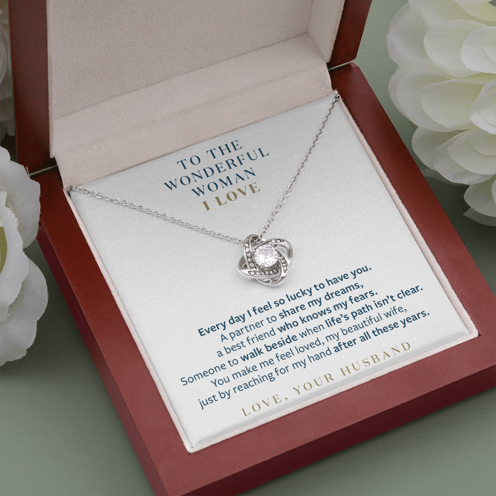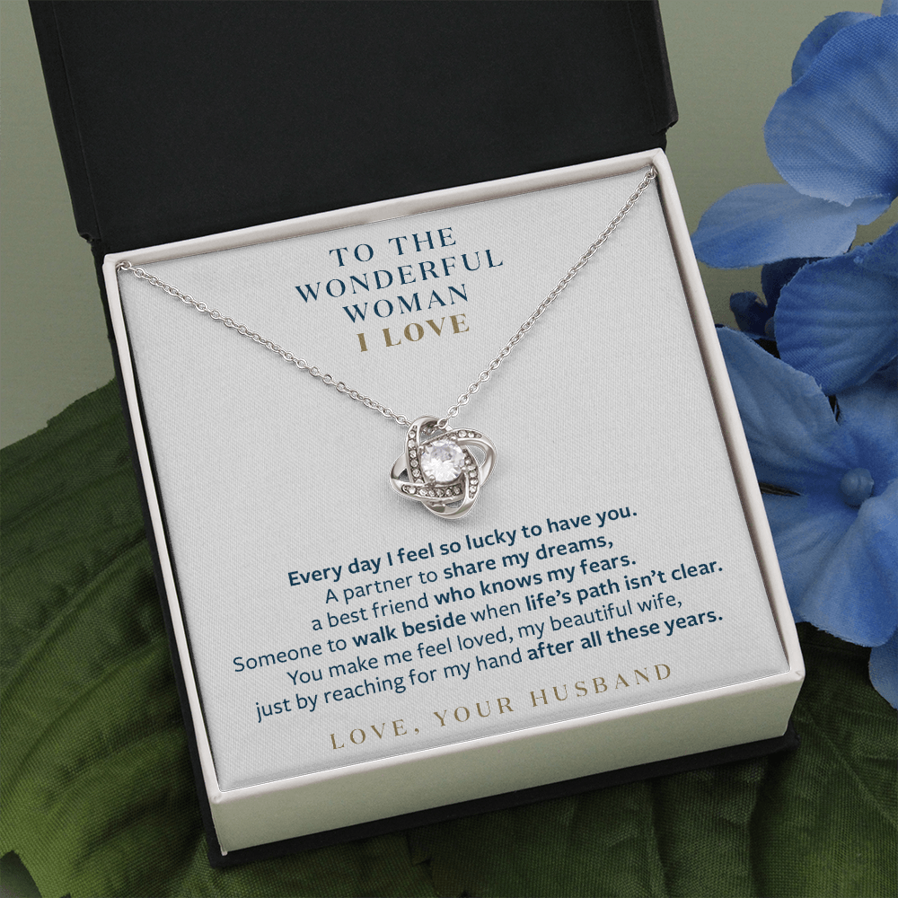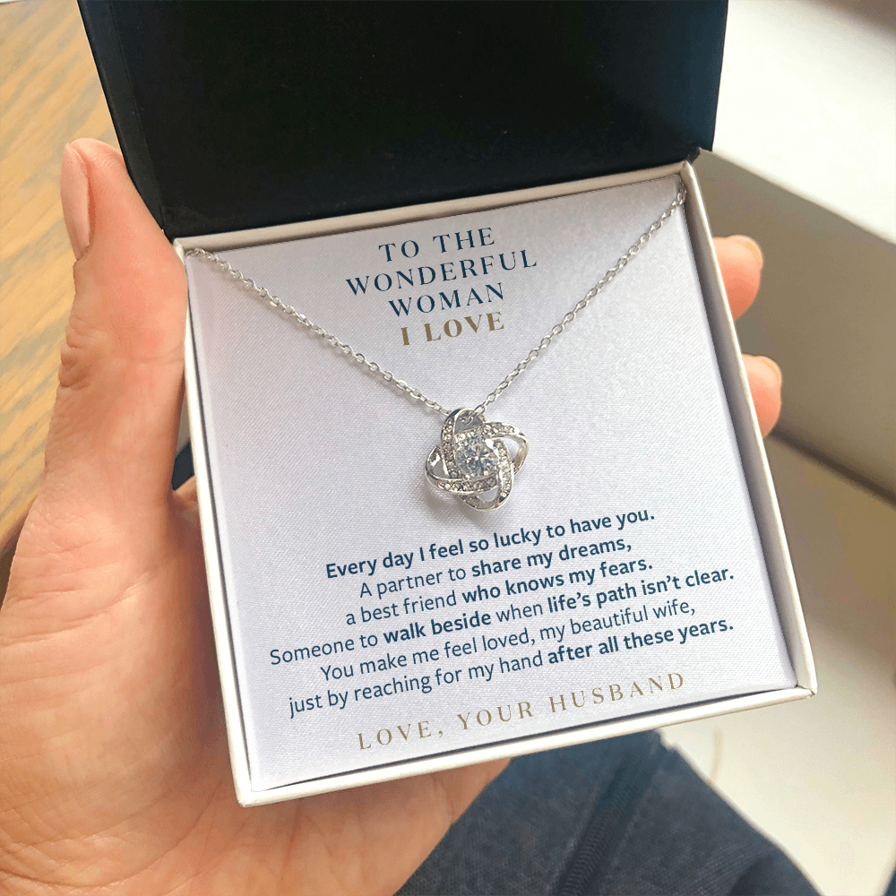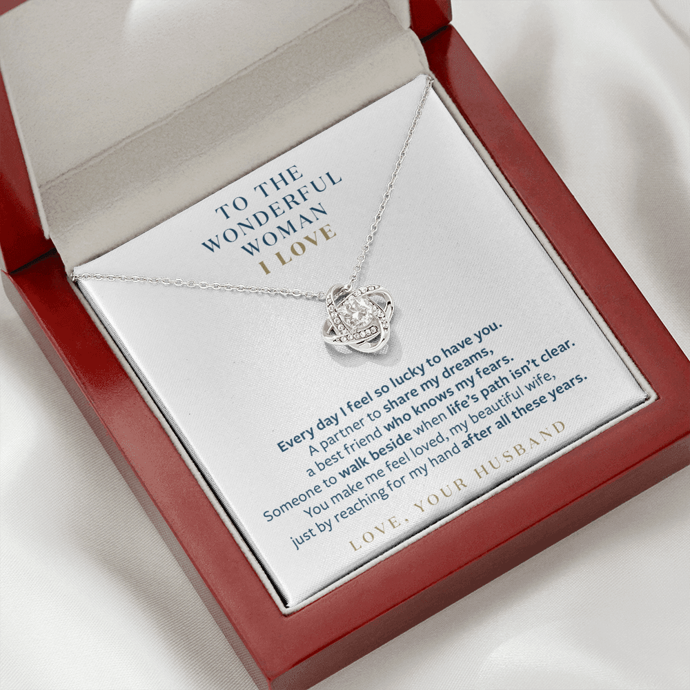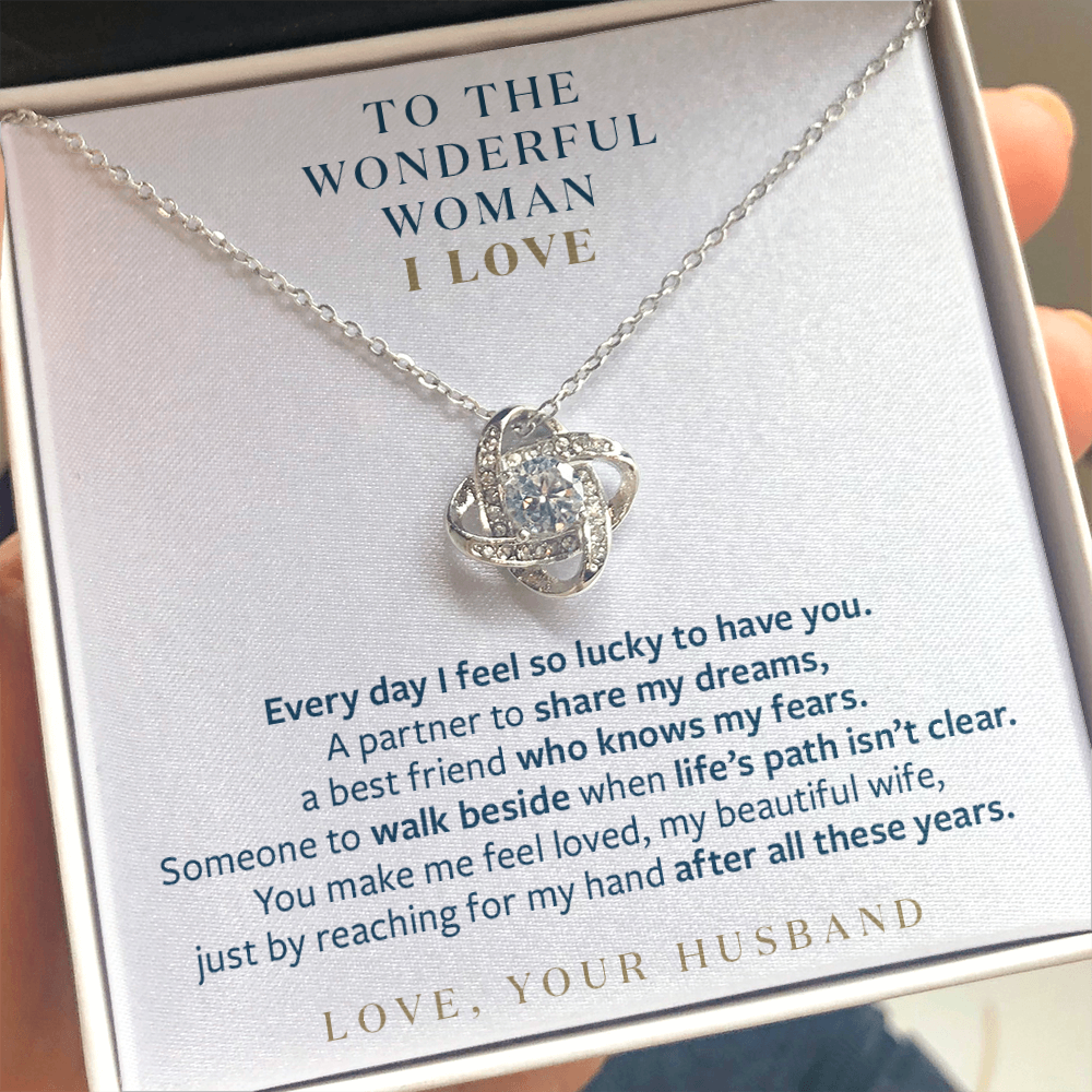 Wonderful Woman I Love - You Still Reach for My Hand - Gift for Wife Message Card Necklace