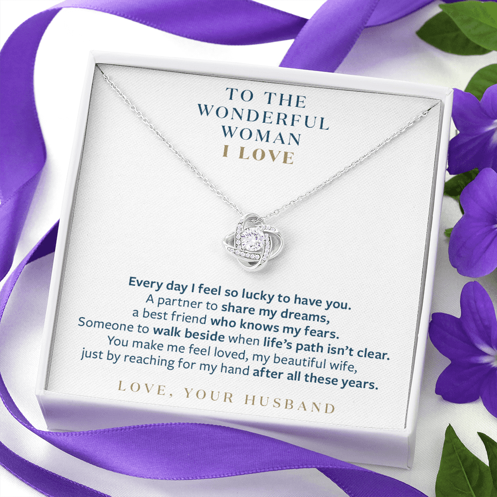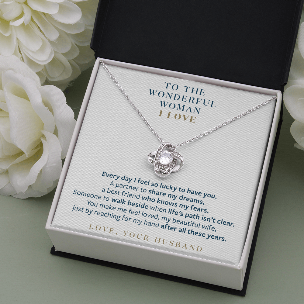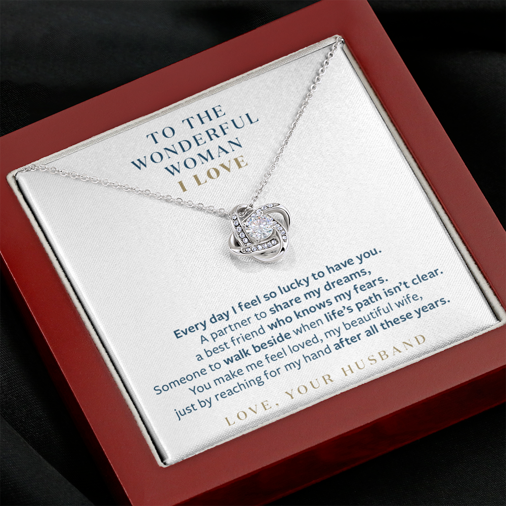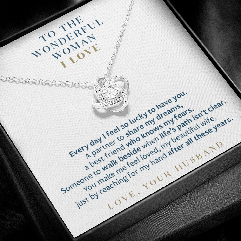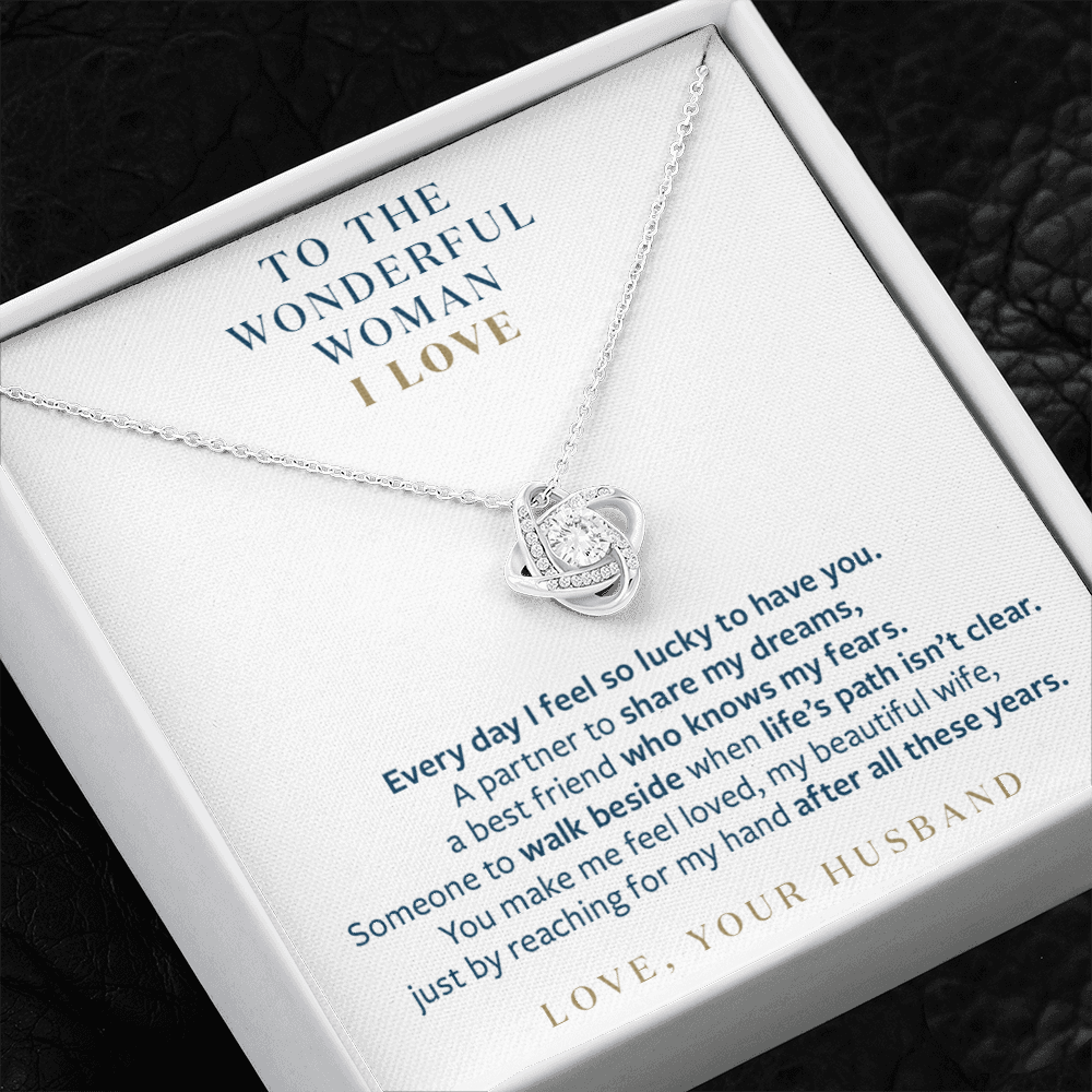 Wonderful Woman I Love - You Still Reach for My Hand - Gift for Wife Message Card Necklace