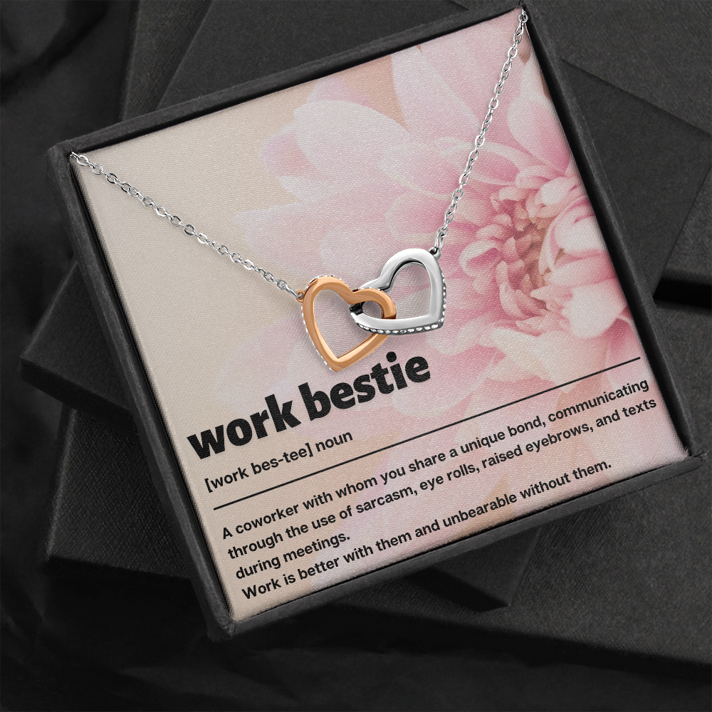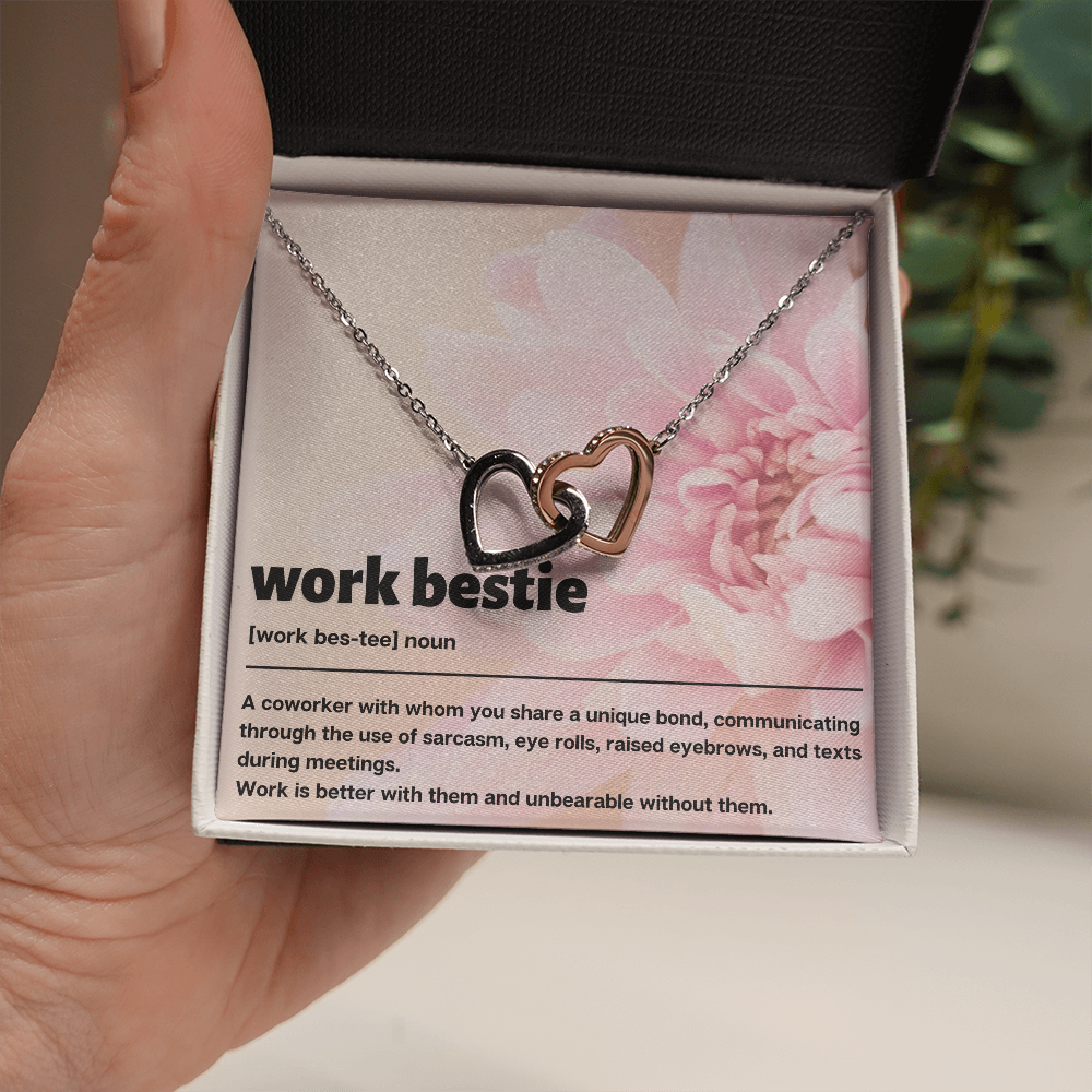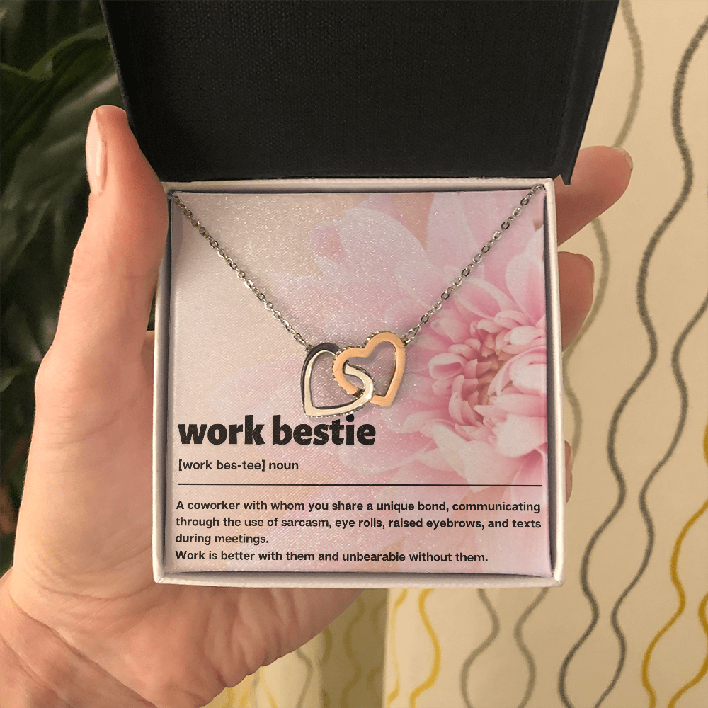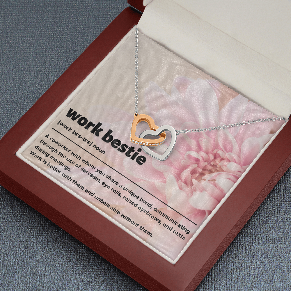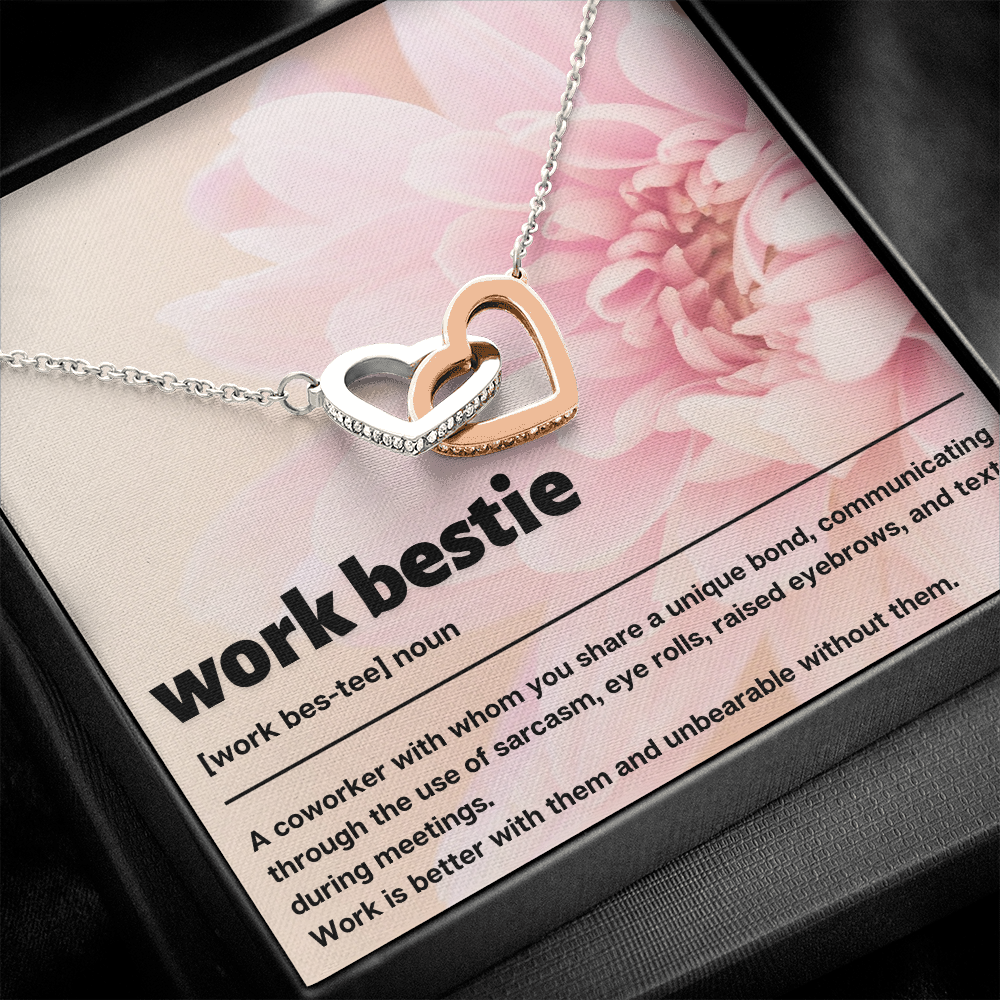 Two hearts embellished with Cubic Zirconia stones, interlocked together as a symbol of never-ending love. Made with high quality polished surgical steel. Cable chain measures 18 inches with a 4 inch extension, and fastens with a lobster clasp.
