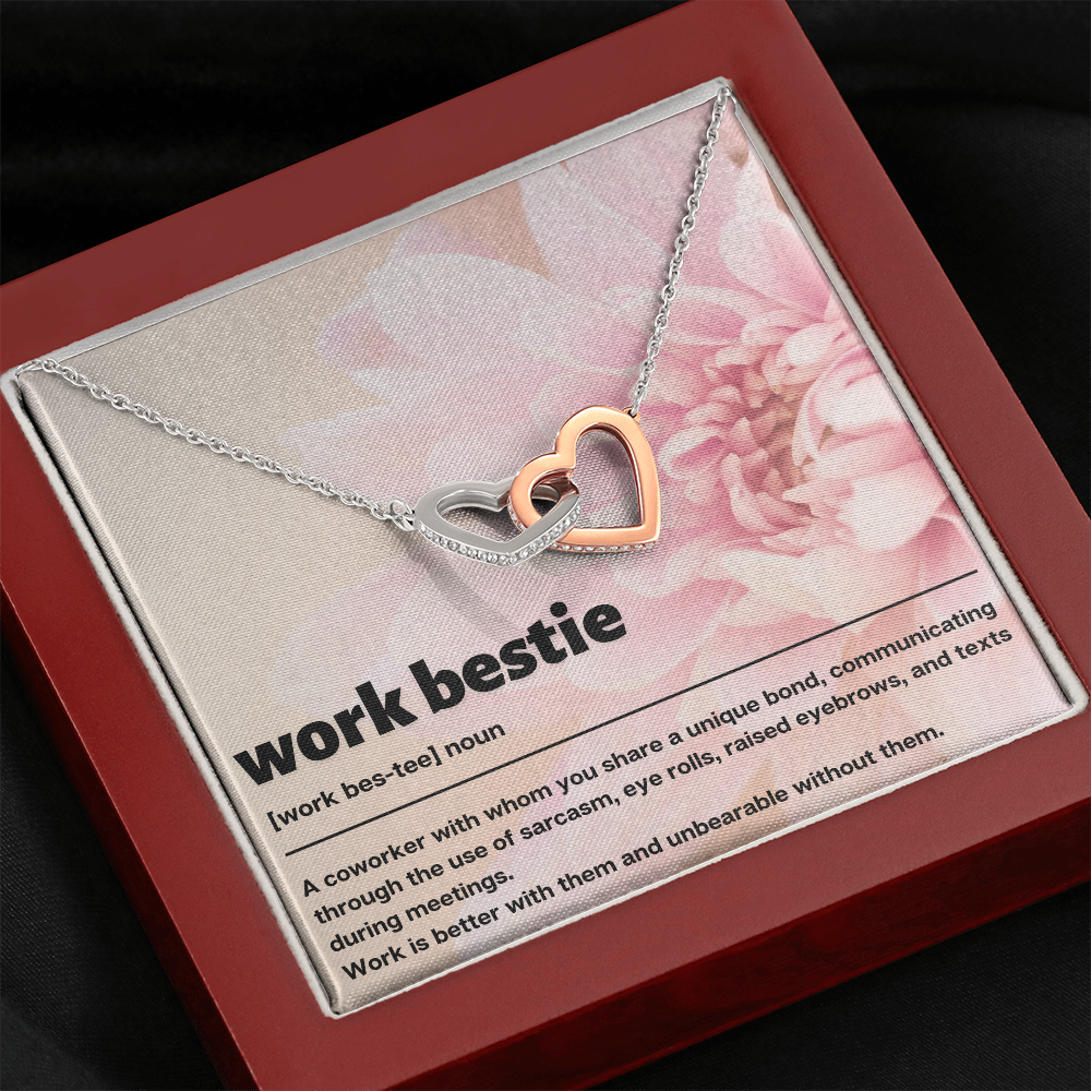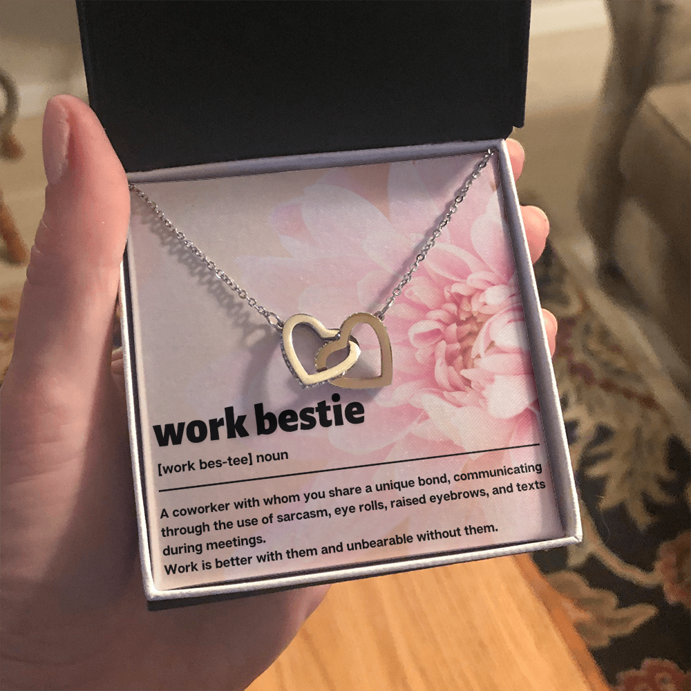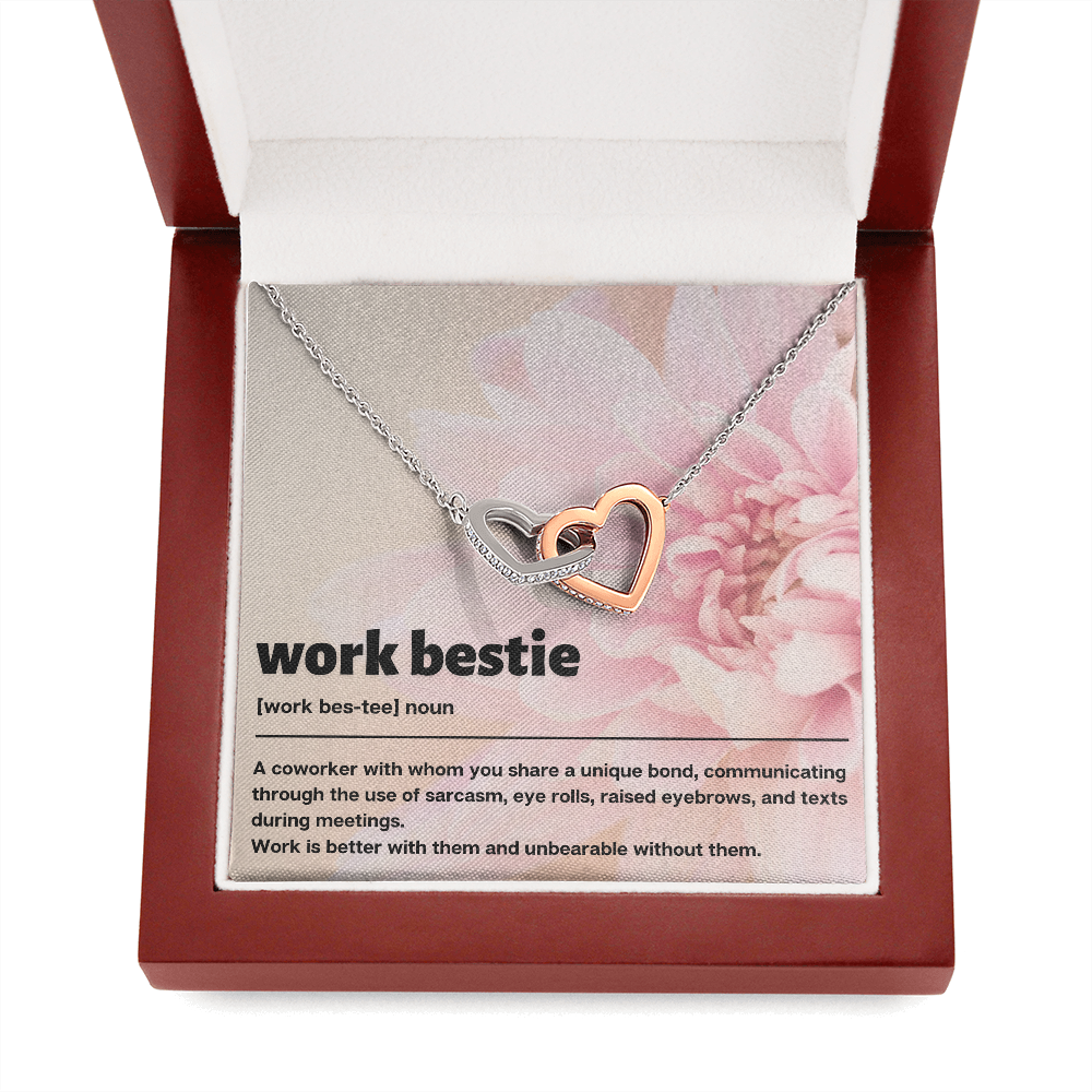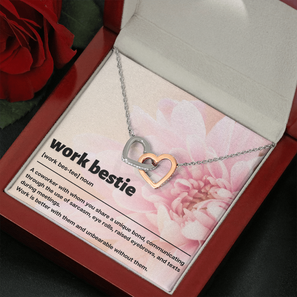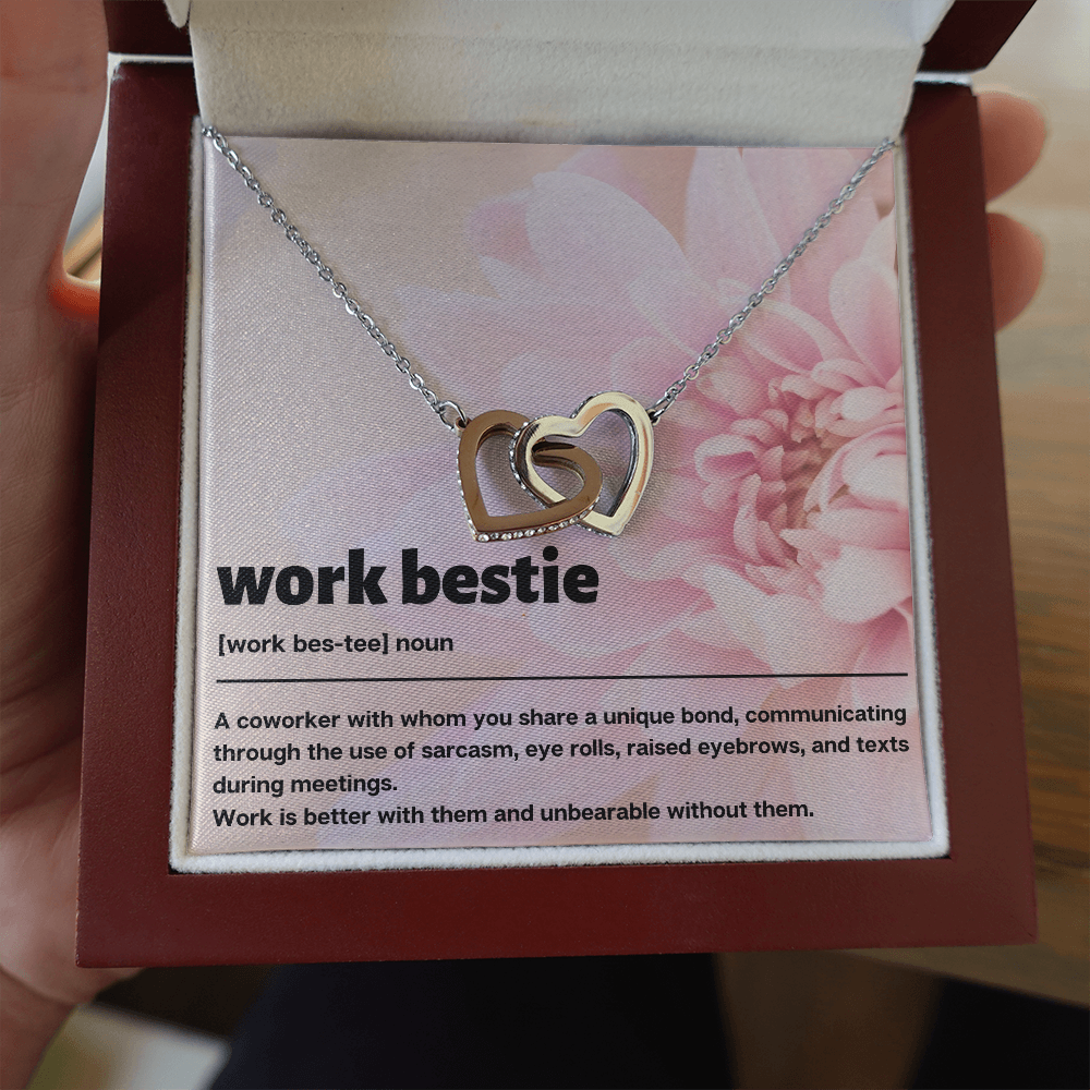 Two hearts embellished with Cubic Zirconia stones, interlocked together as a symbol of never-ending love. Made with high quality polished surgical steel. Cable chain measures 18 inches with a 4 inch extension, and fastens with a lobster clasp.