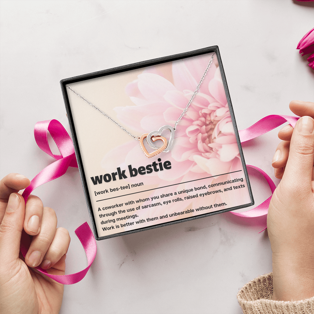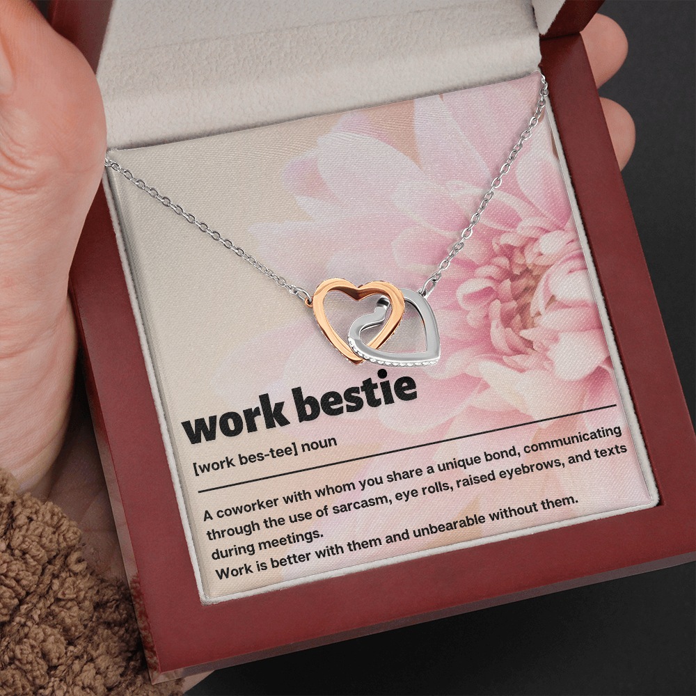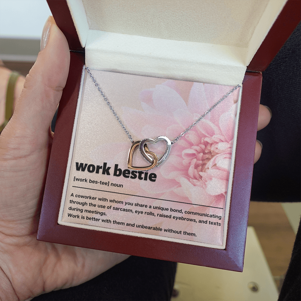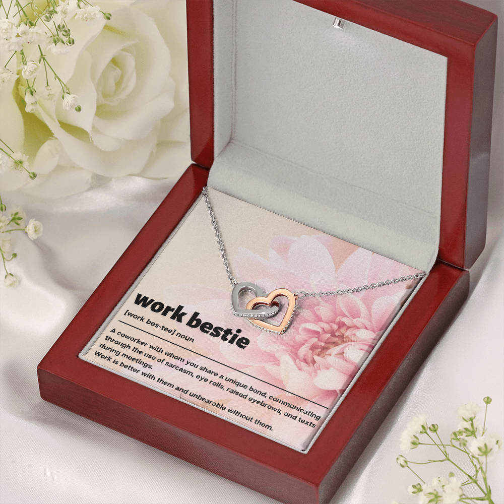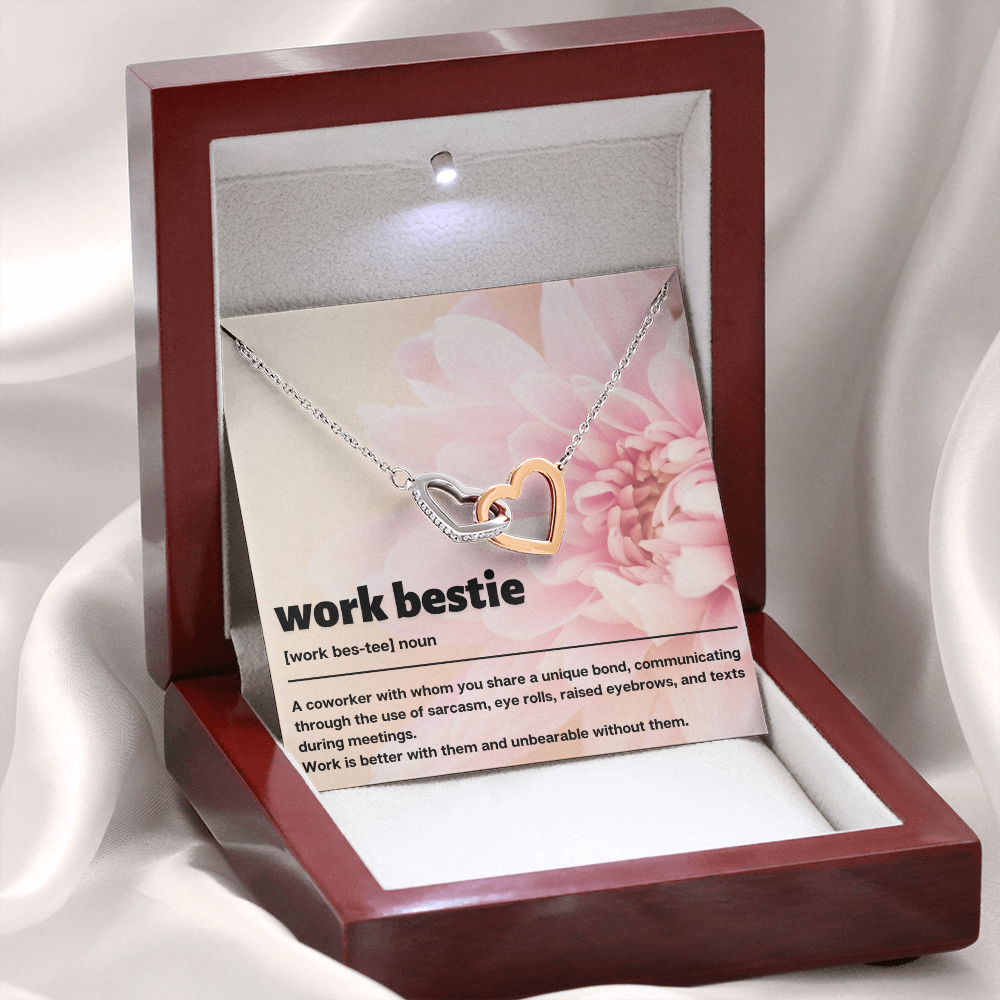 Two hearts embellished with Cubic Zirconia stones, interlocked together as a symbol of never-ending love. Made with high quality polished surgical steel. Cable chain measures 18 inches with a 4 inch extension, and fastens with a lobster clasp.