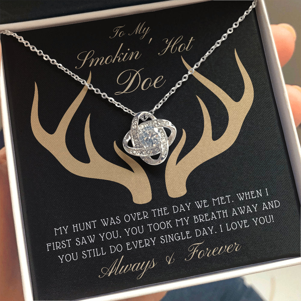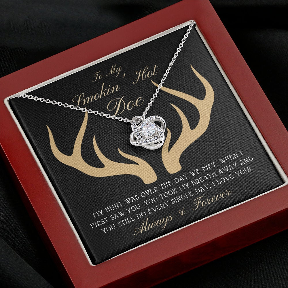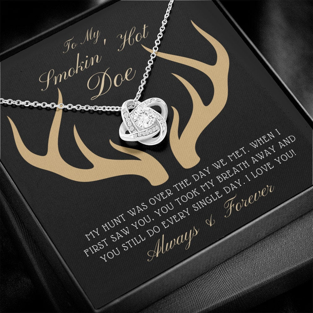 The Love Knot Necklace represents an unbreakable bond between two souls. This symbol of eternal love is a forever favorite and trending everywhere. Surprise your loved one with this gorgeous gift today! The beautiful Love Knot is crafted with brilliant 14k white gold over stainless steel, and swings from an adjustable cable chain, fastened securely with a lobster clasp. The center cubic zirconia crystal measures 6mm in diameter, and is surrounded with smaller cubic zirconia, showcasing added sparkle and shine to this gorgeous gift. You must see it for yourself! Specifications: • 14k white gold over stainless steel • 6mm round cut cubic zirconia stone • 18"-22" adjustable cable chain necklace • Lobster clasp attachment