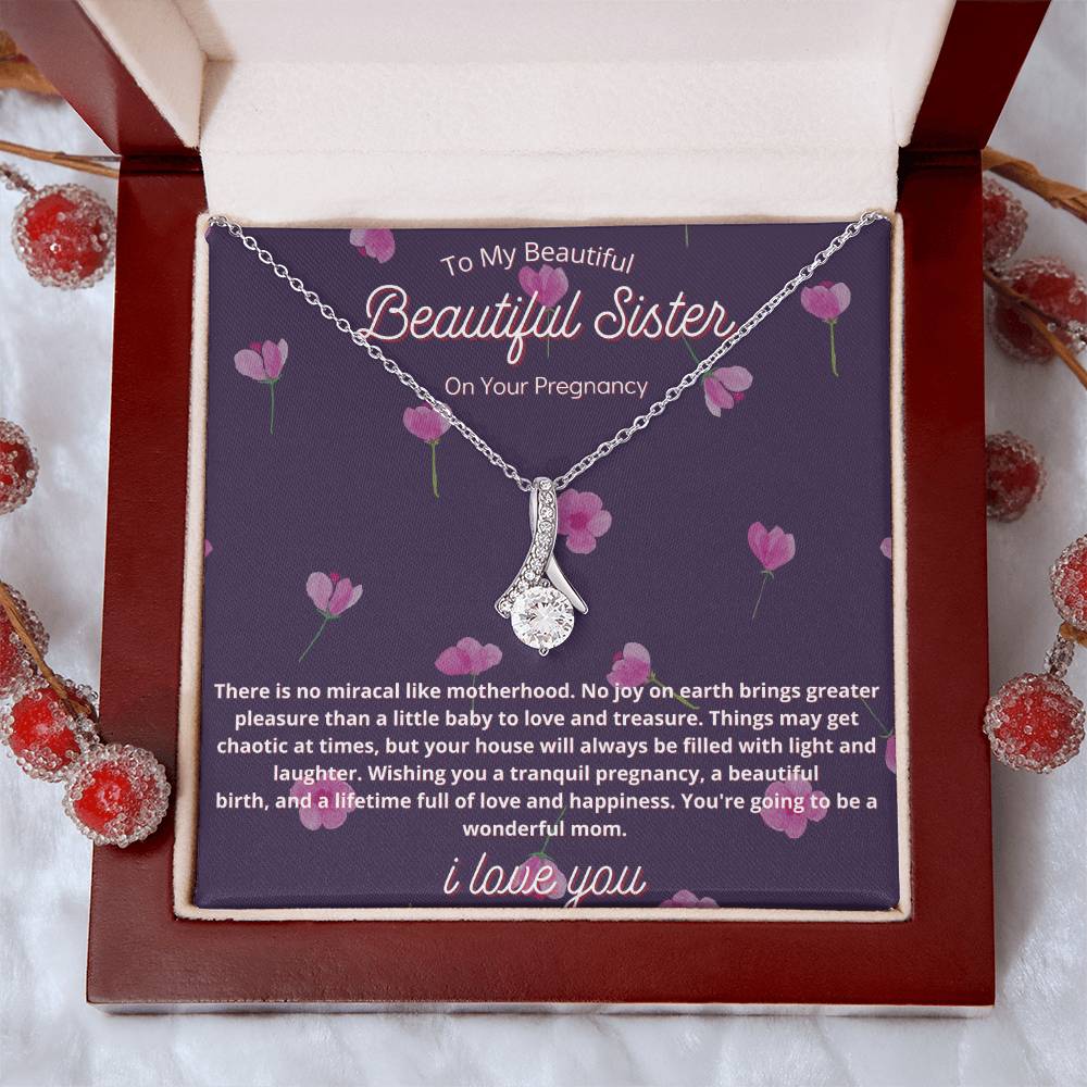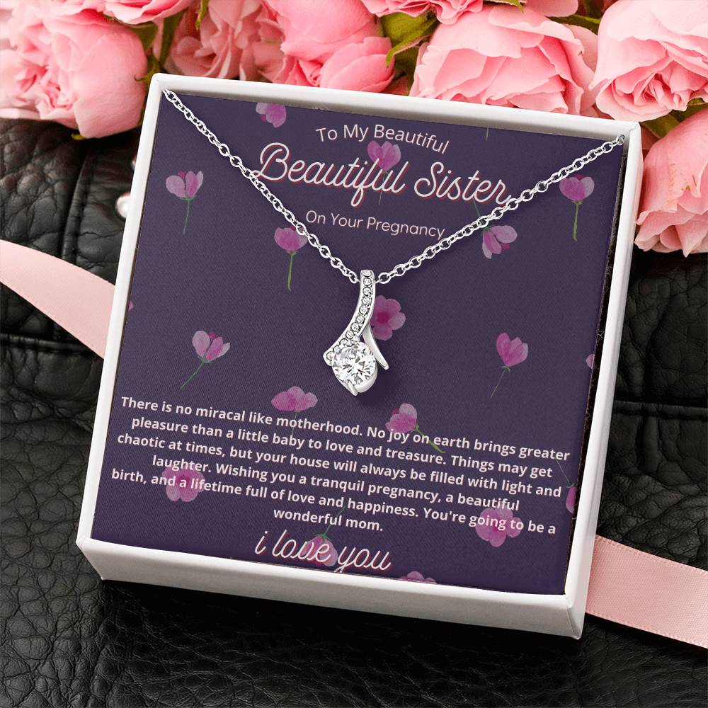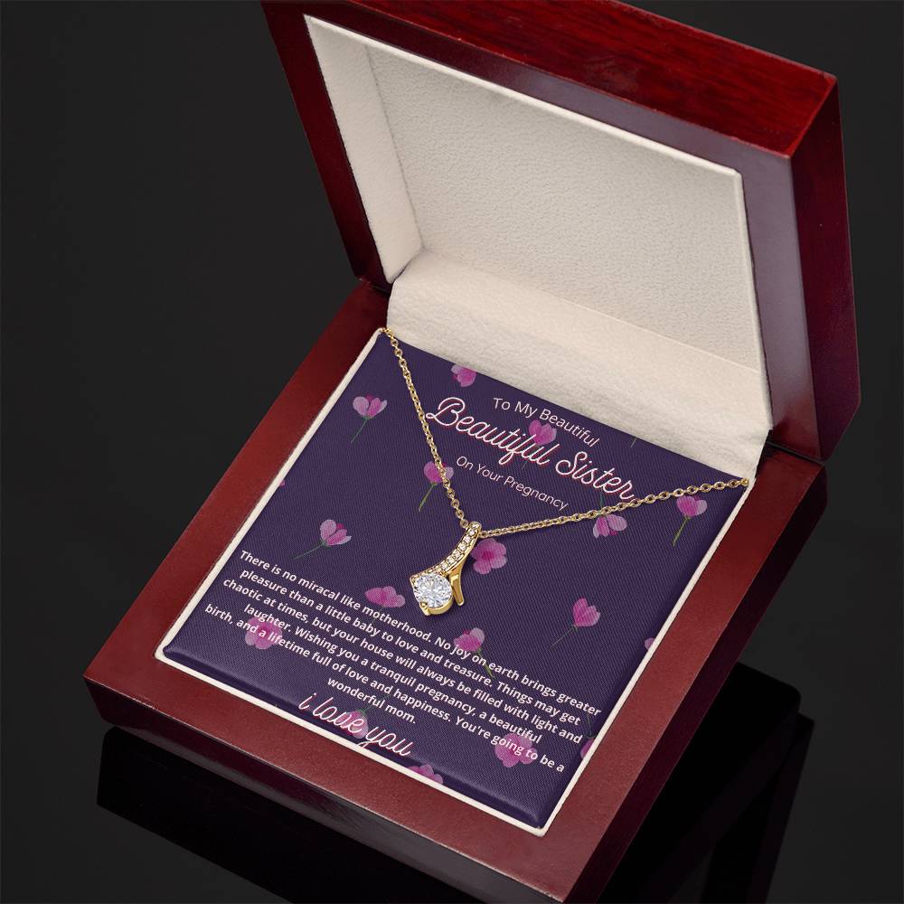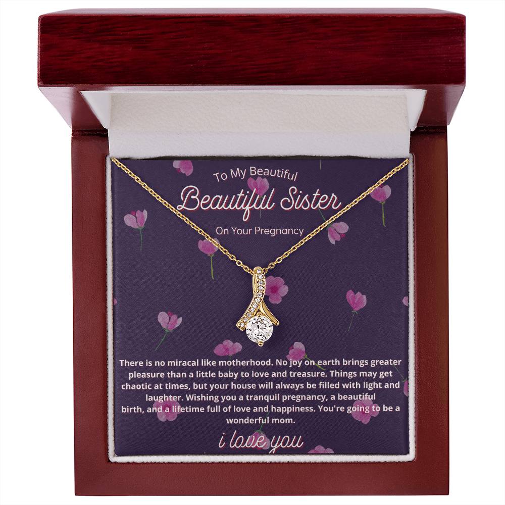 Miracle of Motherhood Sister Pregnancy Necklace 18K Yellow Gold Finish Alluring Beauty Jewelry Floral Gift for Beautiful Mom-To-Be