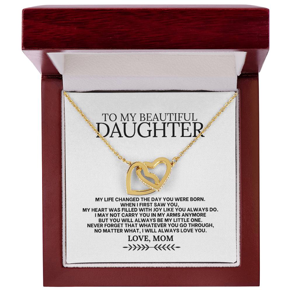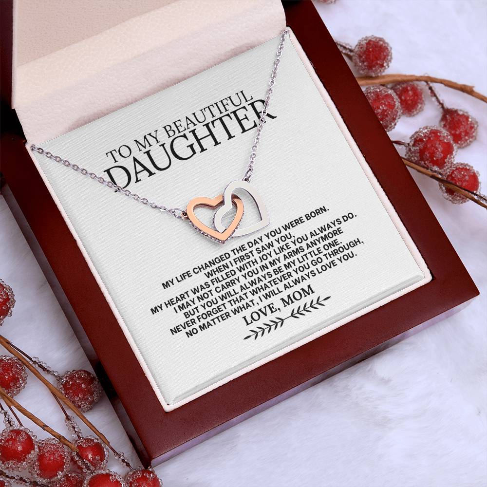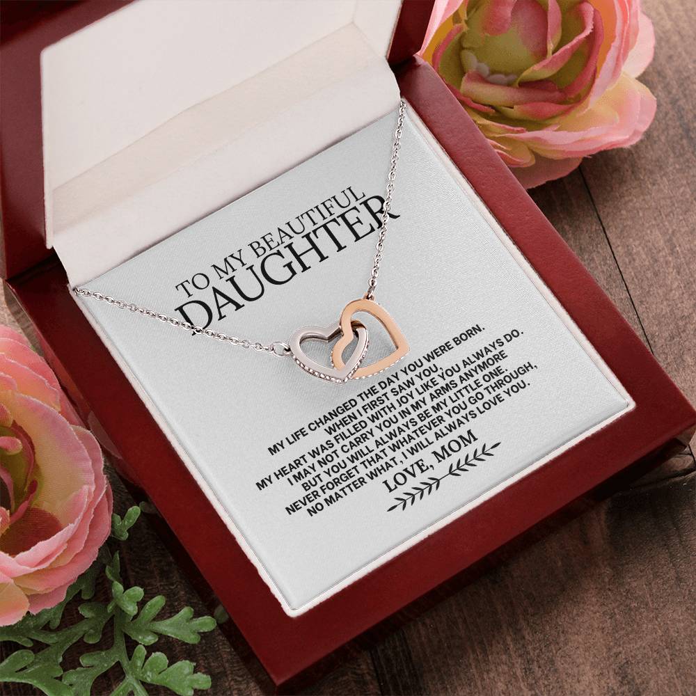 My Life Changed The Day You Were Born 18K Rose Gold Interlocking Hearts Necklace Jewelry – Beautiful Birthday Gift for Daughter from Mom