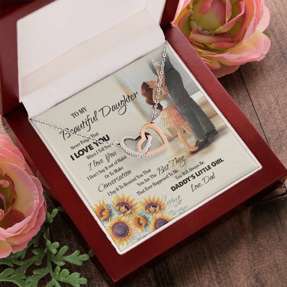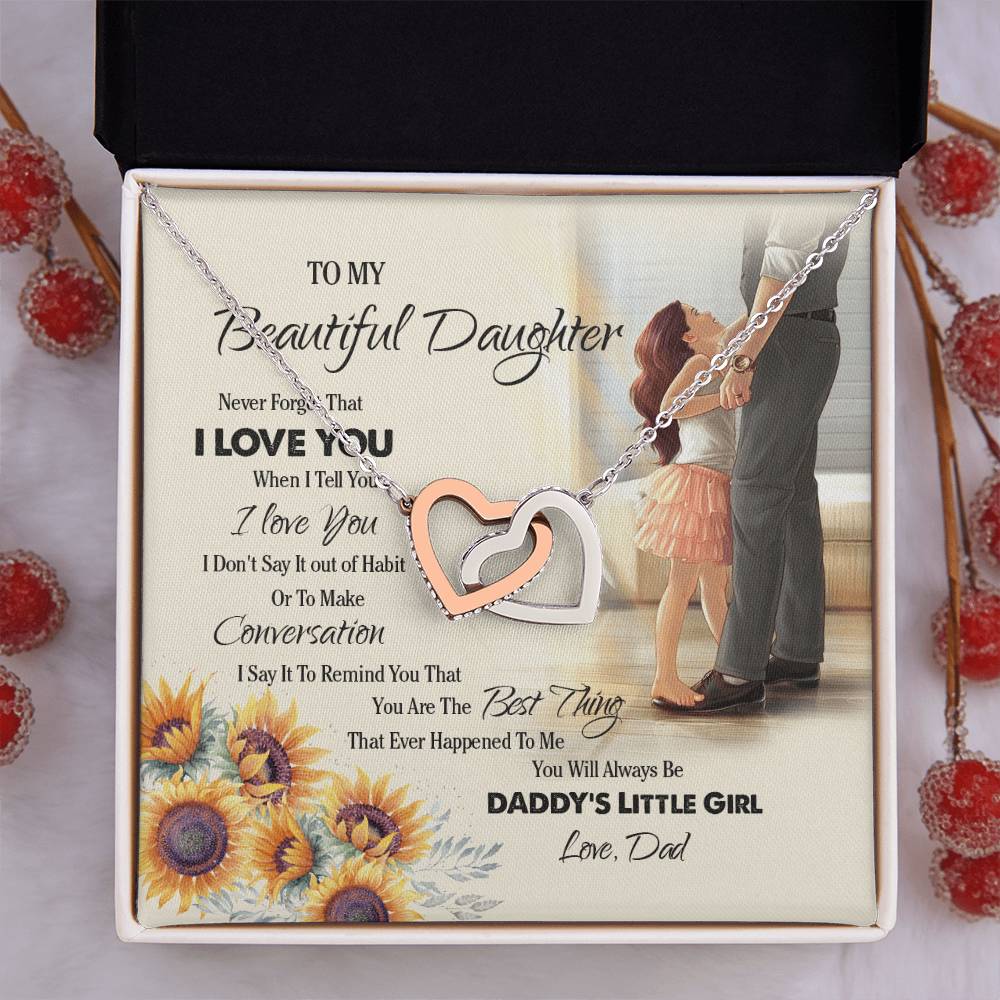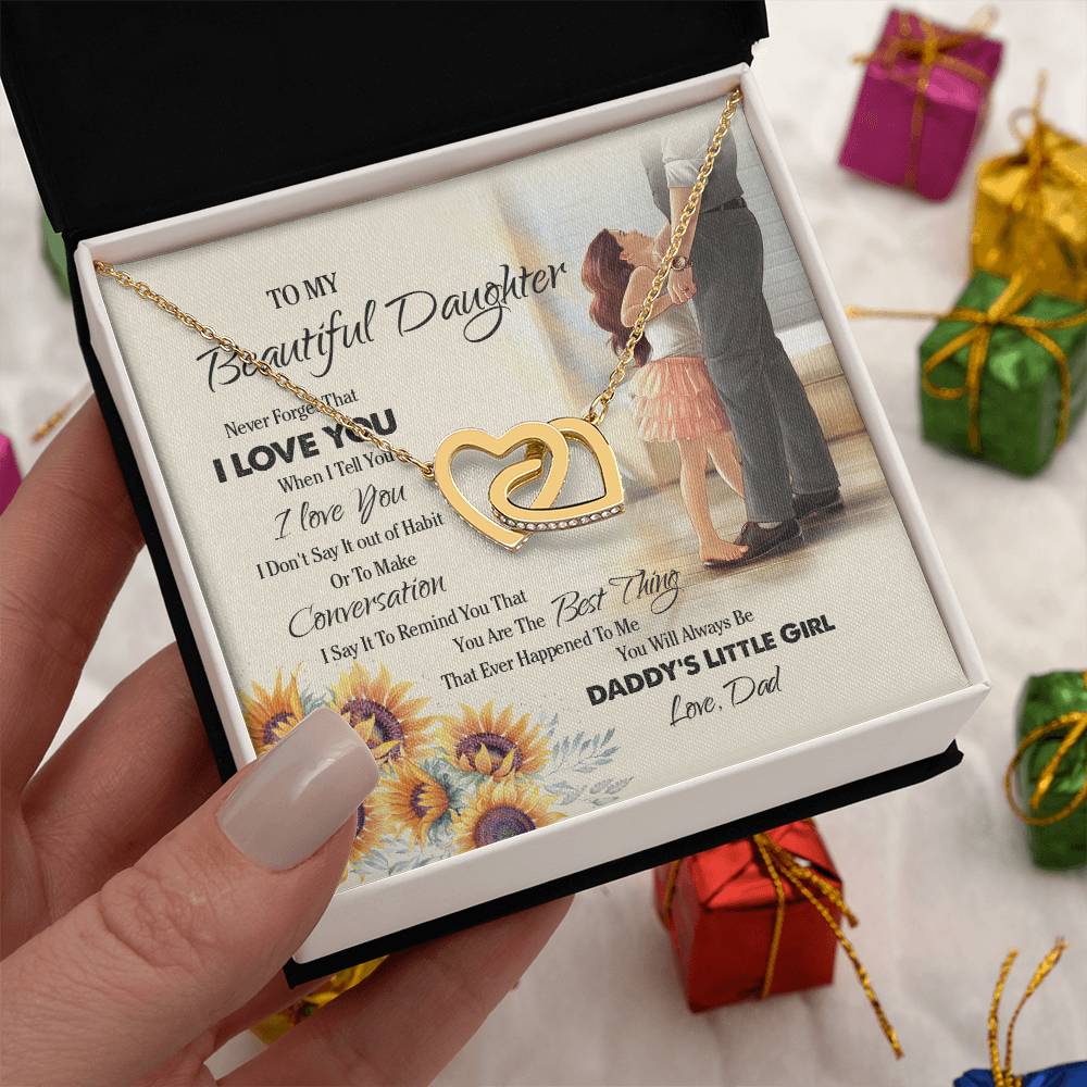 Never Forget That I Love You Every Day 18K Rose Gold Interlocking Hearts Necklace Jewelry Special Gift for Daughter Birthday from Dad