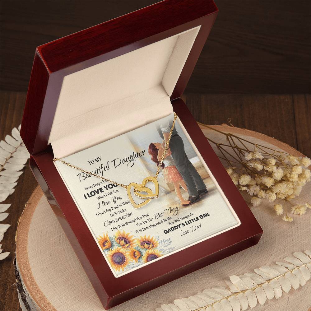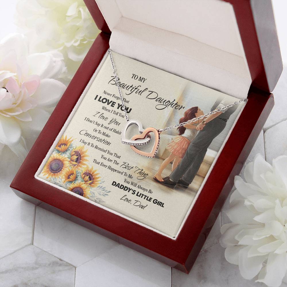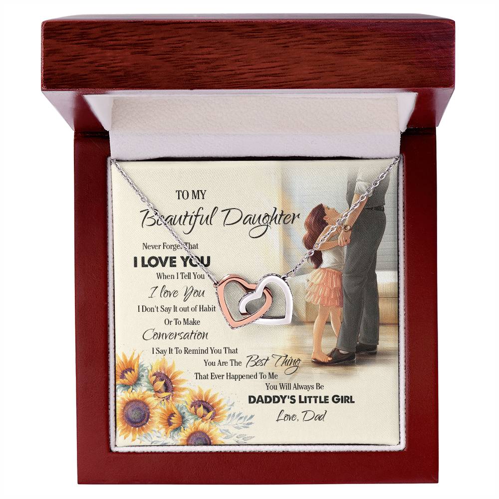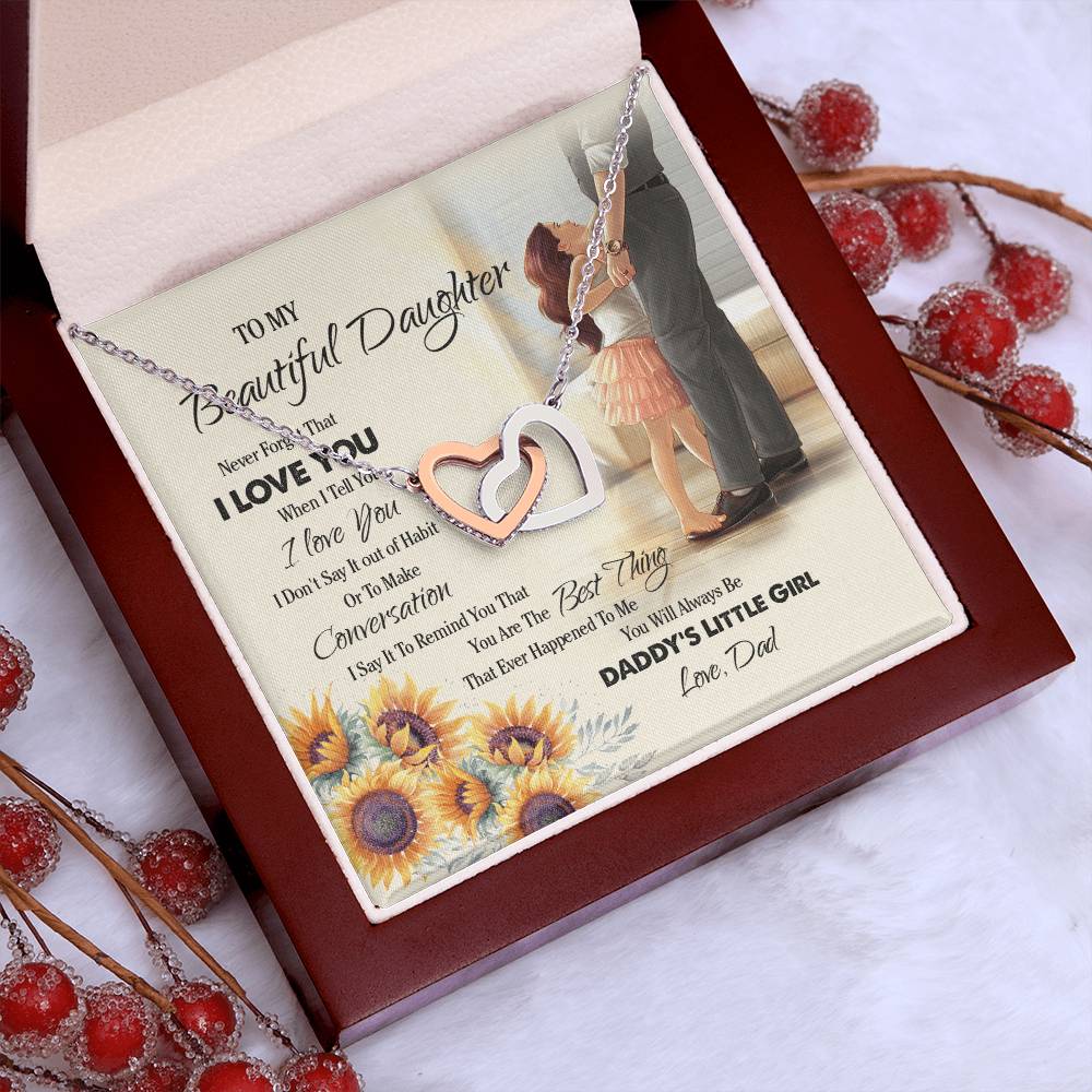 Never Forget That I Love You Every Day 18K Rose Gold Interlocking Hearts Necklace Jewelry Special Gift for Daughter Birthday from Dad