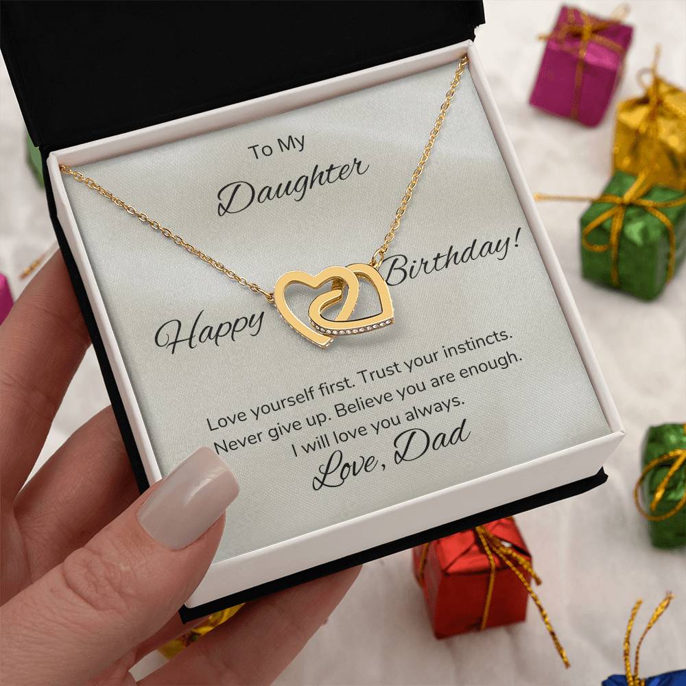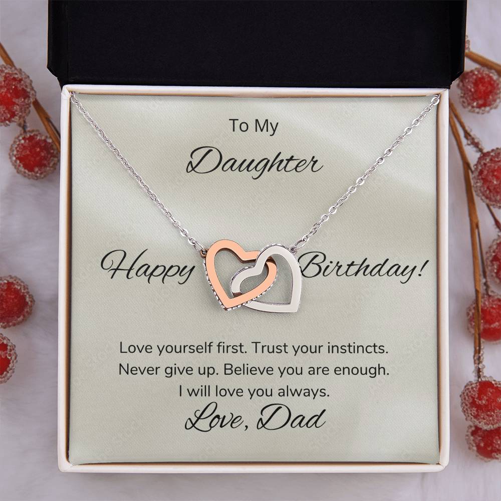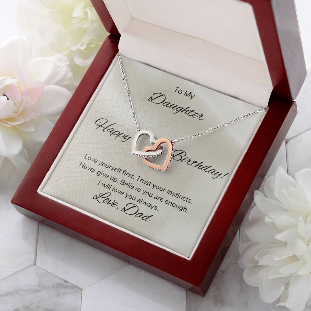 Never Give Up Believe You Are Enough 18K Rose Gold Interlocking Hearts Necklace Jewelry – Beautiful Birthday Gift for Daughter from Dad