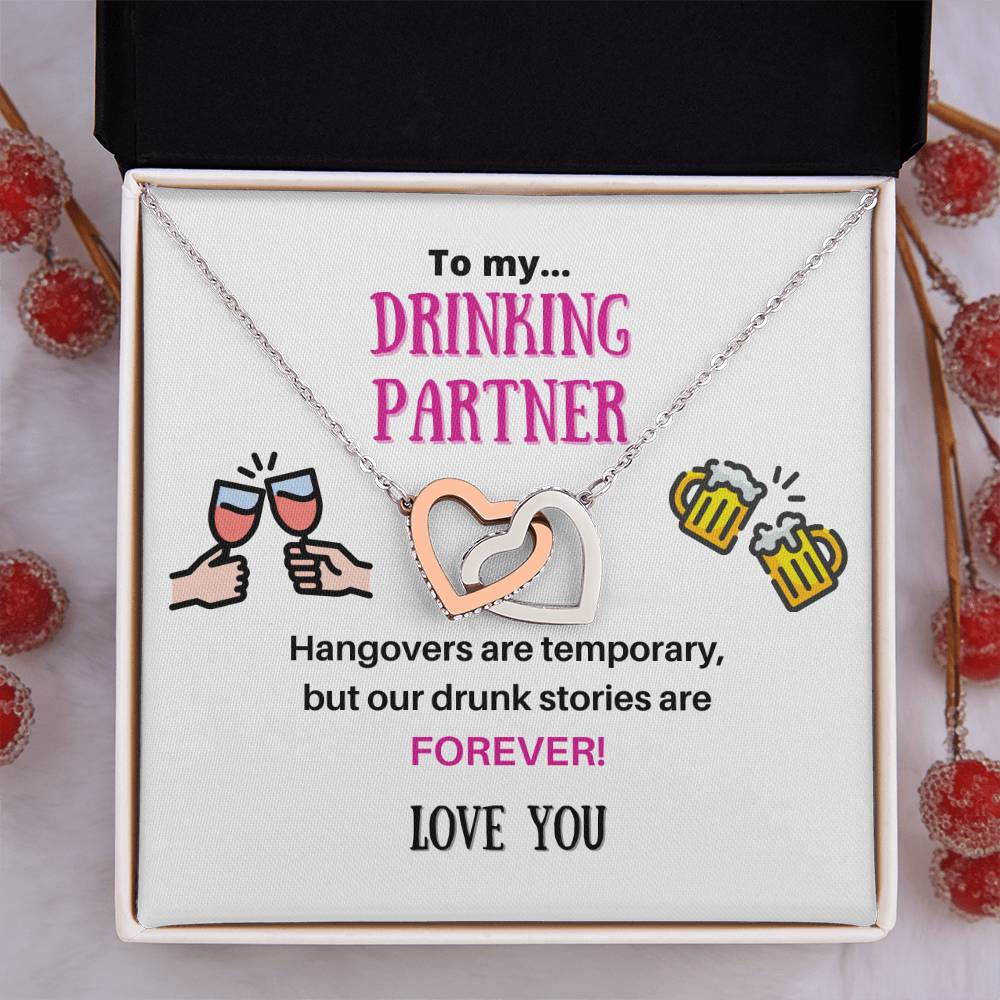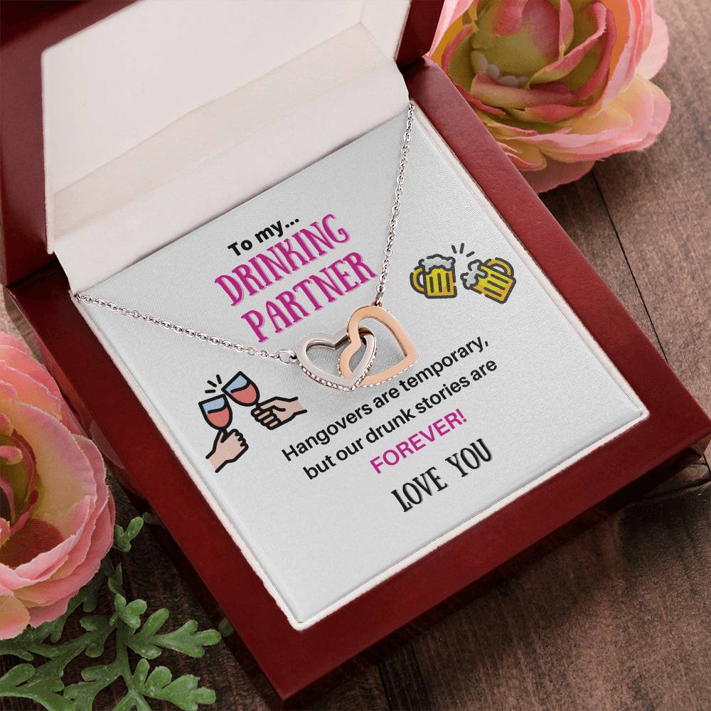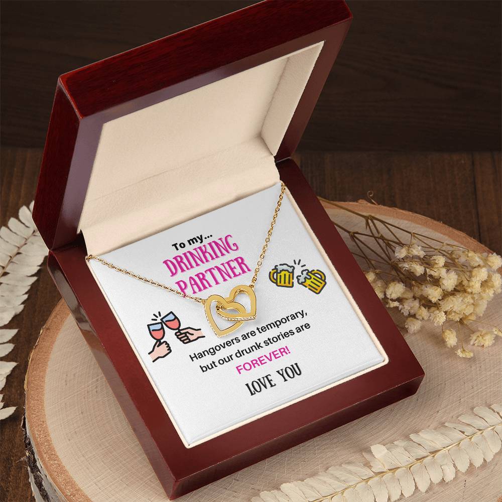 Our Drunk Stories Are Forever 18K Rose Gold Interlocking Hearts Necklace Jewelry – Fun Gift for Drinking Partner