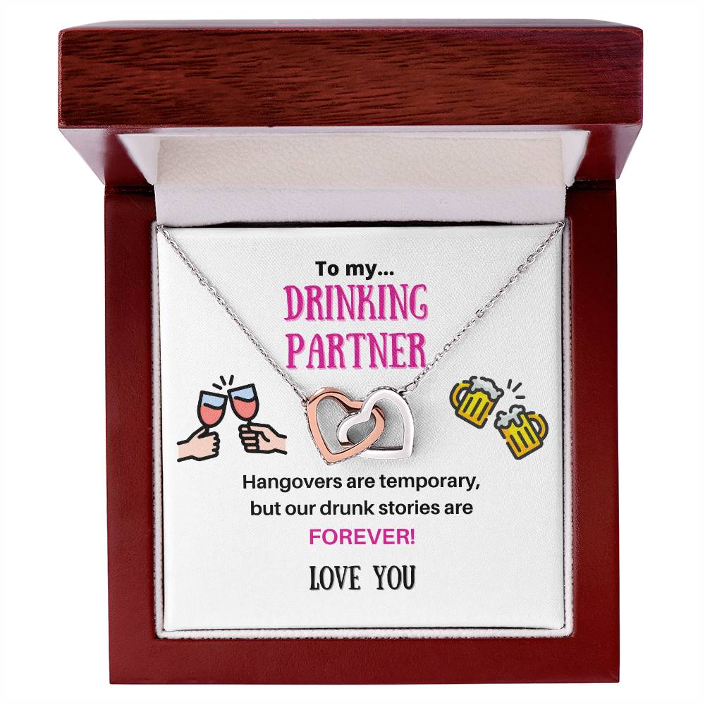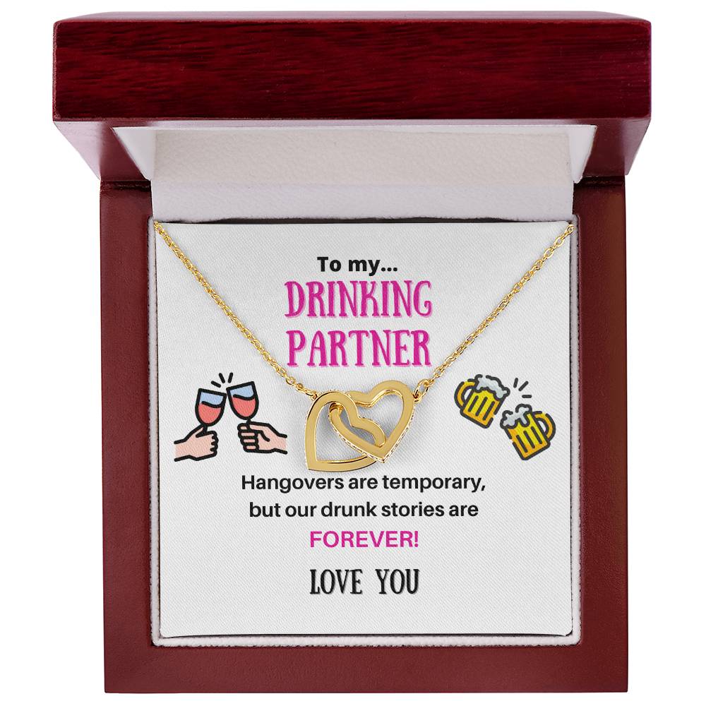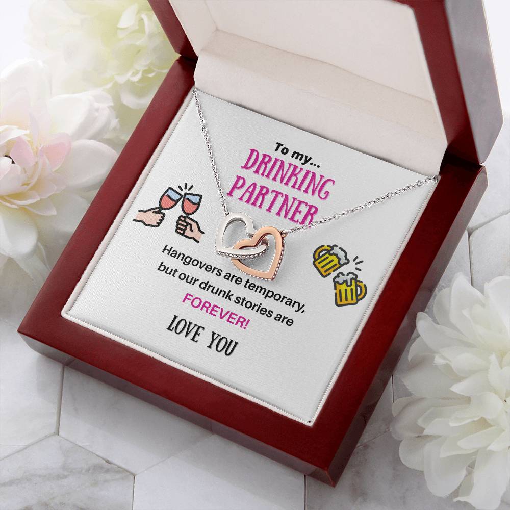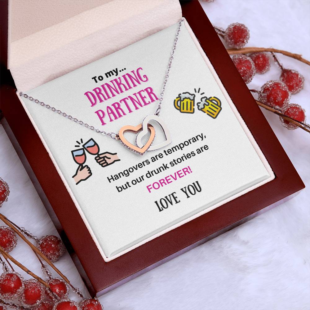 Our Drunk Stories Are Forever 18K Rose Gold Interlocking Hearts Necklace Jewelry – Fun Gift for Drinking Partner