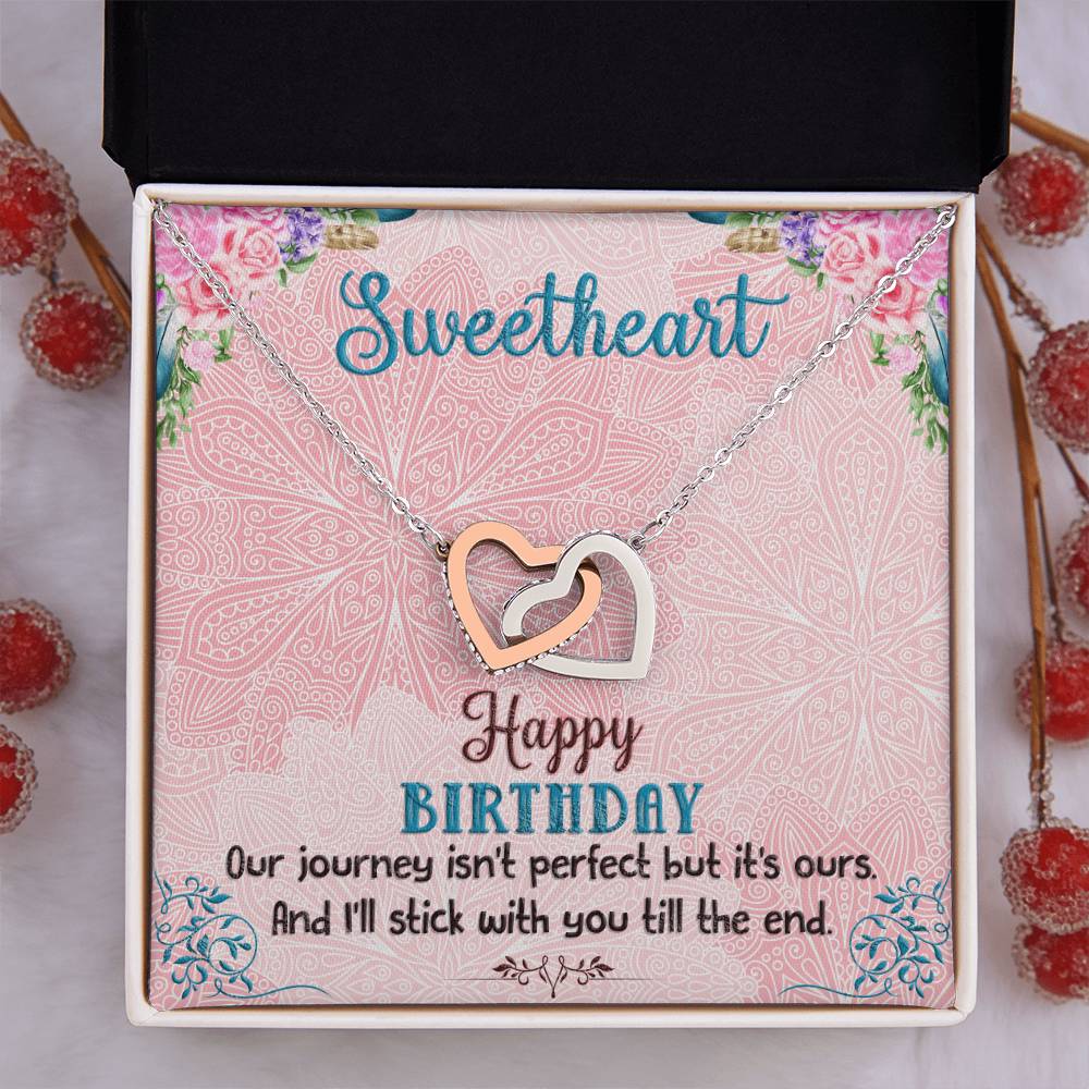 Our Journey Is Ours to Cherish 18K Rose Gold Interlocking Hearts Necklace Jewelry Romantic Gift for Sweetheart Birthday from Your Love