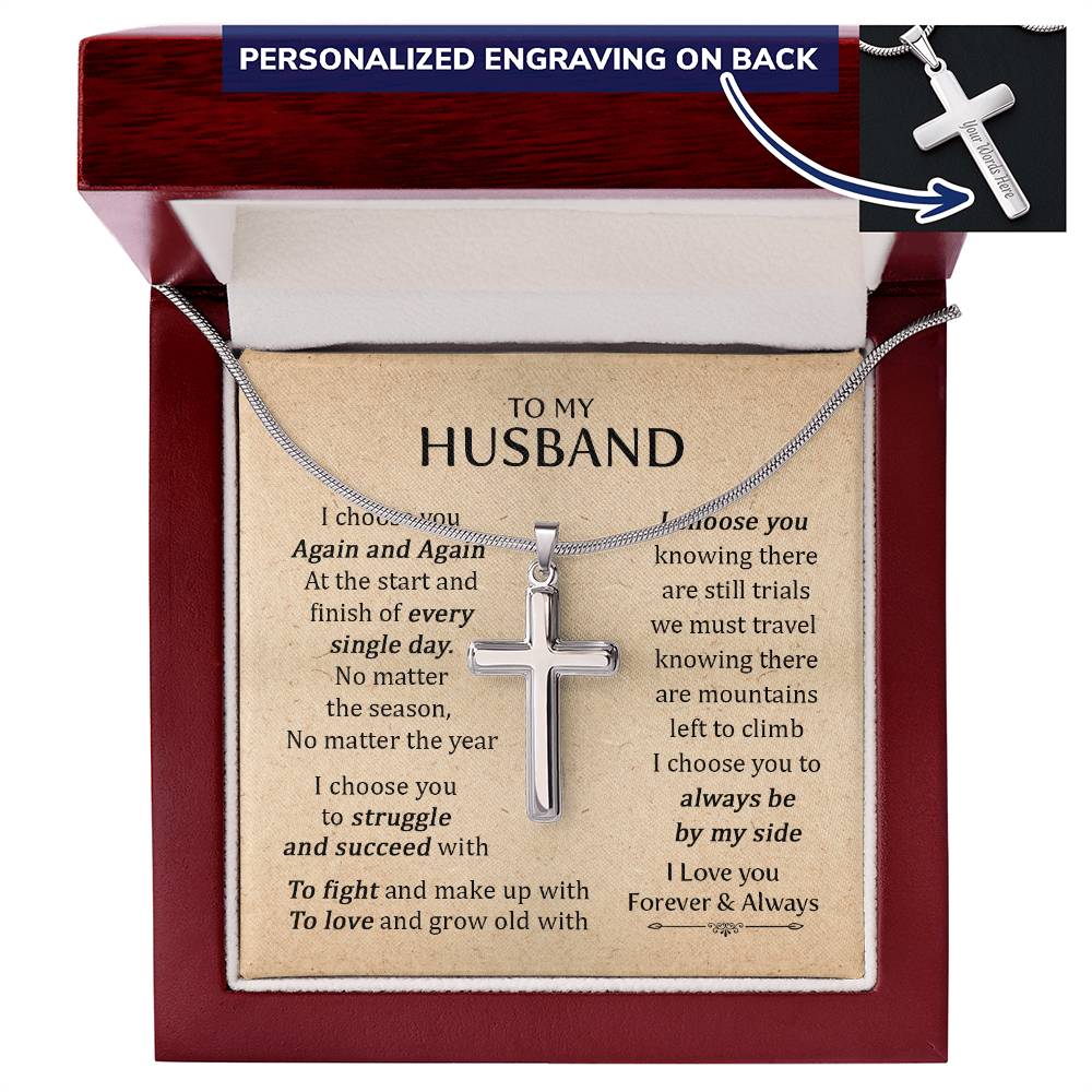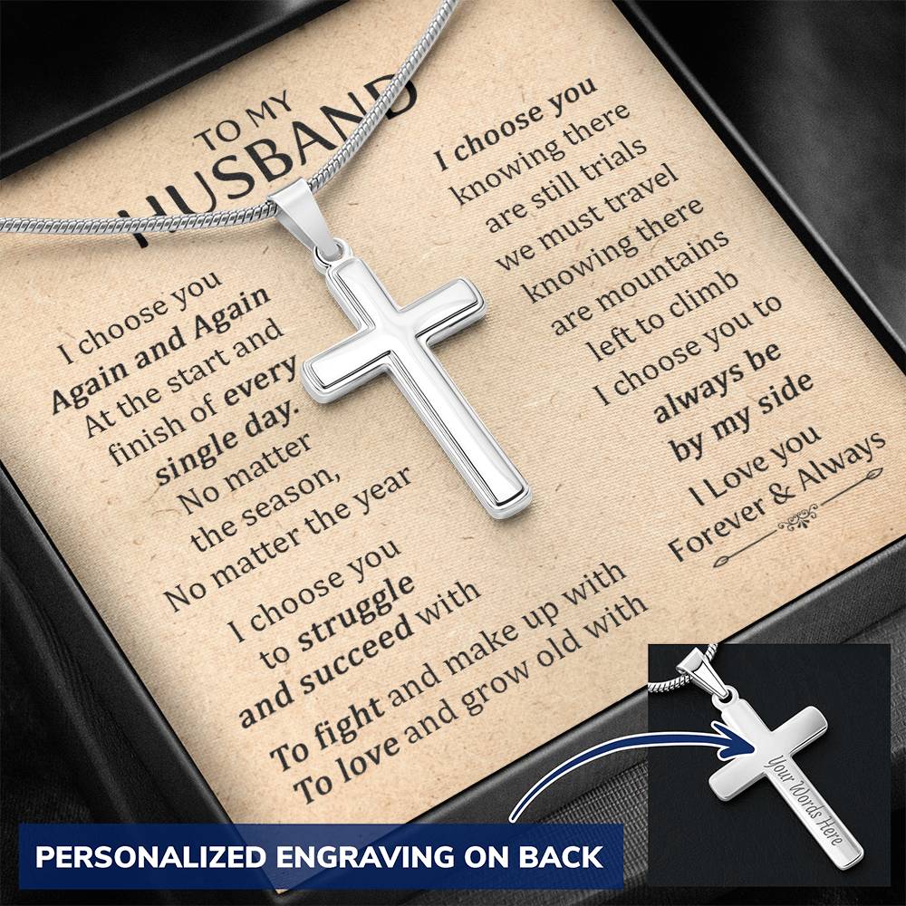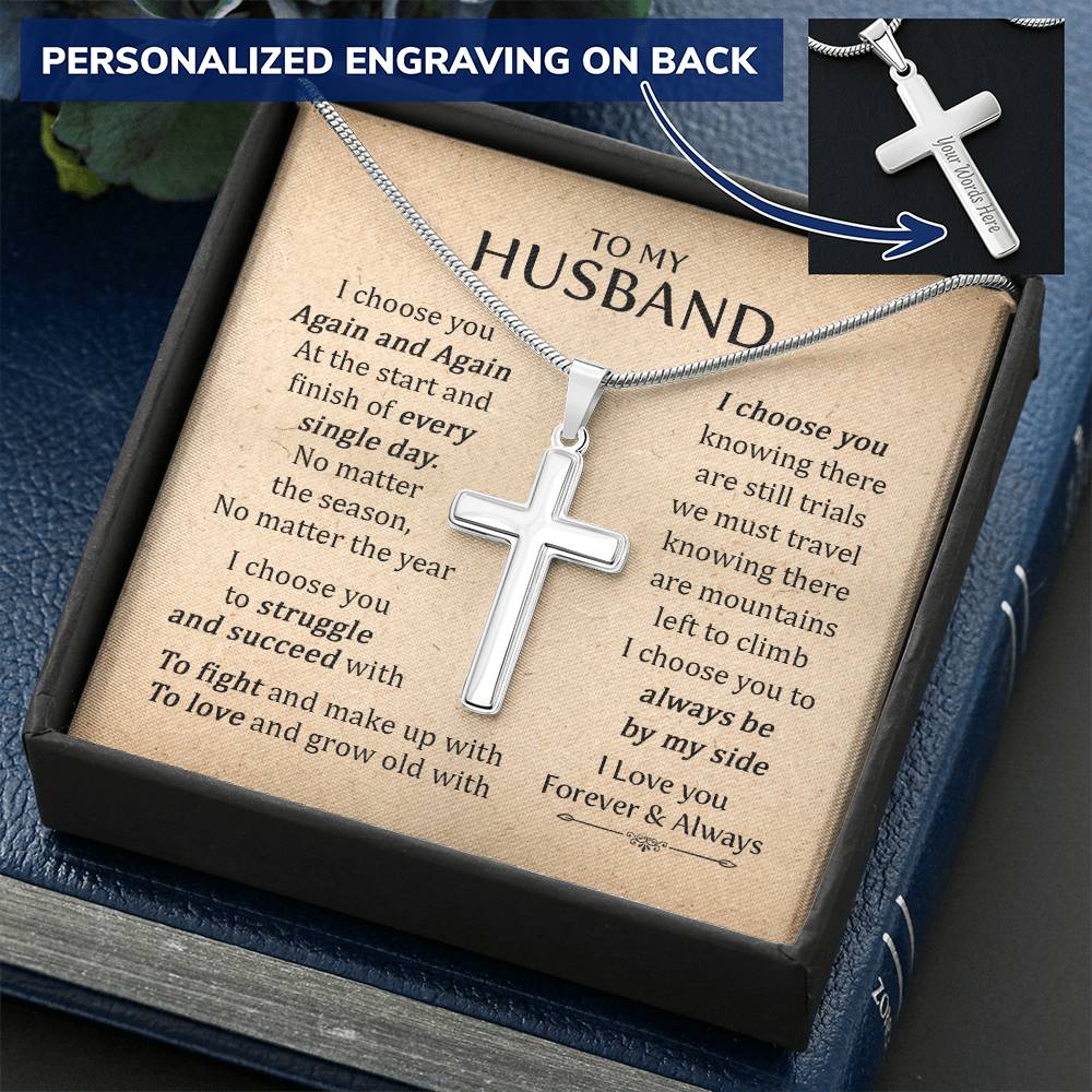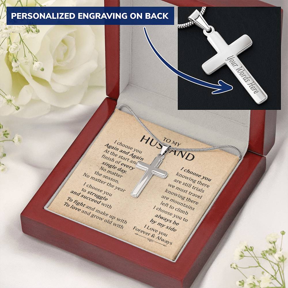 Show your beloved husband how much he means to you with this Personalized Cross Necklace for Husband. This custom engraved cross necklace makes the perfect anniversary gift or romantic present for the faithful man in your life.