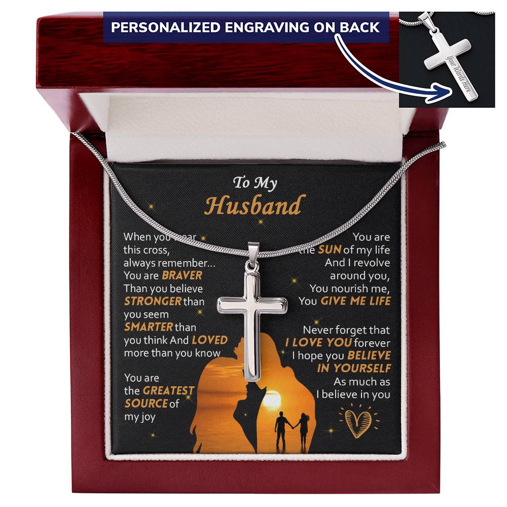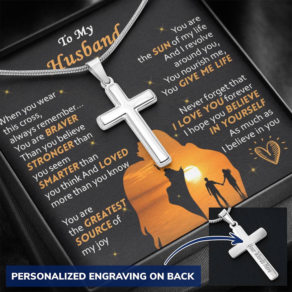 Show your beloved husband how much he means to you with this Personalized Cross Necklace for Husband. This custom engraved cross necklace makes the perfect anniversary gift or romantic present for the faithful man in your life.