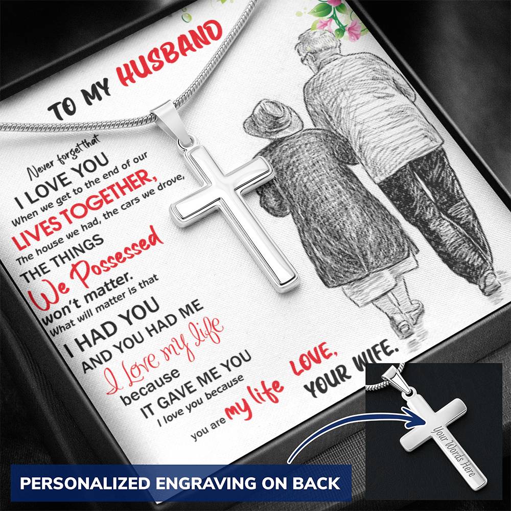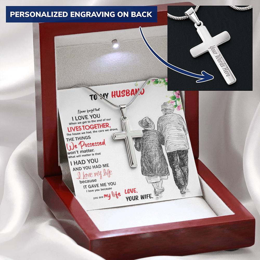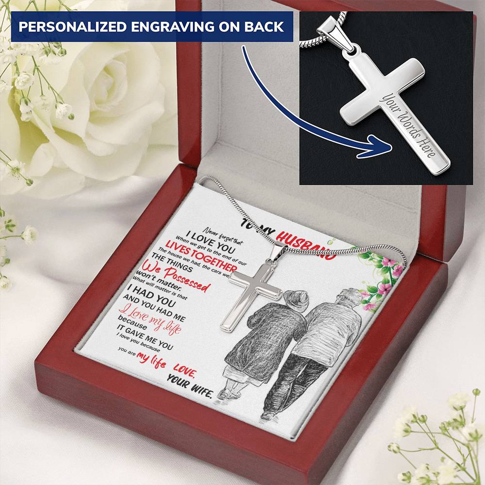 Personalized End of Our Lives Together What Will Matter Is I Had You Stainless Steel Cross Necklace Engraved Perfect Anniversary Gift for Husband