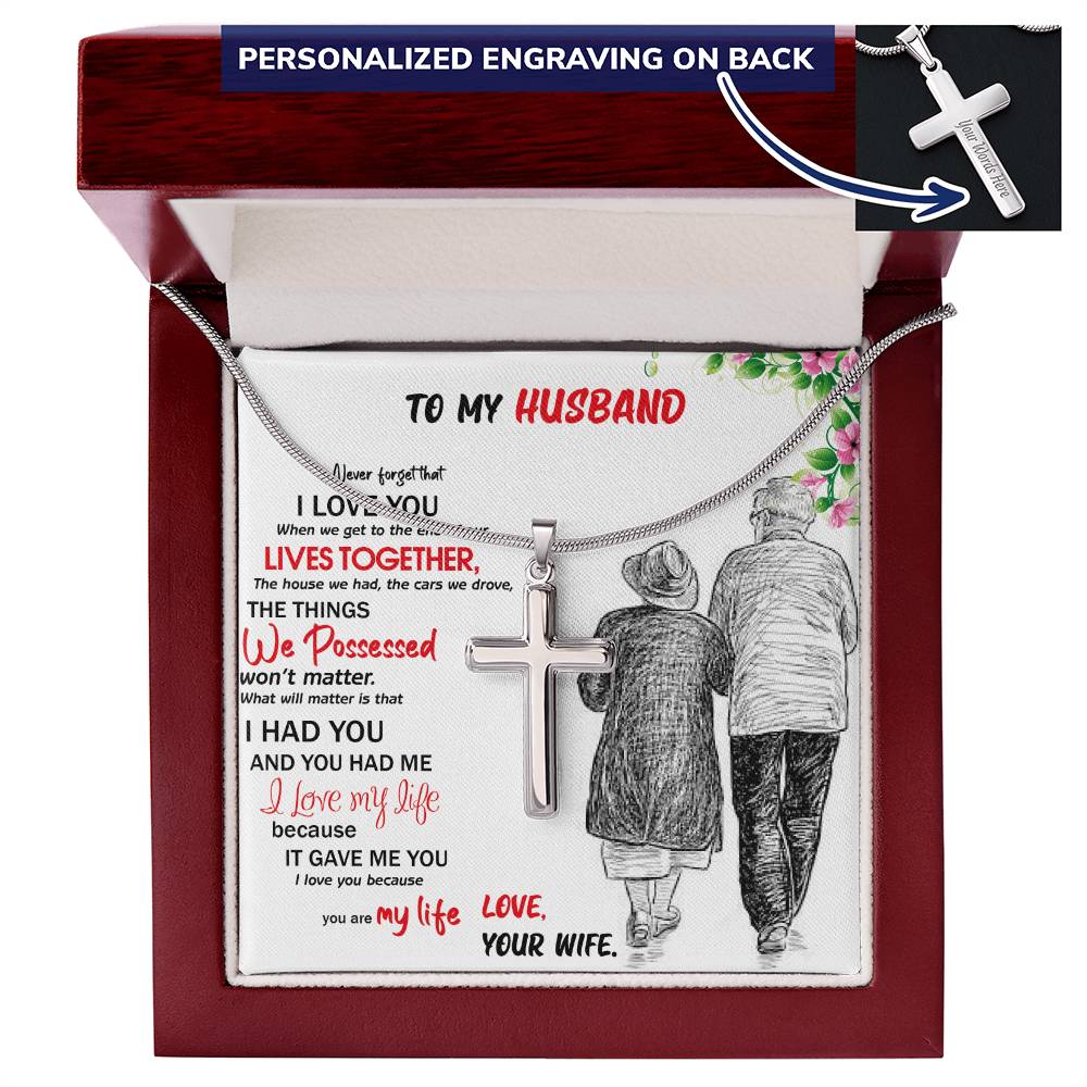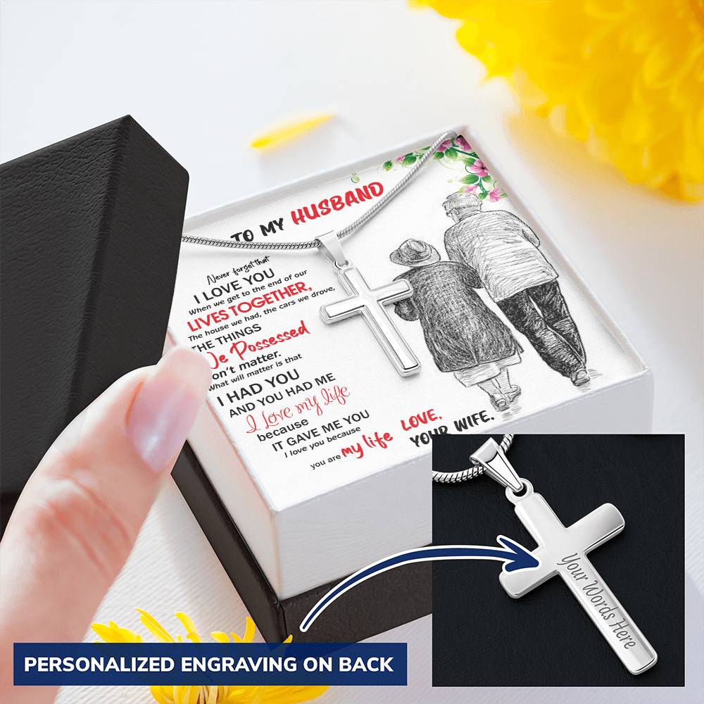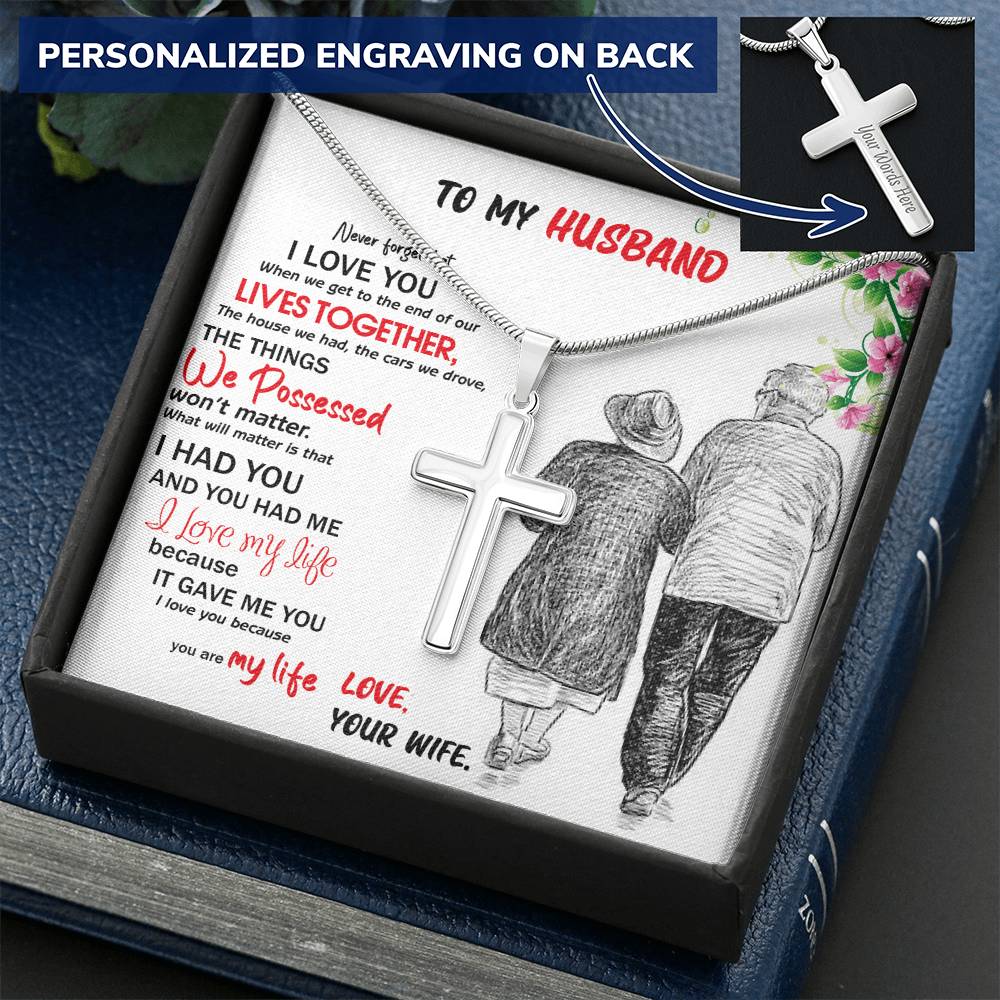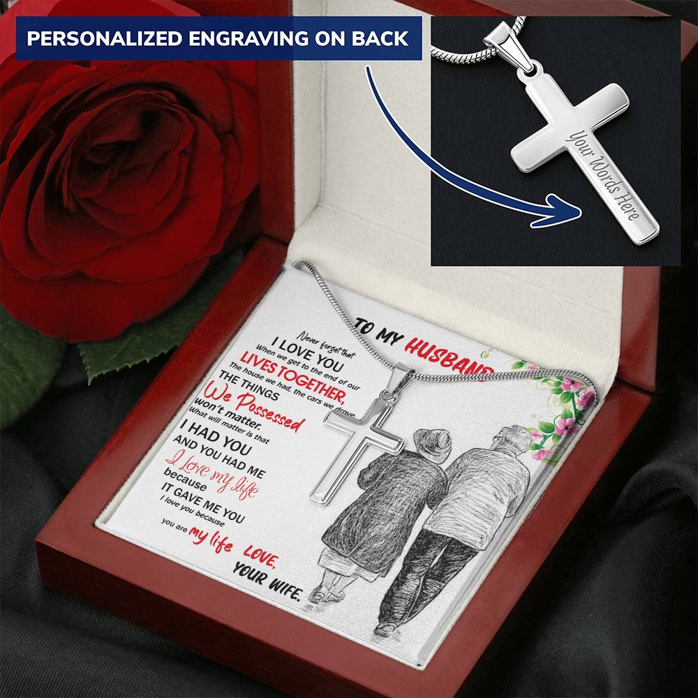 Personalized End of Our Lives Together What Will Matter Is I Had You Stainless Steel Cross Necklace Engraved Perfect Anniversary Gift for Husband
