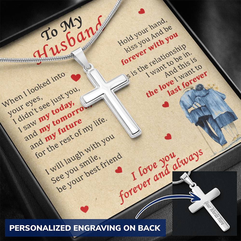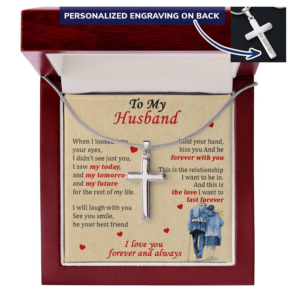 Personalized Forever with You Stainless Steel Cross Necklace Engraved Perfect Anniversary Gift for Husband