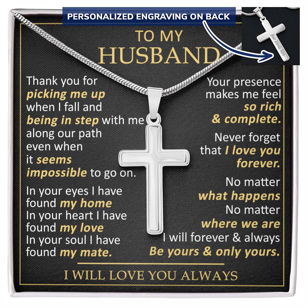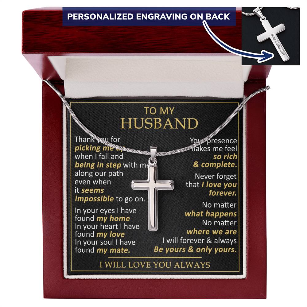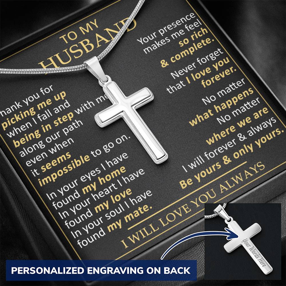Show your beloved husband how much he means to you with this Personalized Cross Necklace for Husband. This custom engraved cross necklace makes the perfect anniversary gift or romantic present for the faithful man in your life.