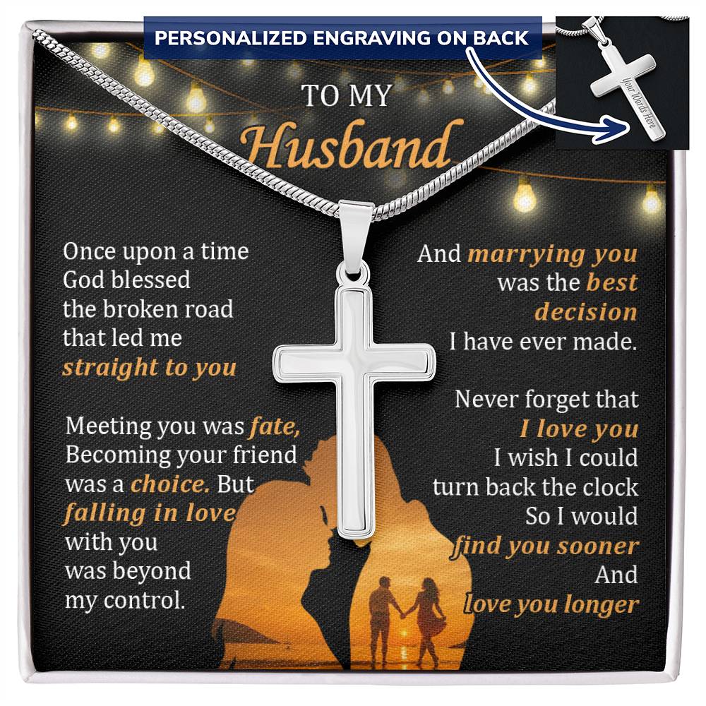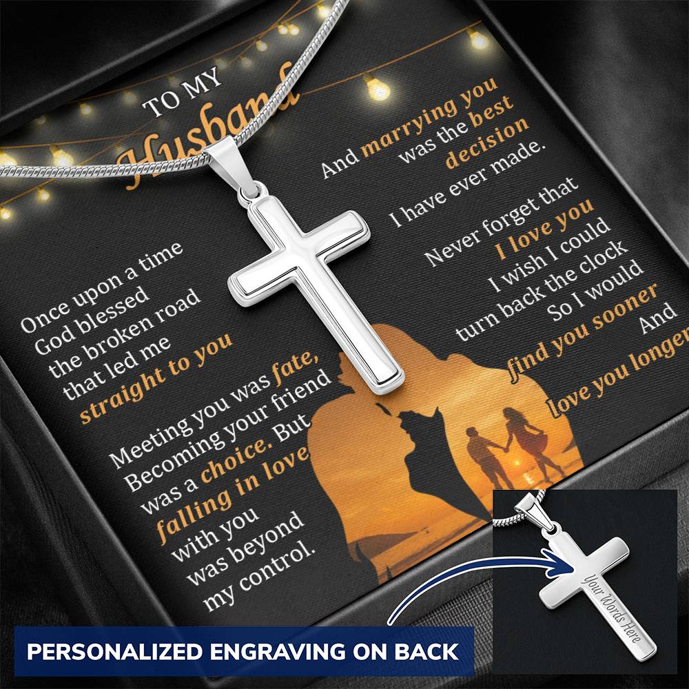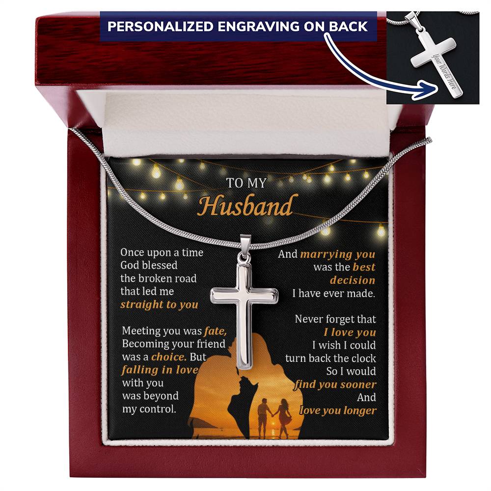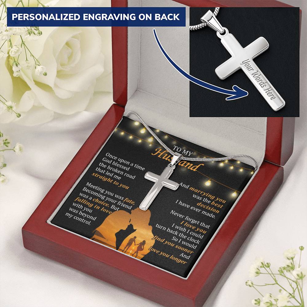 Personalized Marrying You Was the Best Decision I Have Ever Made Stainless Steel Cross Necklace Engraved Perfect Anniversary Gift for Husband