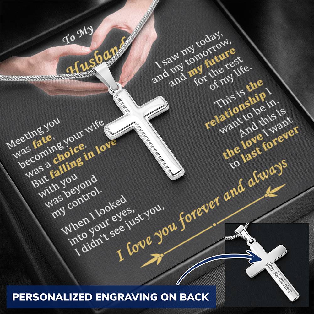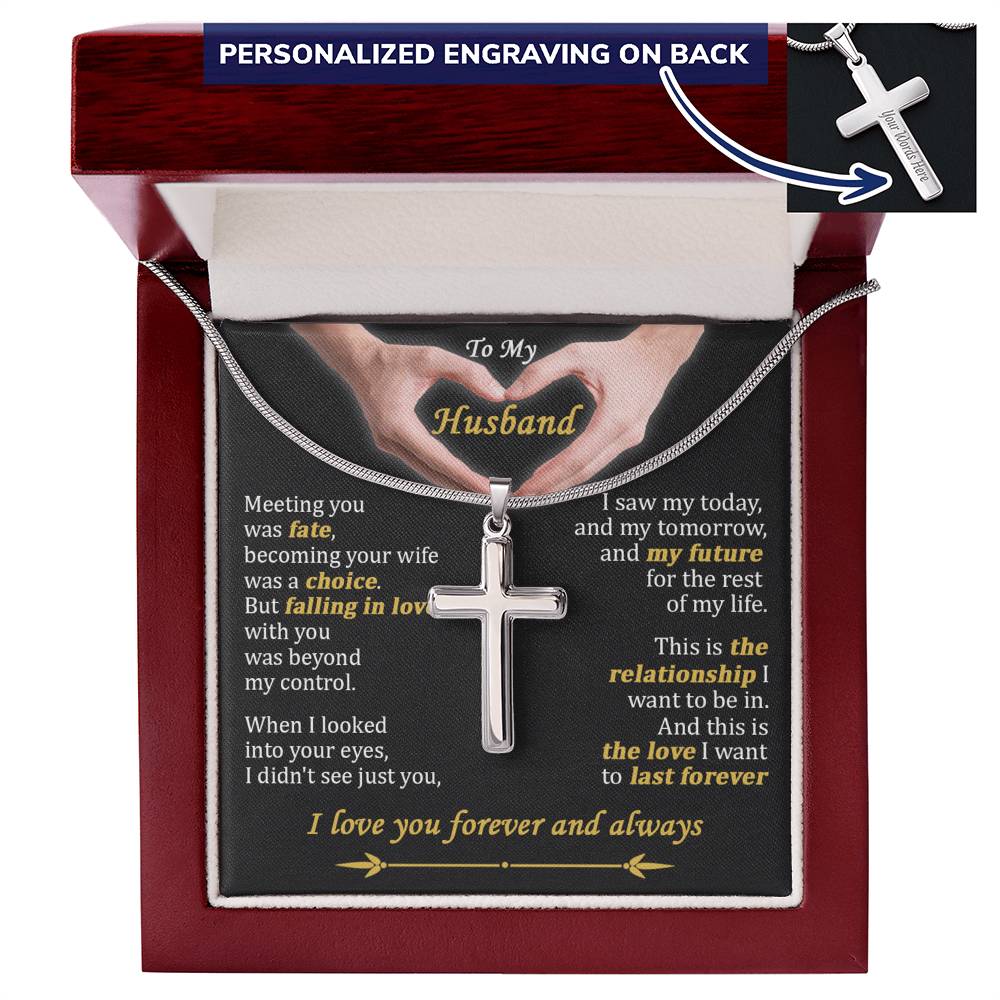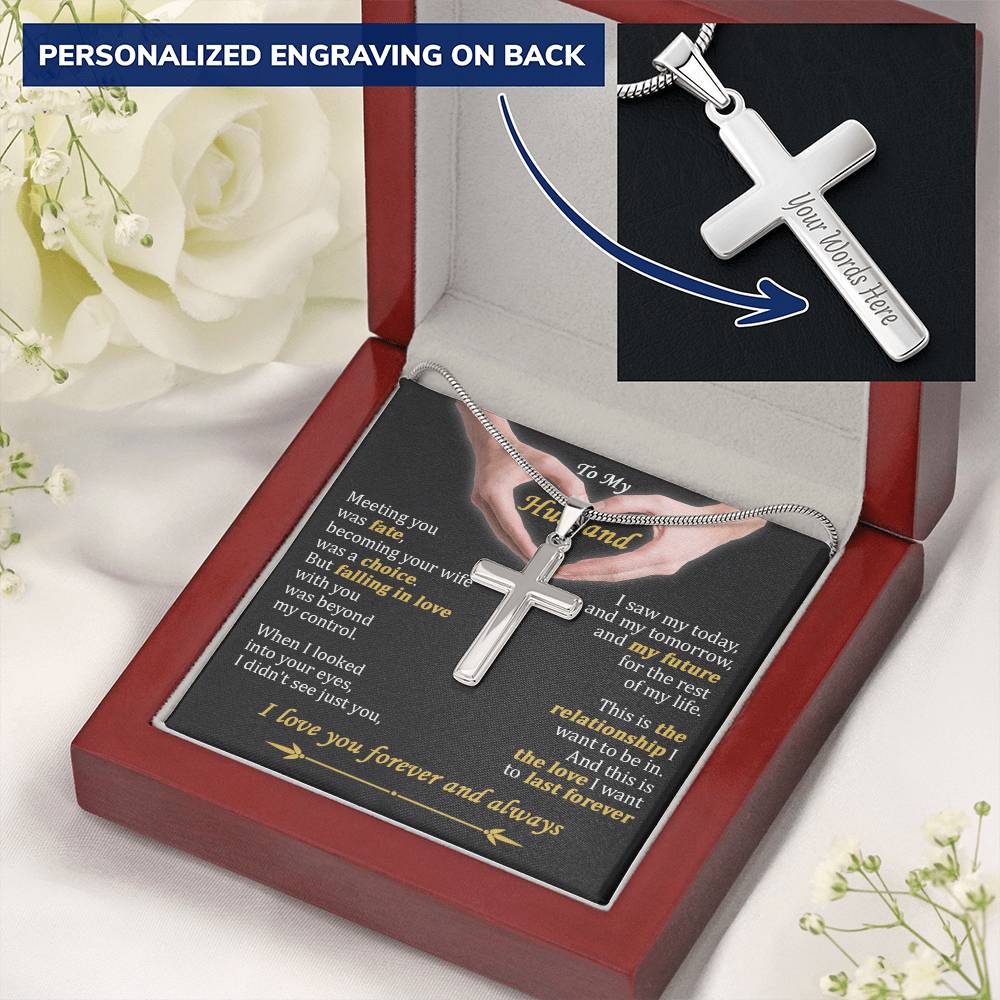 Personalized Meeting You Was Fate Stainless Steel Cross Necklace Engraved Perfect Anniversary Gift for Husband