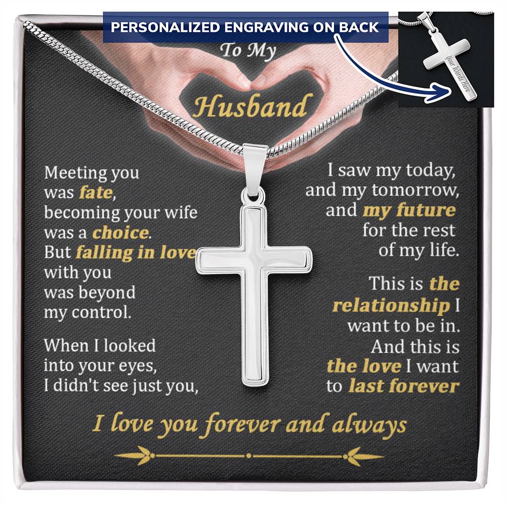 Show your beloved husband how much he means to you with this Personalized Cross Necklace for Husband. This custom engraved cross necklace makes the perfect anniversary gift or romantic present for the faithful man in your life.