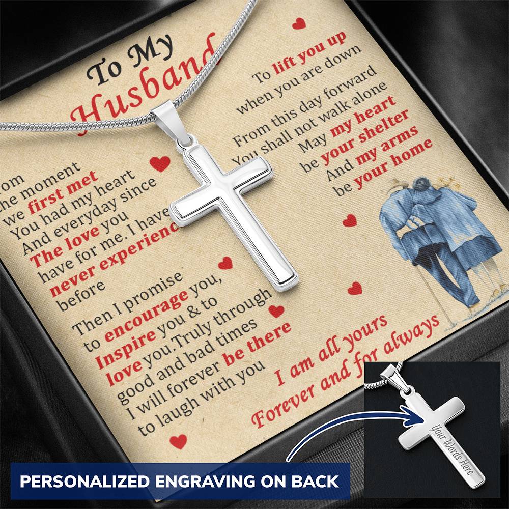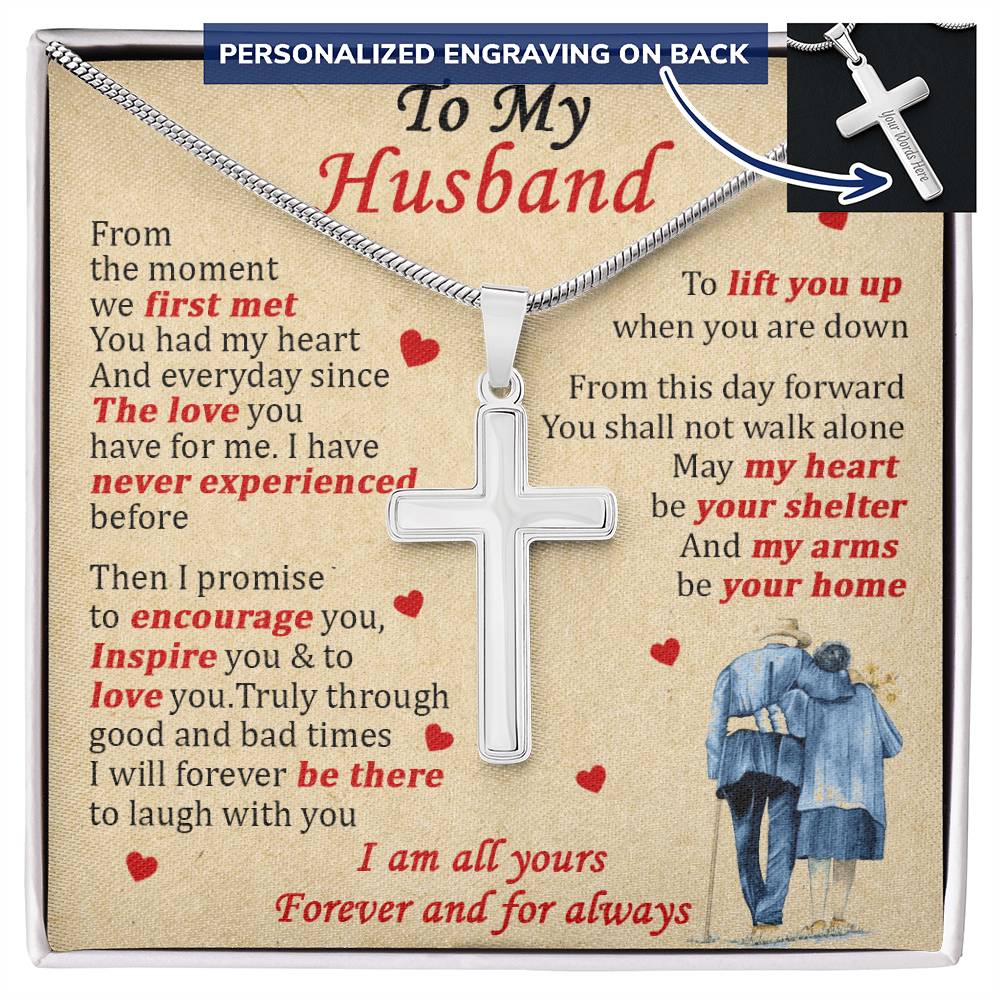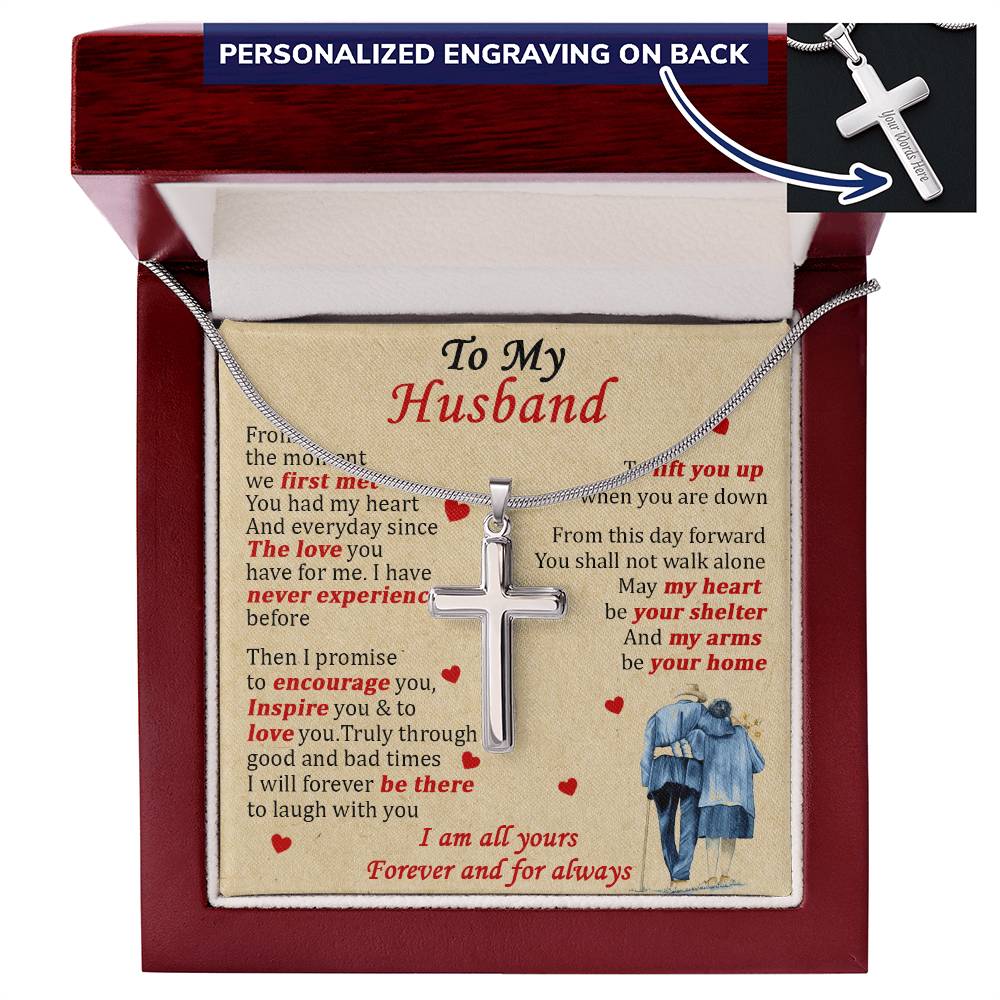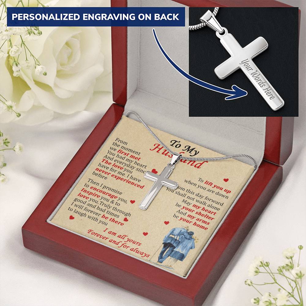 Show your beloved husband how much he means to you with this Personalized Cross Necklace for Husband. This custom engraved cross necklace makes the perfect anniversary gift or romantic present for the faithful man in your life.
