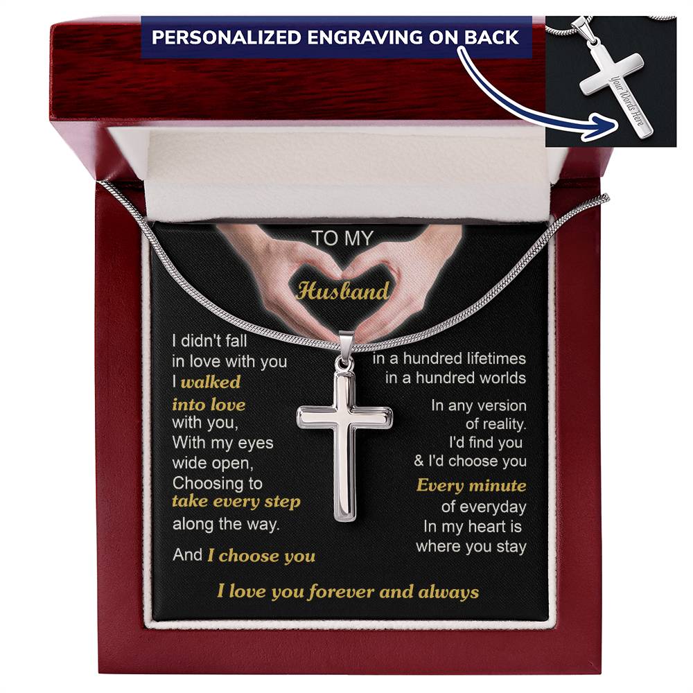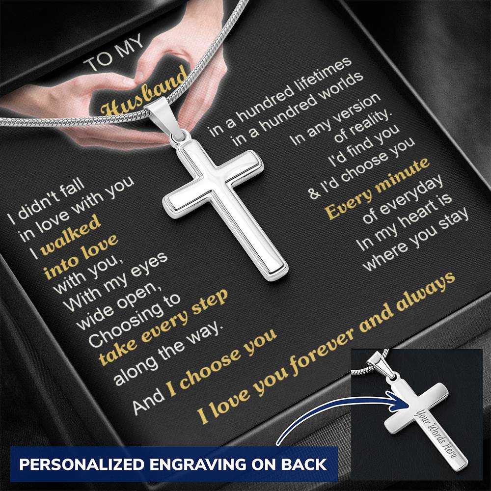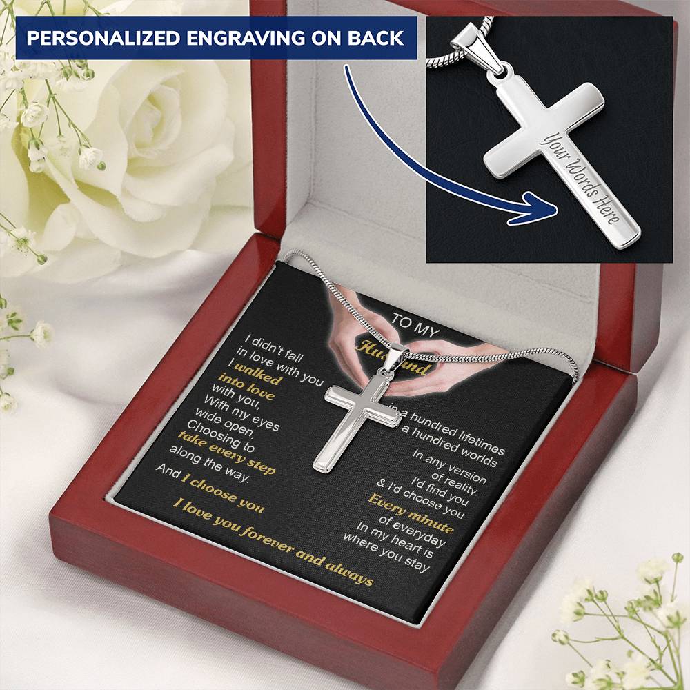 Show your beloved husband how much he means to you with this Personalized Cross Necklace for Husband. This custom engraved cross necklace makes the perfect anniversary gift or romantic present for the faithful man in your life.